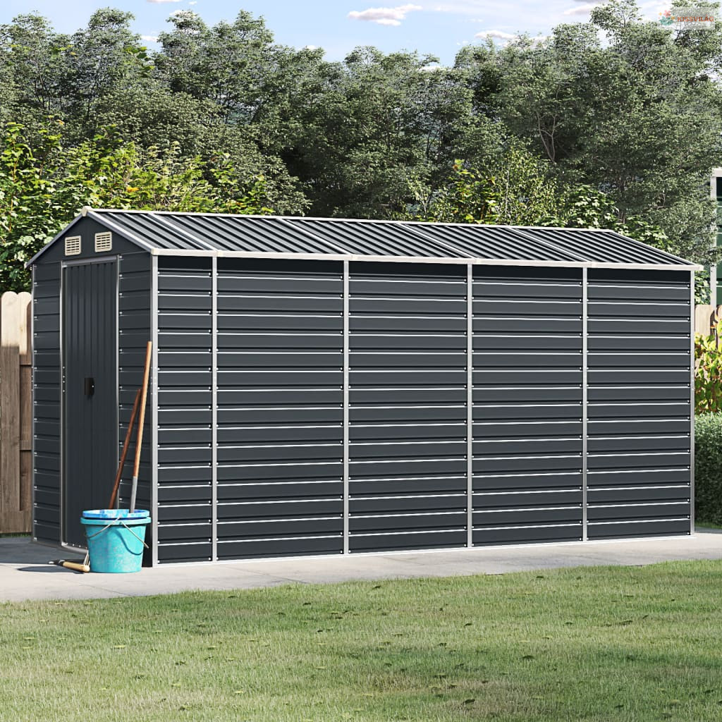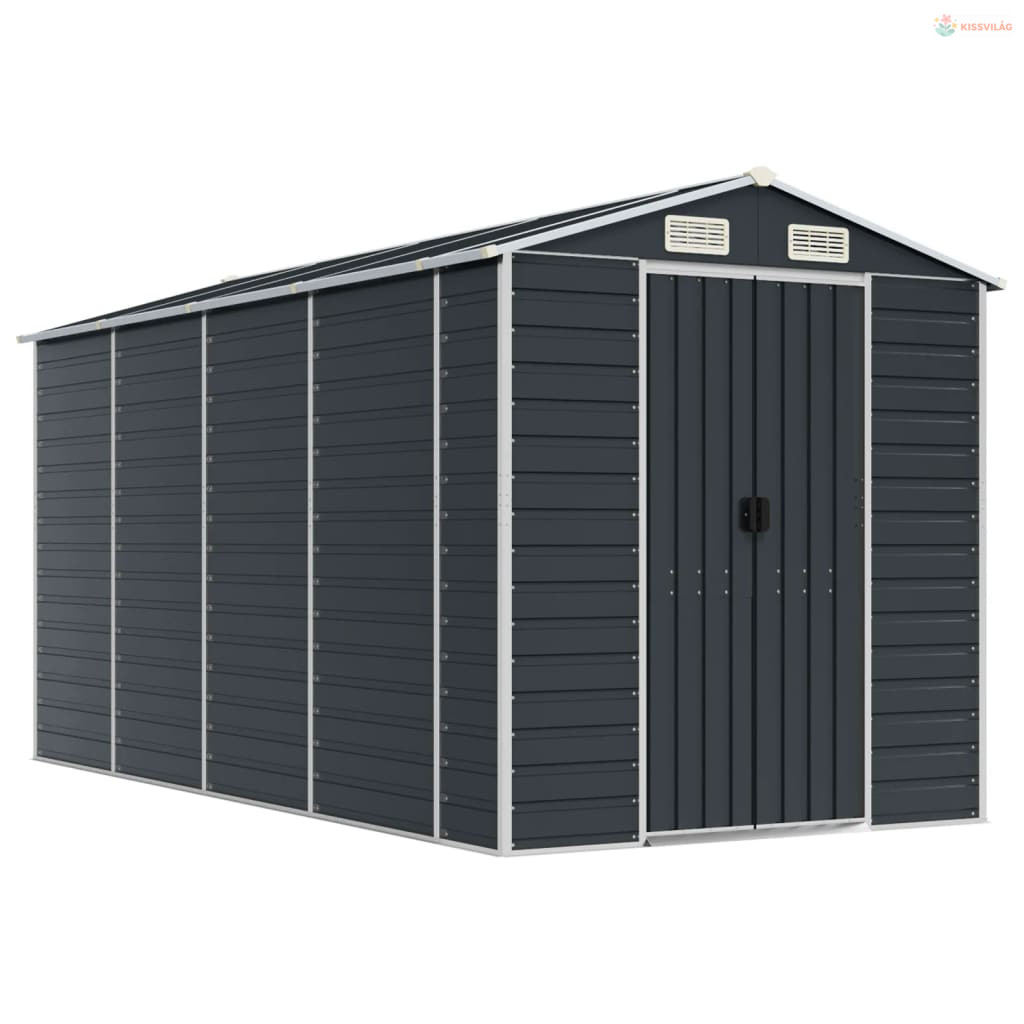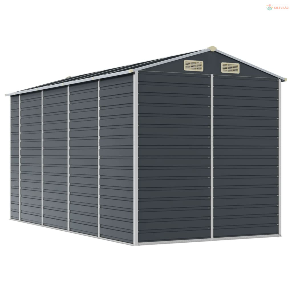 Antracitszürke horganyzott acél kerti fészer 191 x 385 x 198 cm