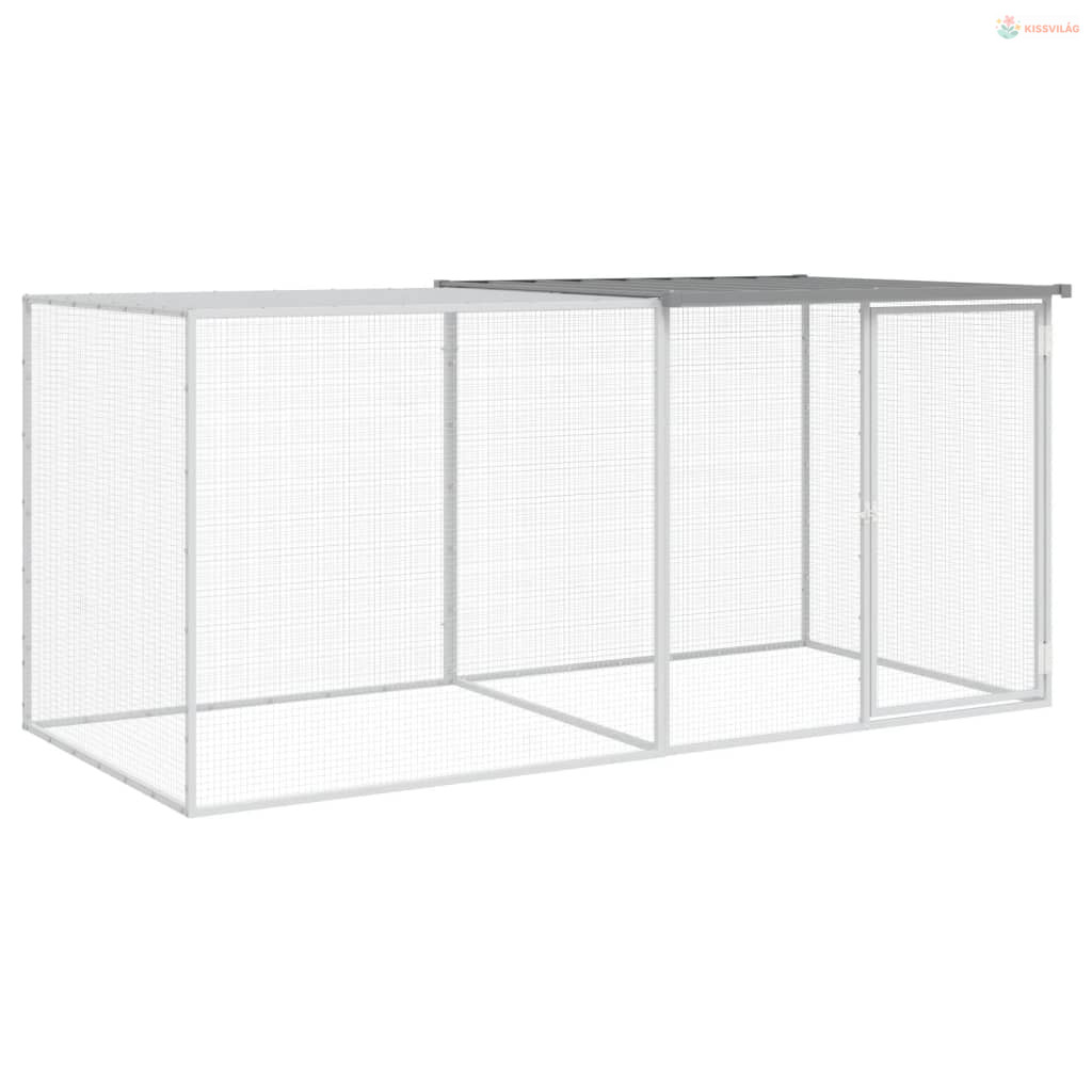 Világosszürke horganyzott acél tyúkketrec tetővel 203x98x90 cm