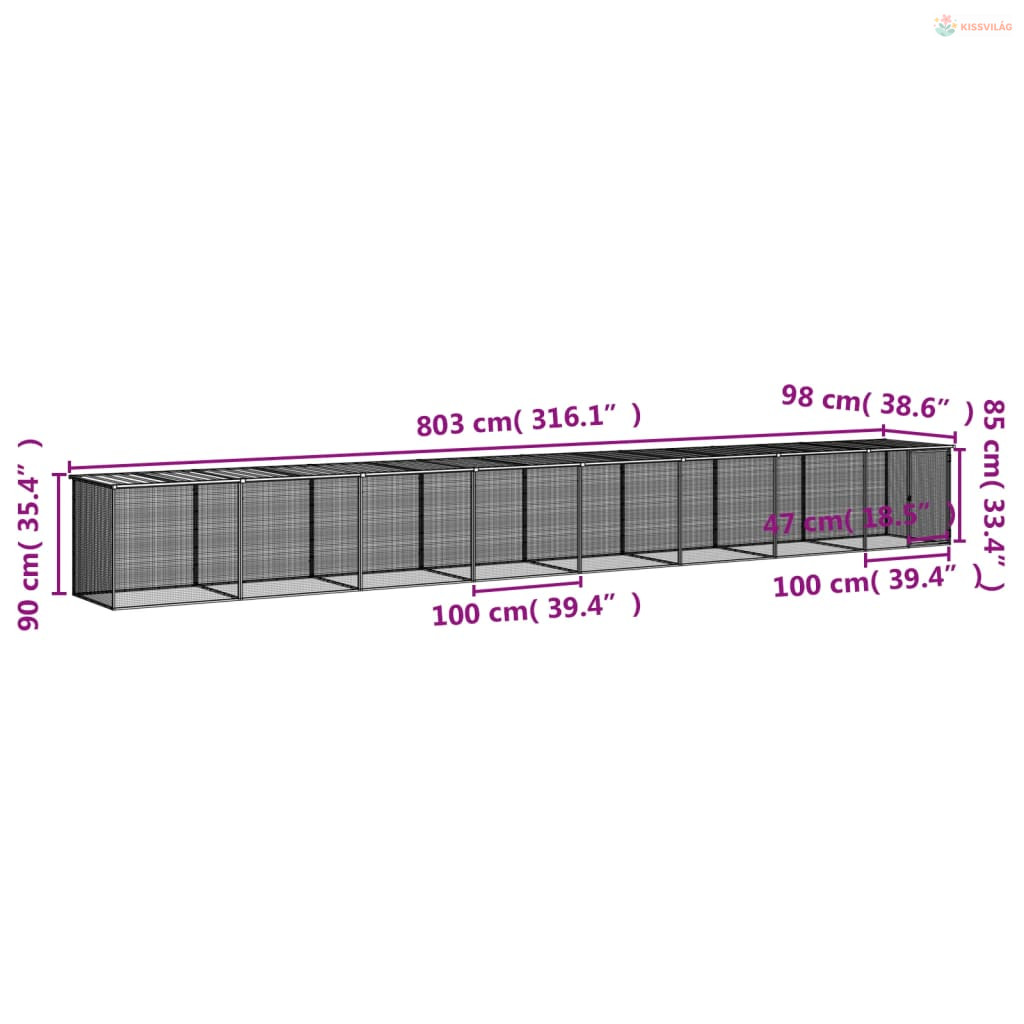 Antracitszürke horganyzott acél tyúkketrec tetővel 803x98x90 cm