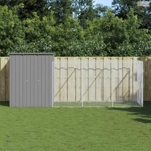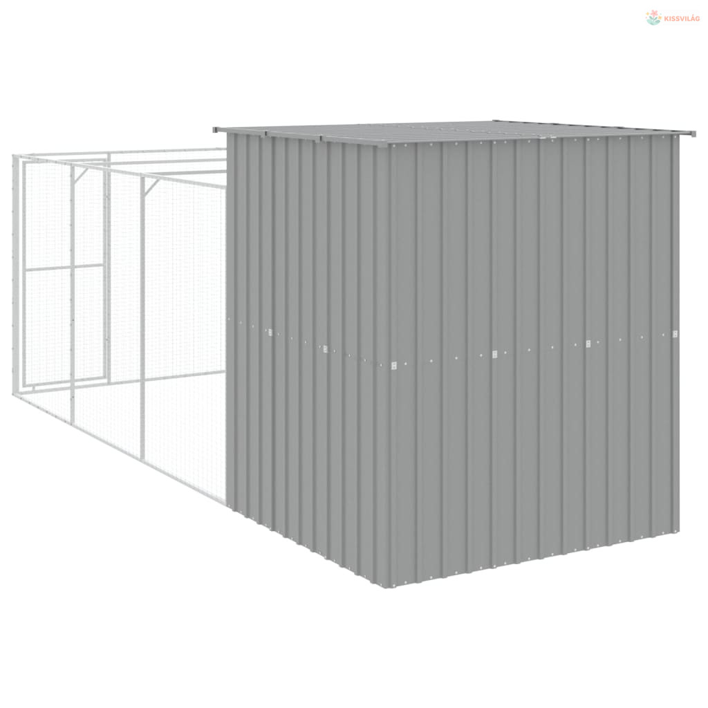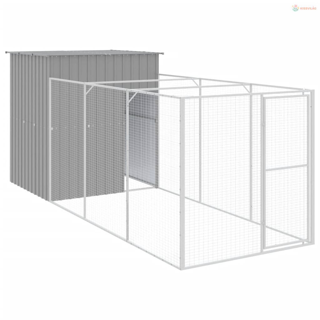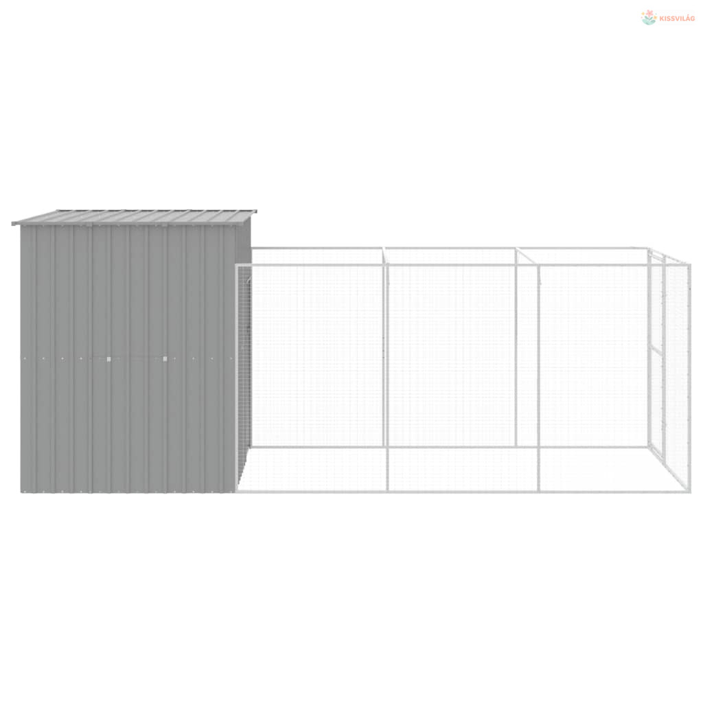 Világosszürke horganyzott acél kifutós kutyaház 165x455x181 cm