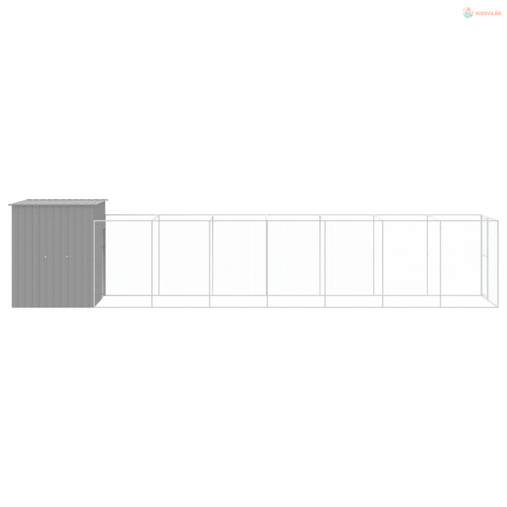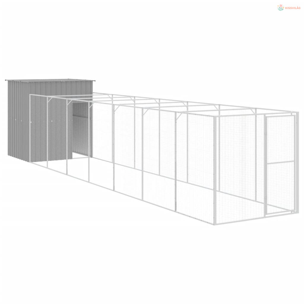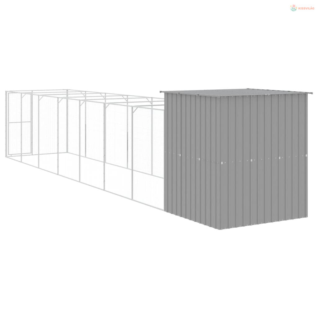 Világosszürke horganyzott acél kifutós kutyaház 165x863x181 cm