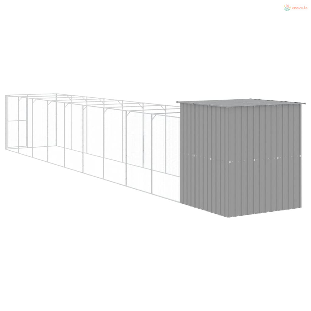 Világosszürke horganyzott acél kifutós kutyaház 165x1067x181 cm