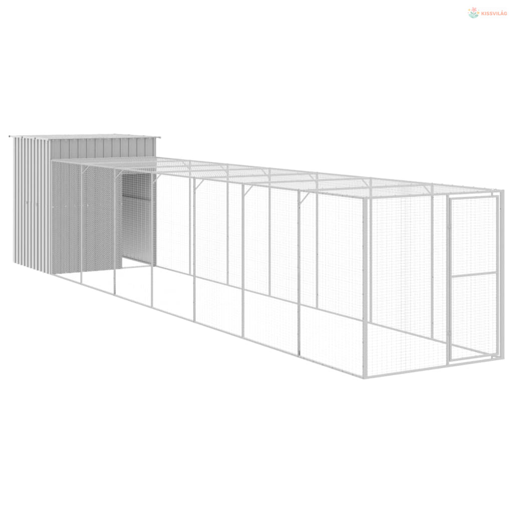 Világosszürke horganyzott acél kifutós tyúkketrec 165x863x181cm