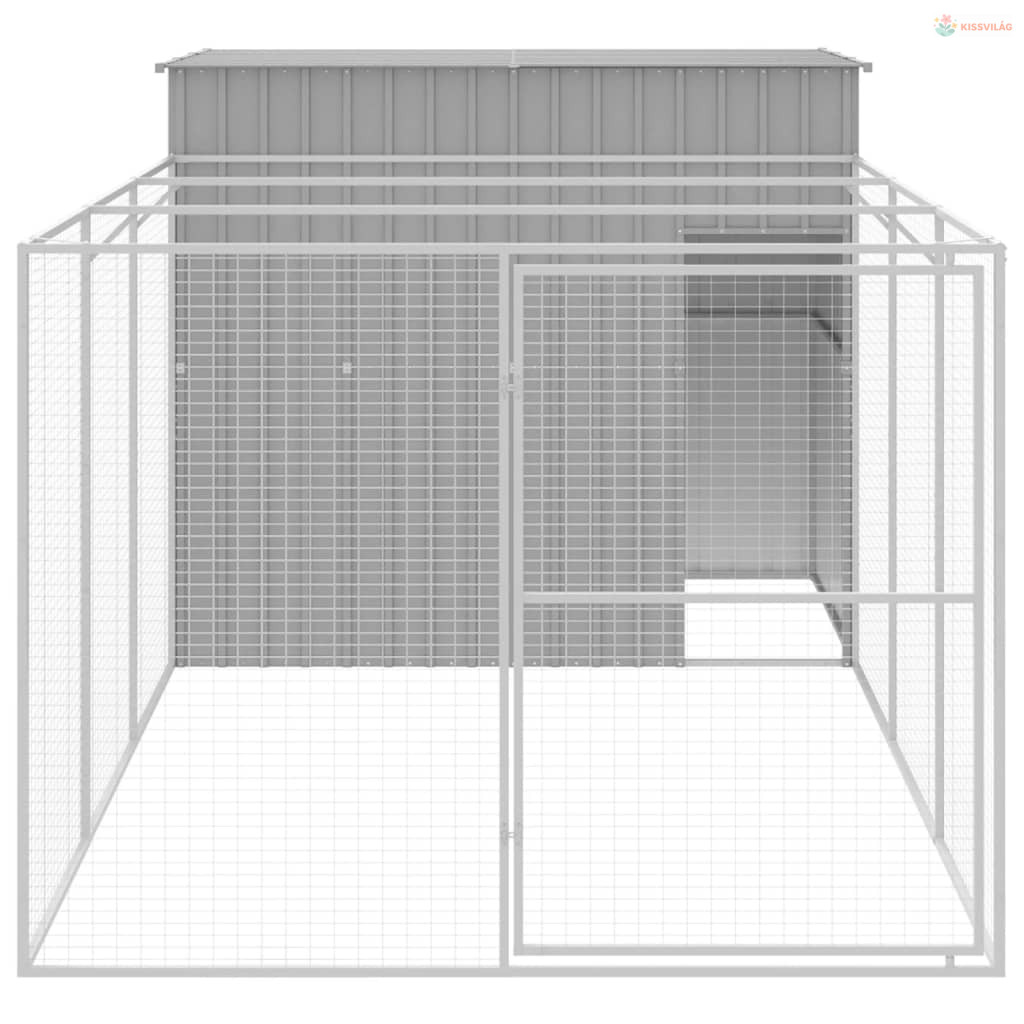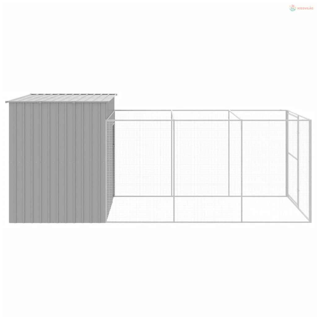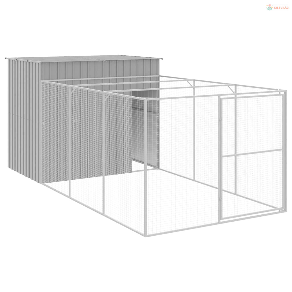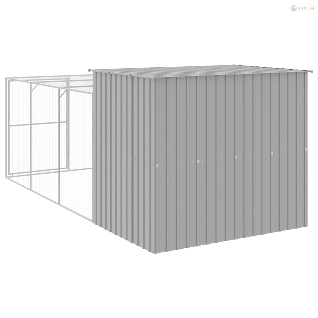 Világosszürke horganyzott acél kifutós kutyaház 214x457x181 cm