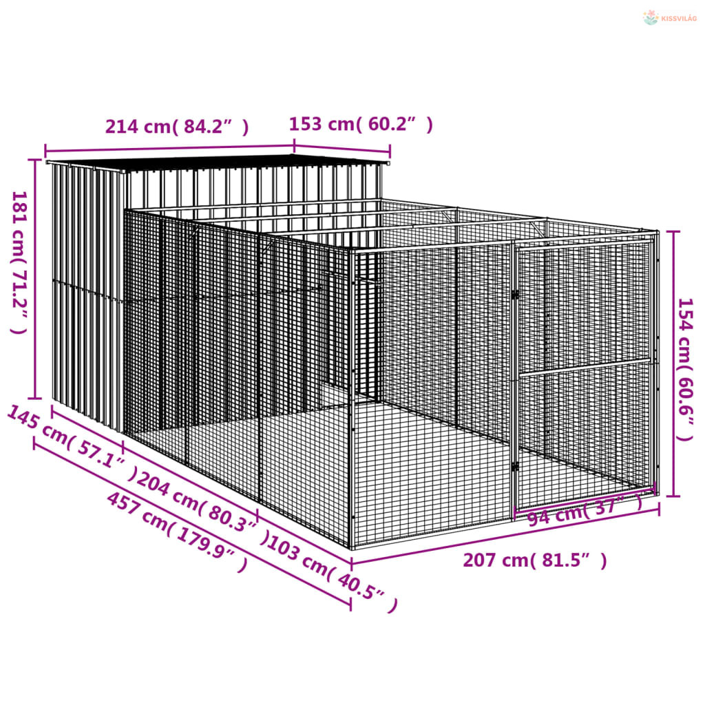 • Tartós konstrukció: A masszív és strapabíró horganyzott acél szerkezetnek köszönhetően a kutyakennel tartós és hosszú élettartamú.