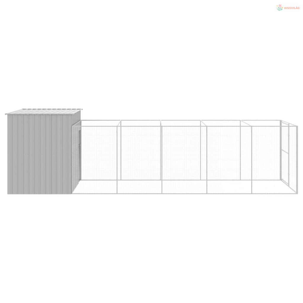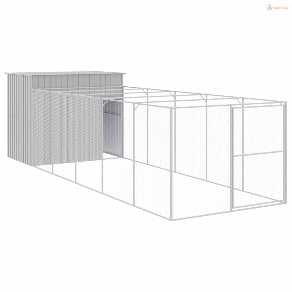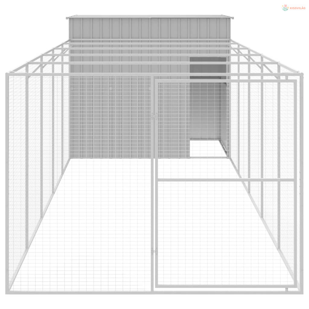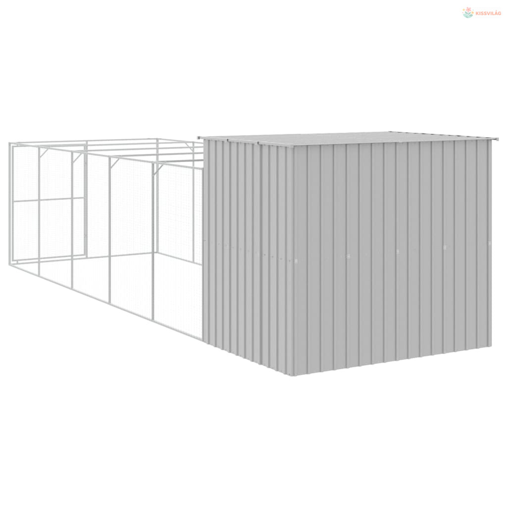 Világosszürke horganyzott acél tetős kutyakennel 214x661x181 cm