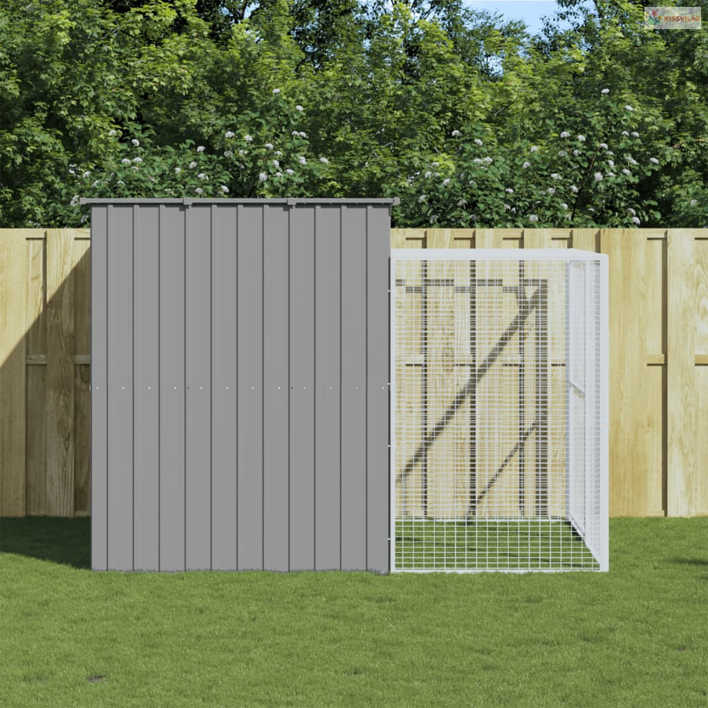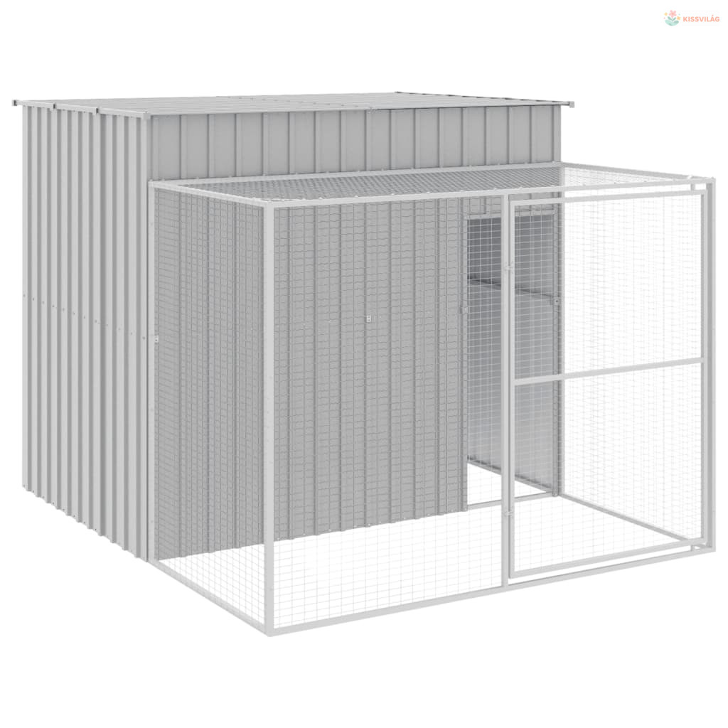 Világosszürke horganyzott acél tetős kutyakennel 214x253x181 cm
