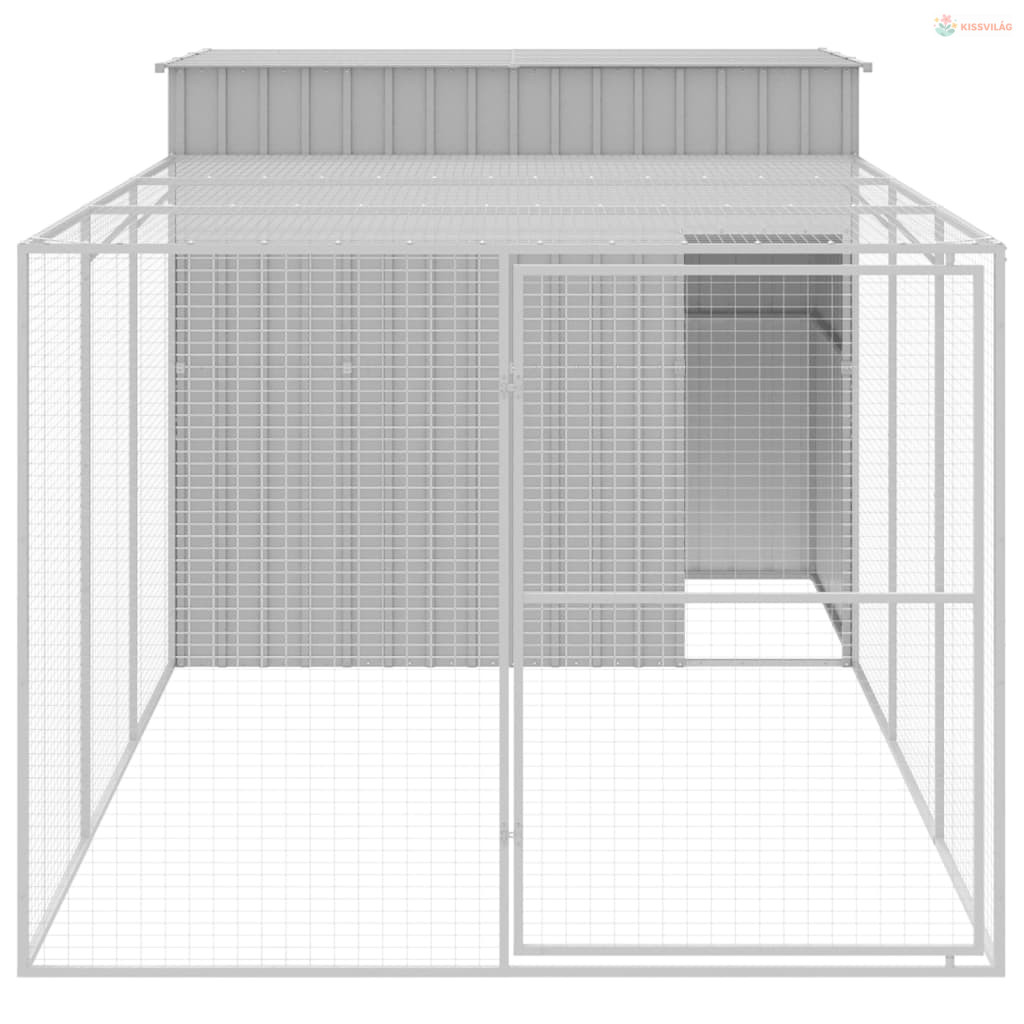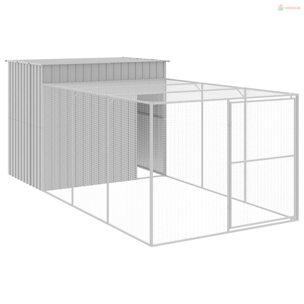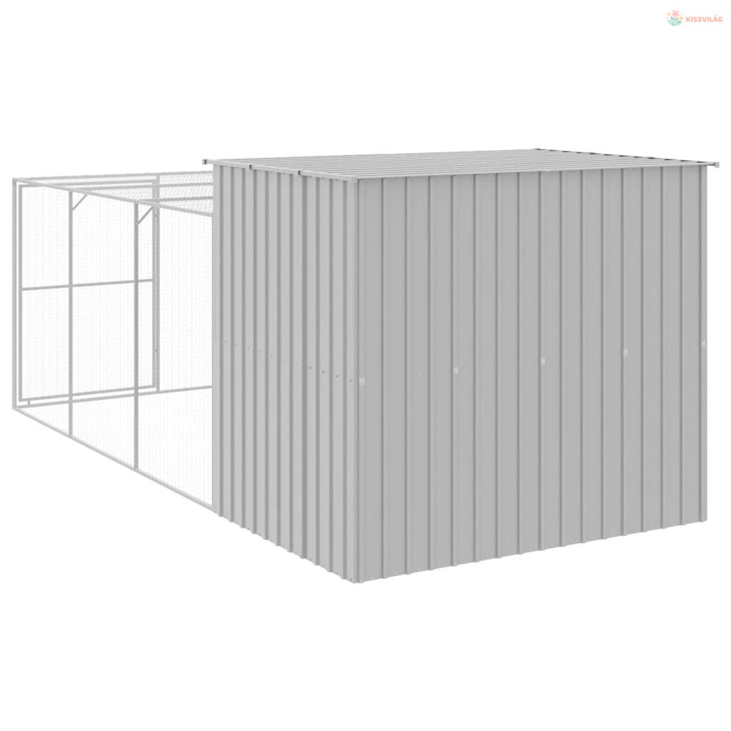 Világosszürke horganyzott acél kifutós kutyaház 214x457x181 cm
