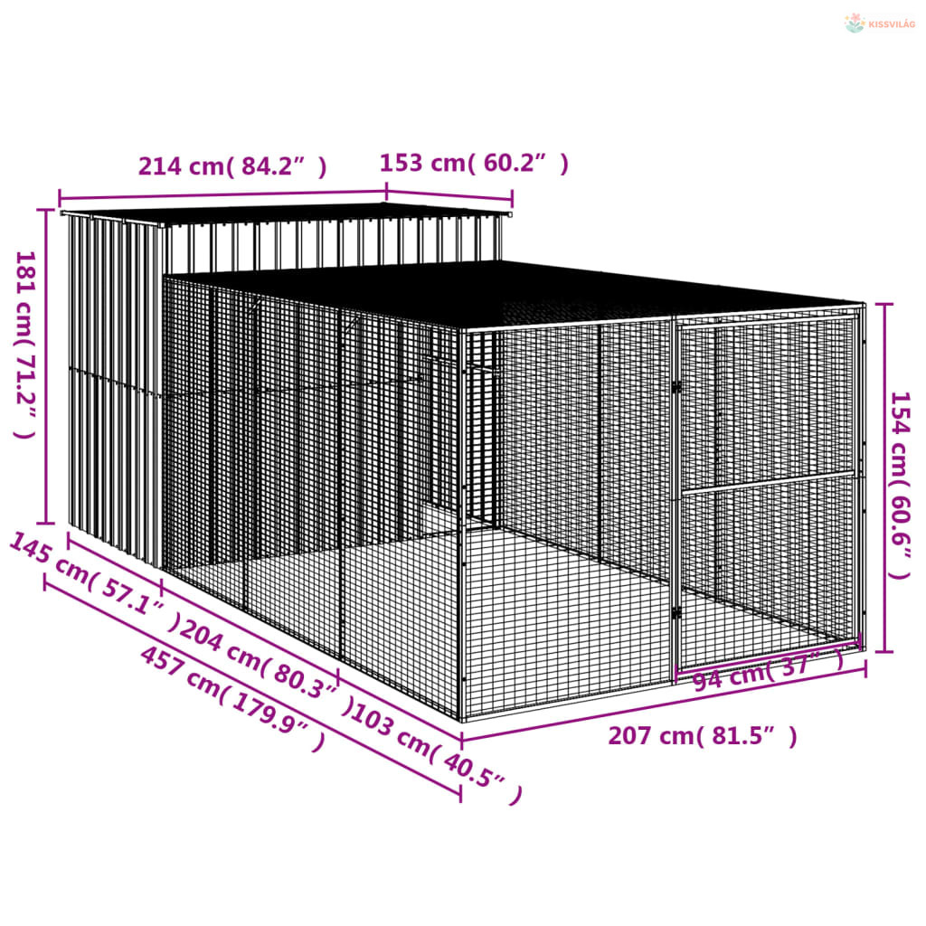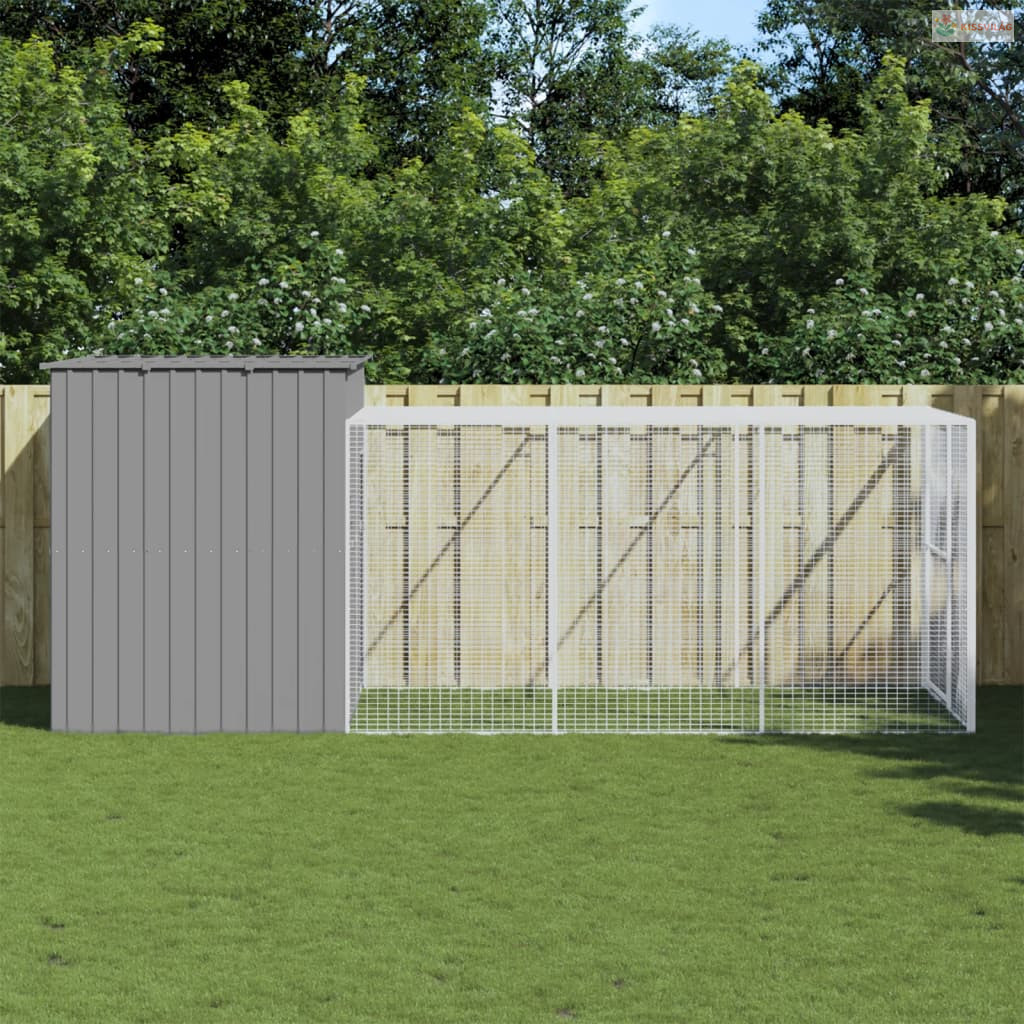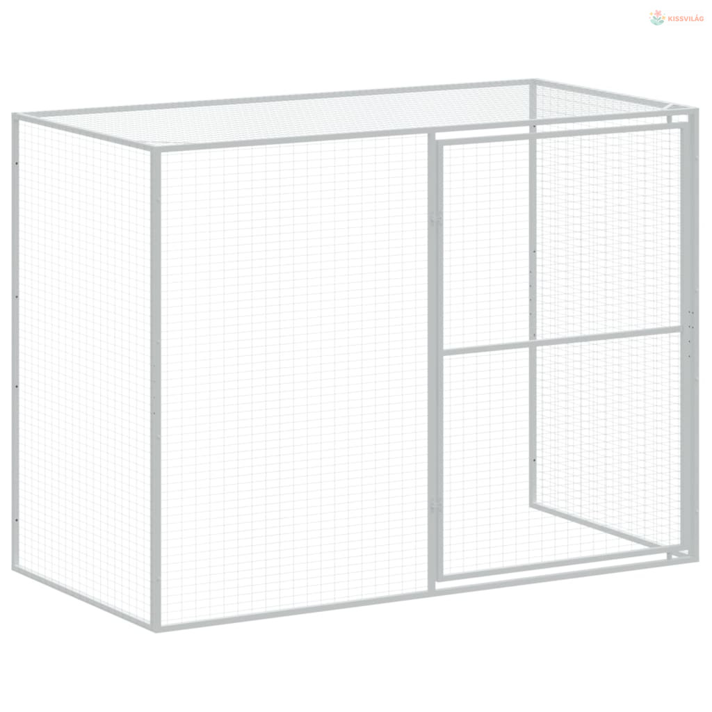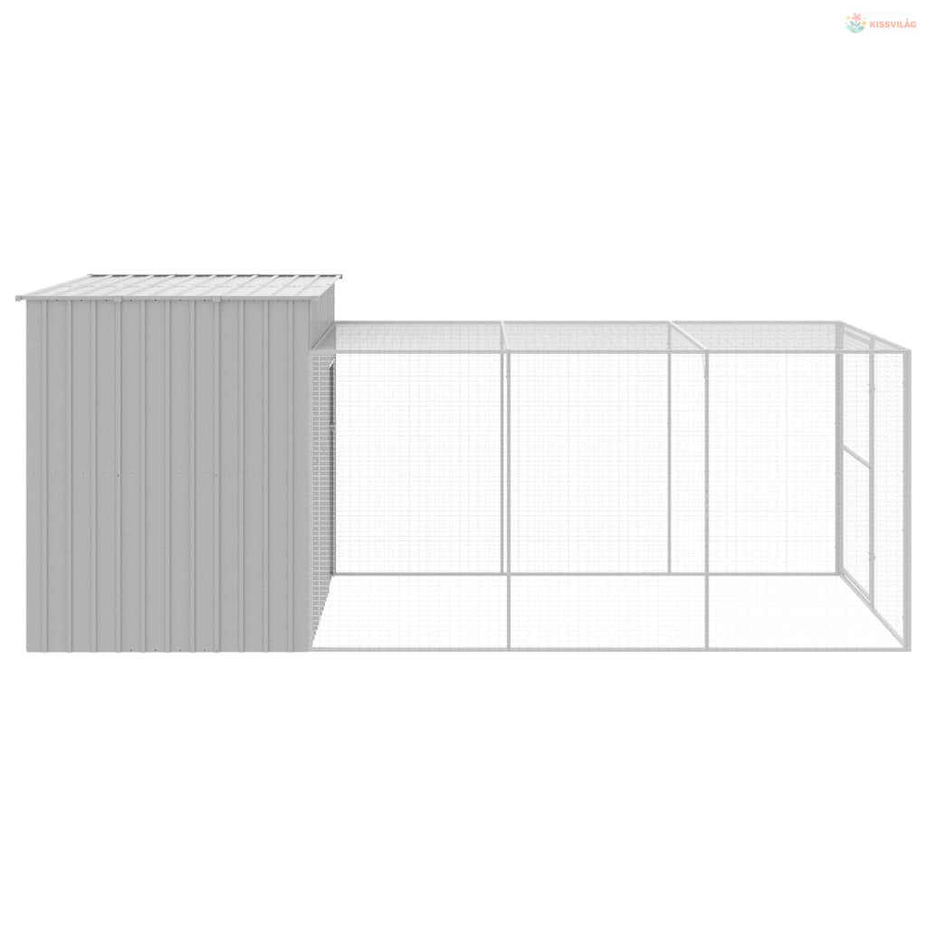 Világosszürke horganyzott acél kifutós kutyaház 214x457x181 cm