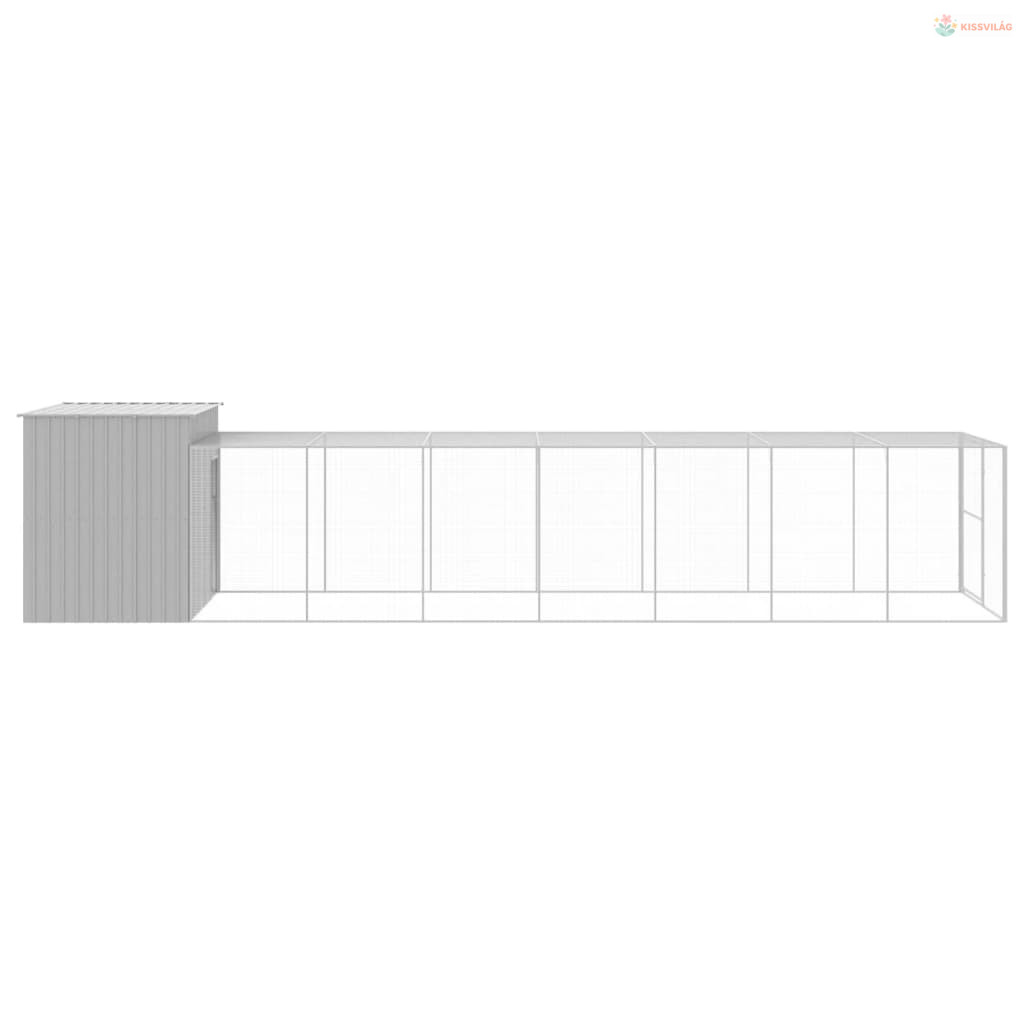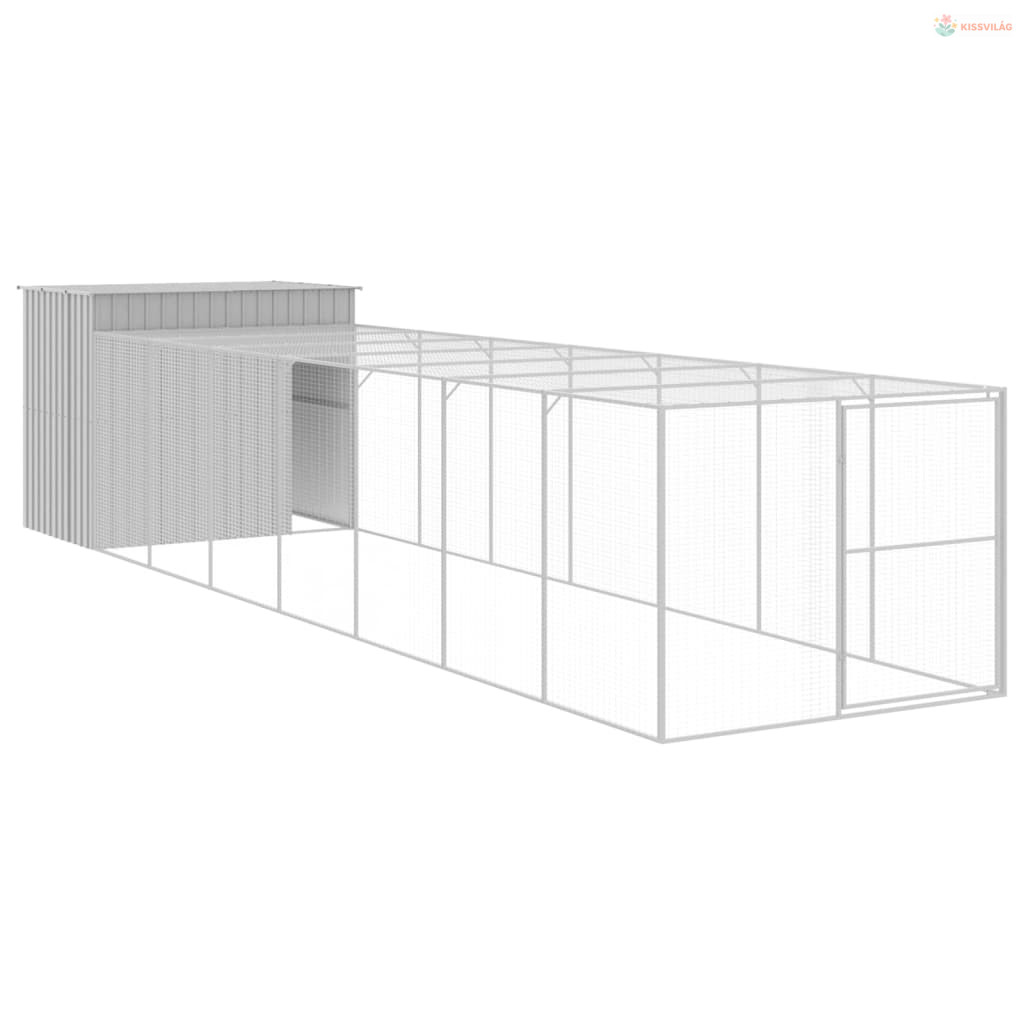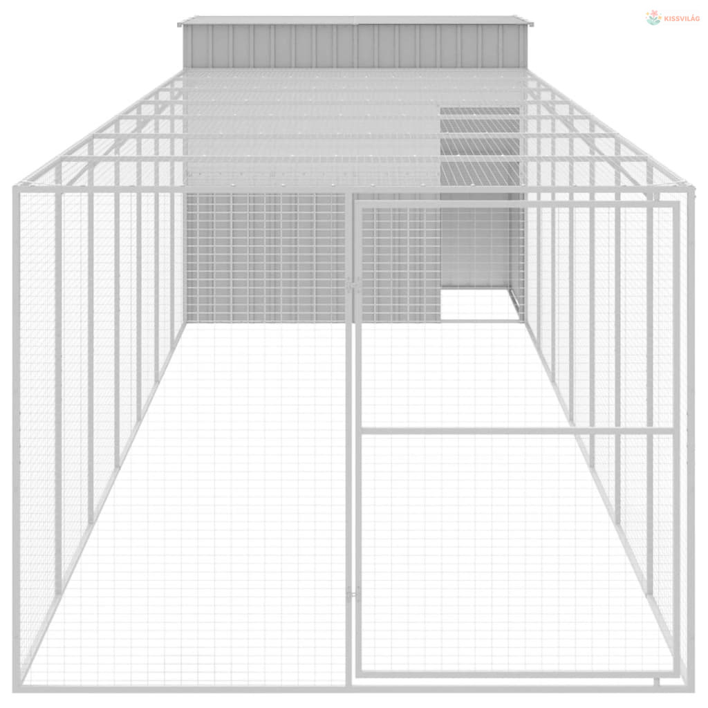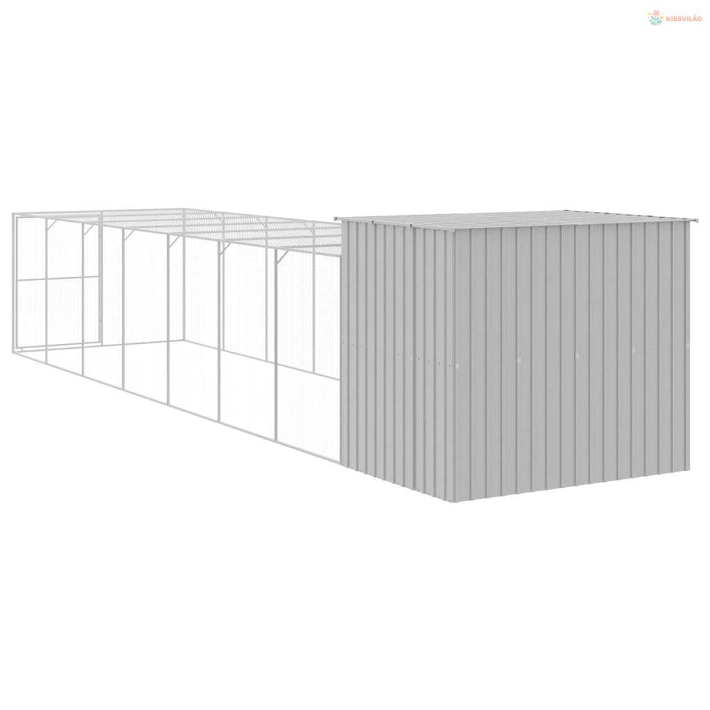 Világosszürke horganyzott acél kifutós kutyaház 214x865x181 cm
