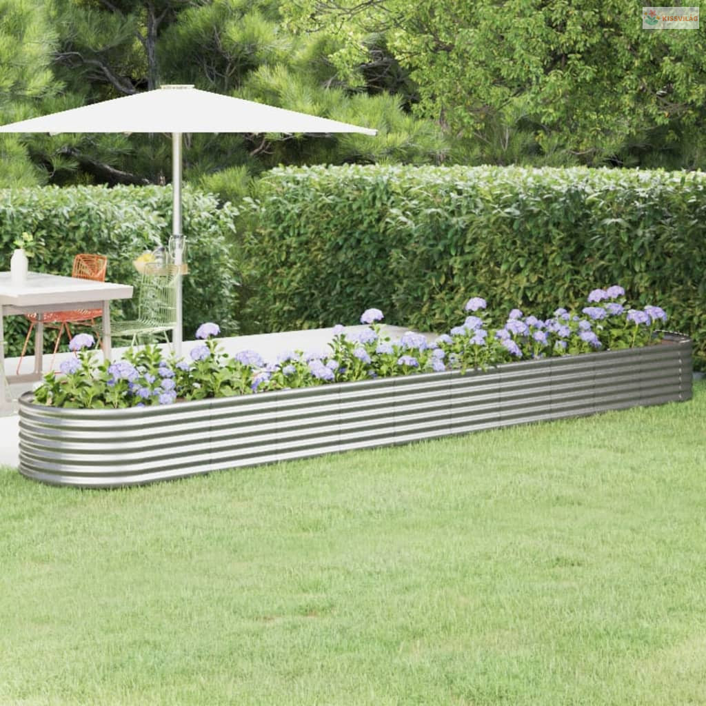 Ezüstszínű horganyzott acél kerti magaságyás 440x80x36 cm