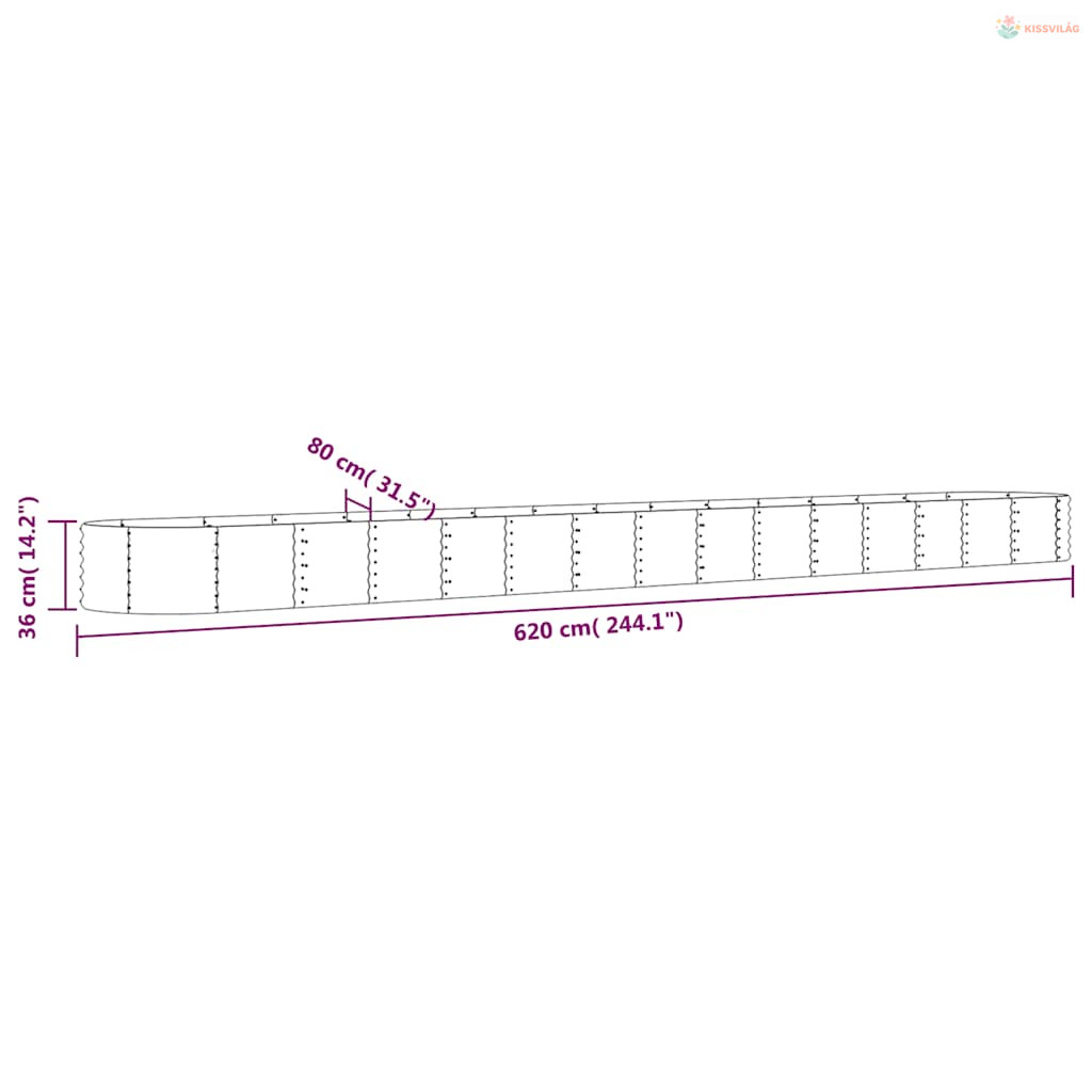 Antracitszürke horganyzott acél kerti magaságyás 620x80x36 cm
