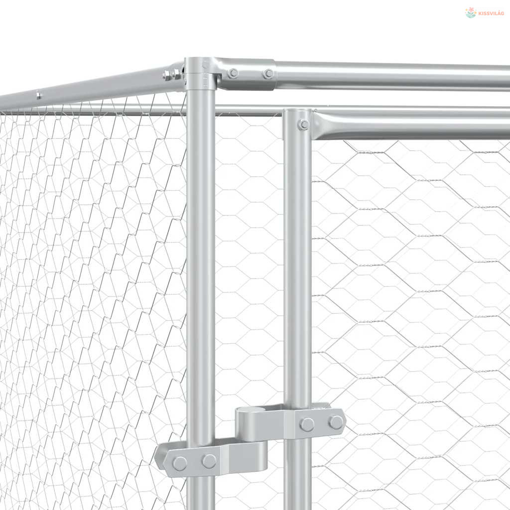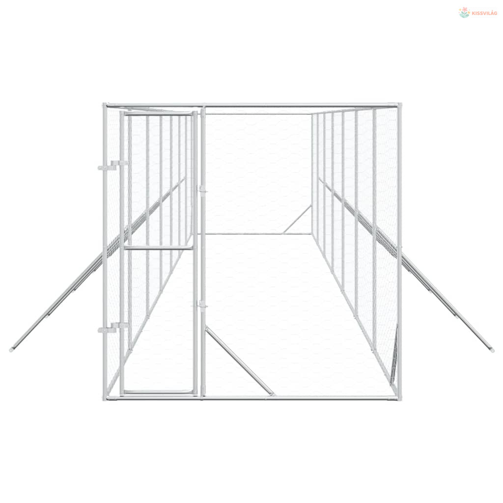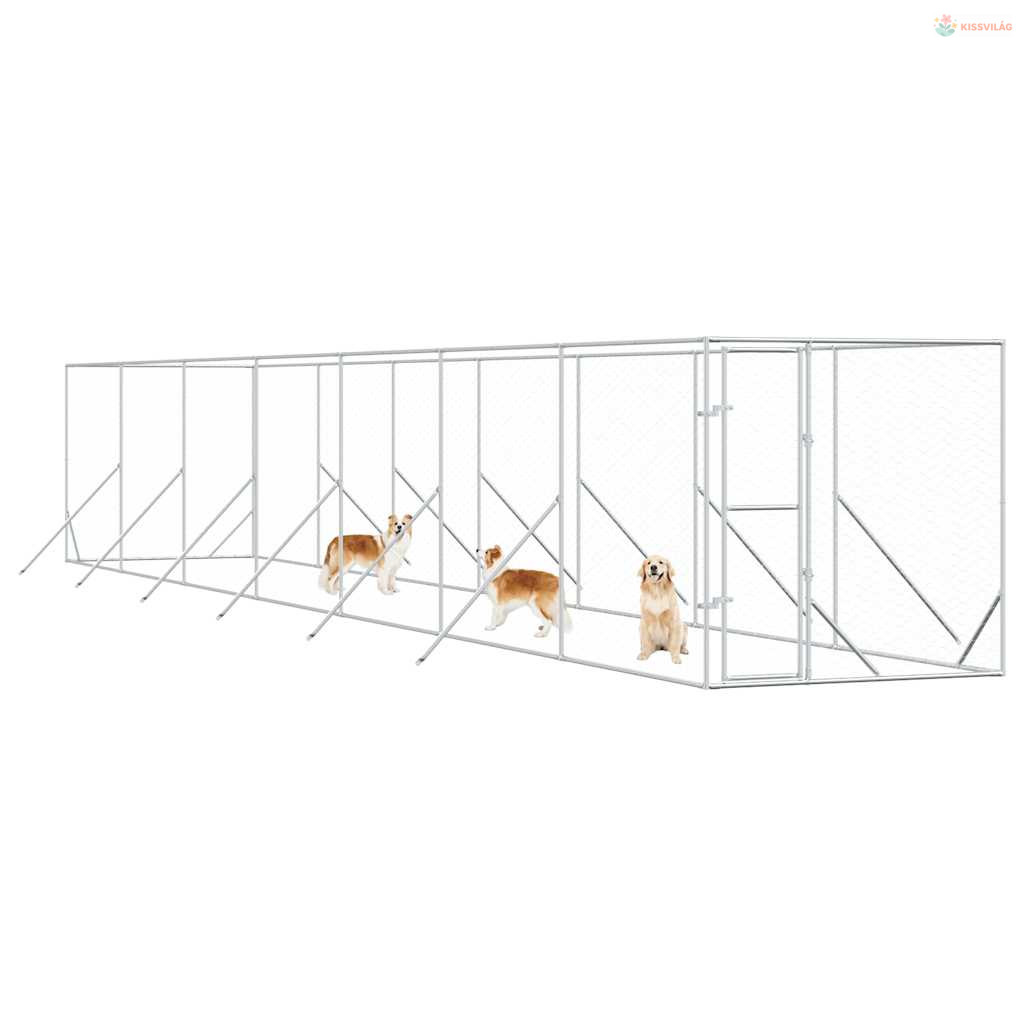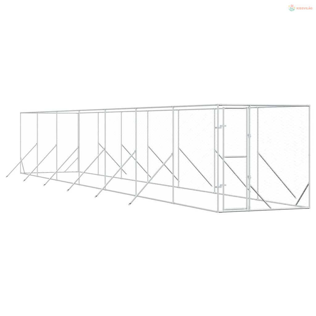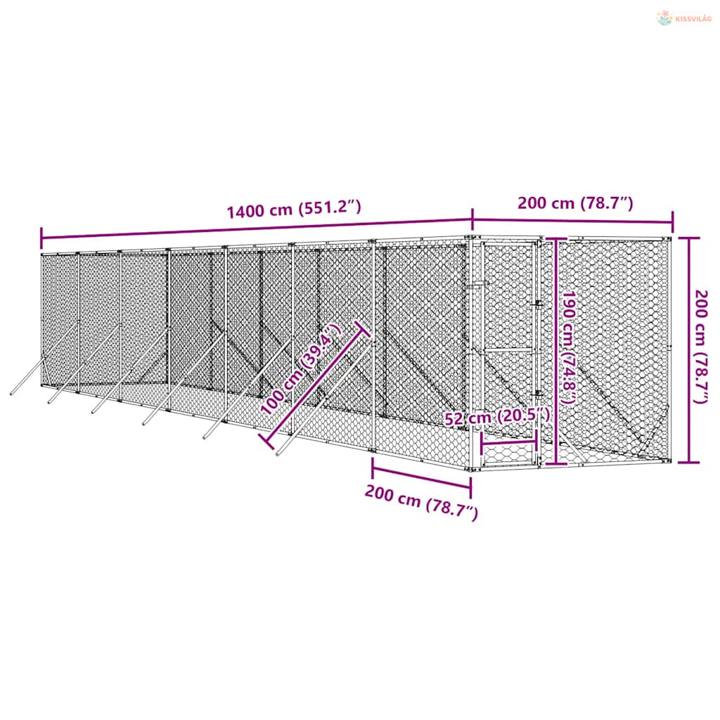 Ezüstszínű kültéri horganyzott acél kutyakennel 2 x 14 x 2 m