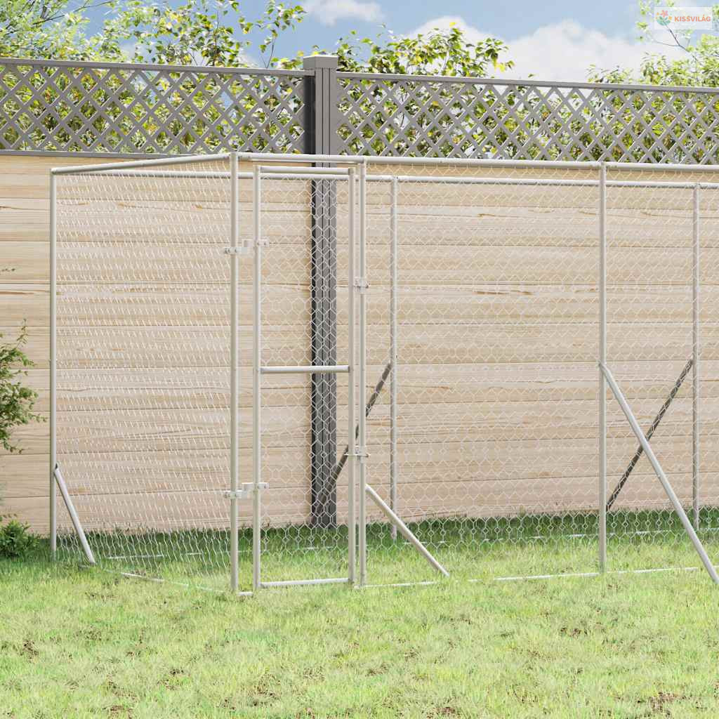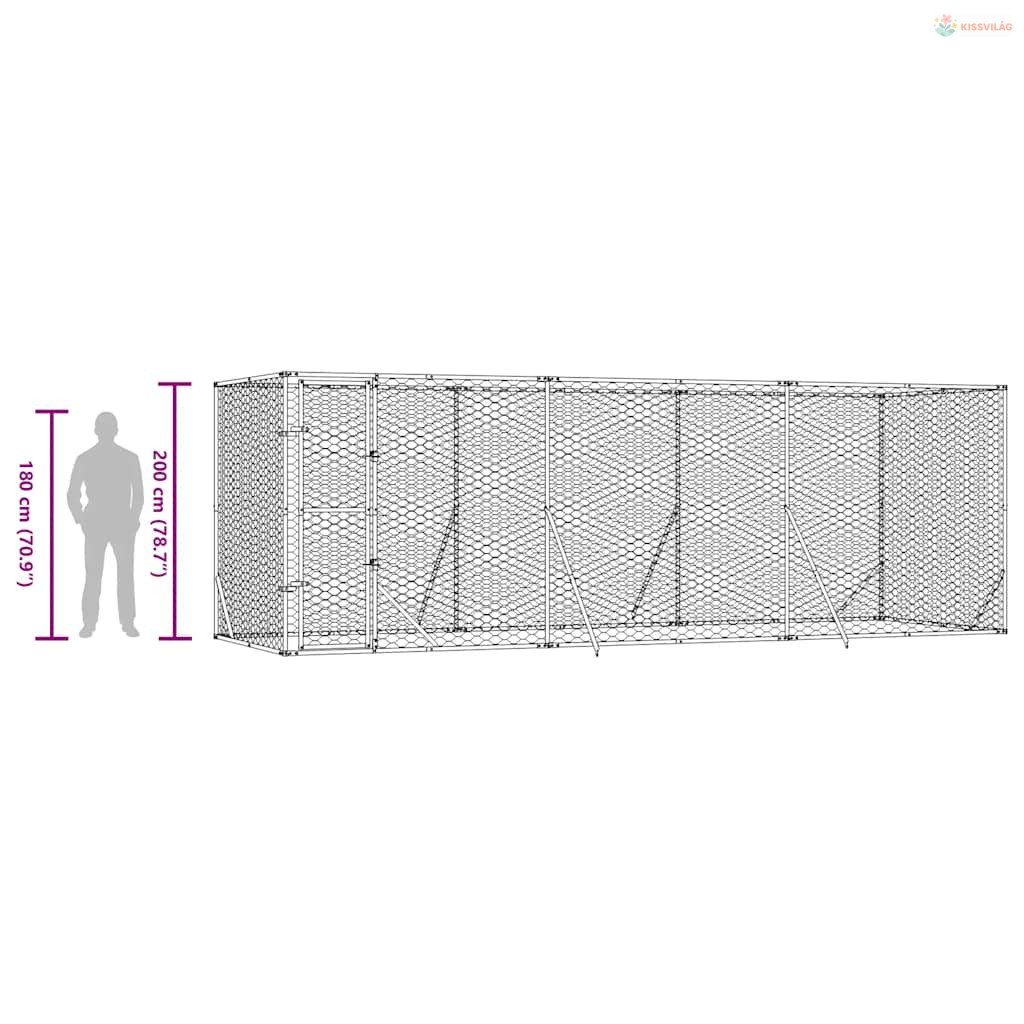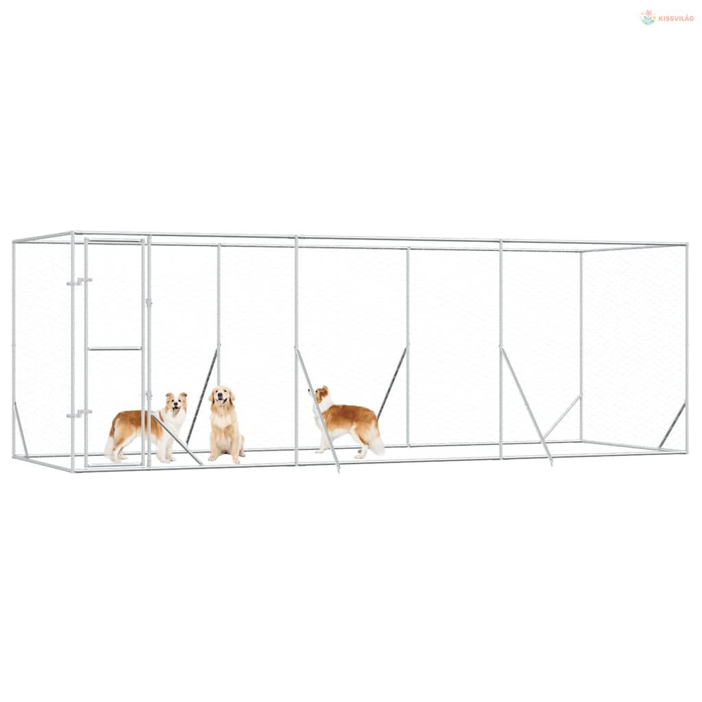 Ezüstszínű kültéri horganyzott acél kutyakennel 6x2x2 m