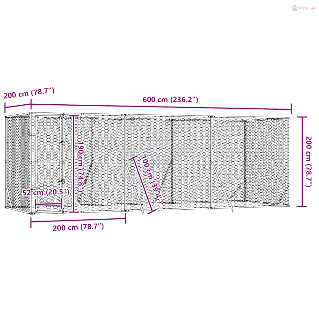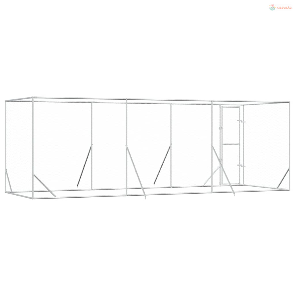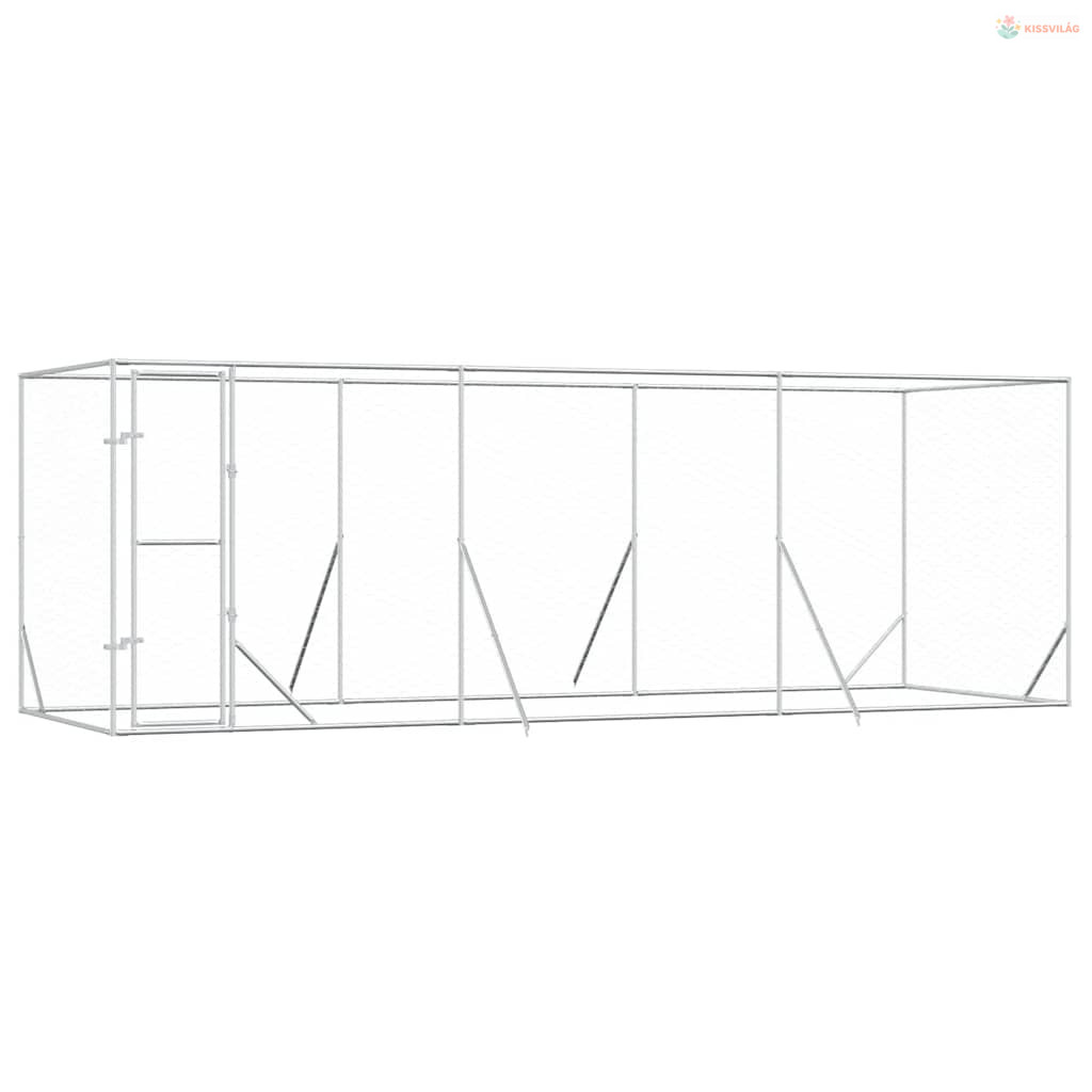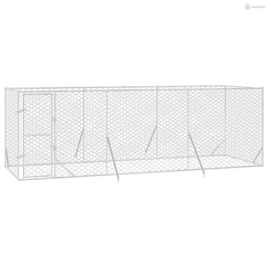 Ezüstszínű kültéri horganyzott acél kutyakennel 6x2x2 m