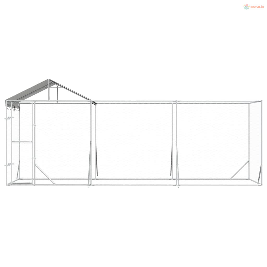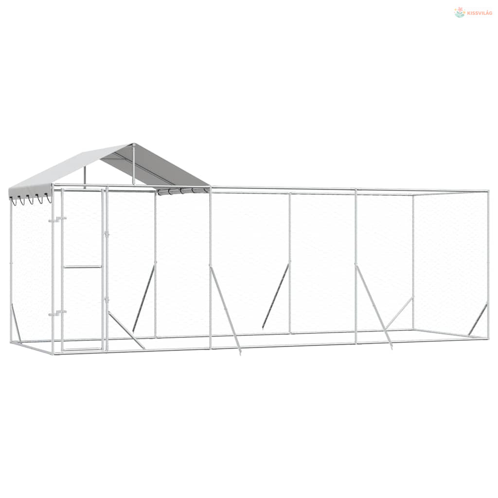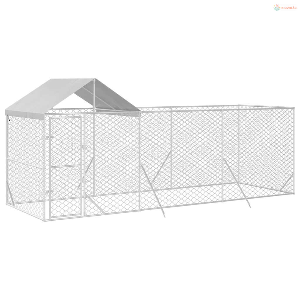 Ezüstszínű horganyzott acél kutyakennel tetővel 6x2x2,5 m