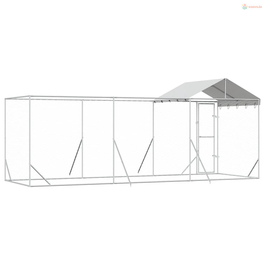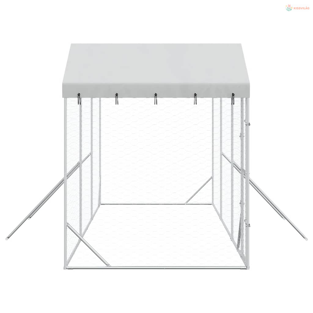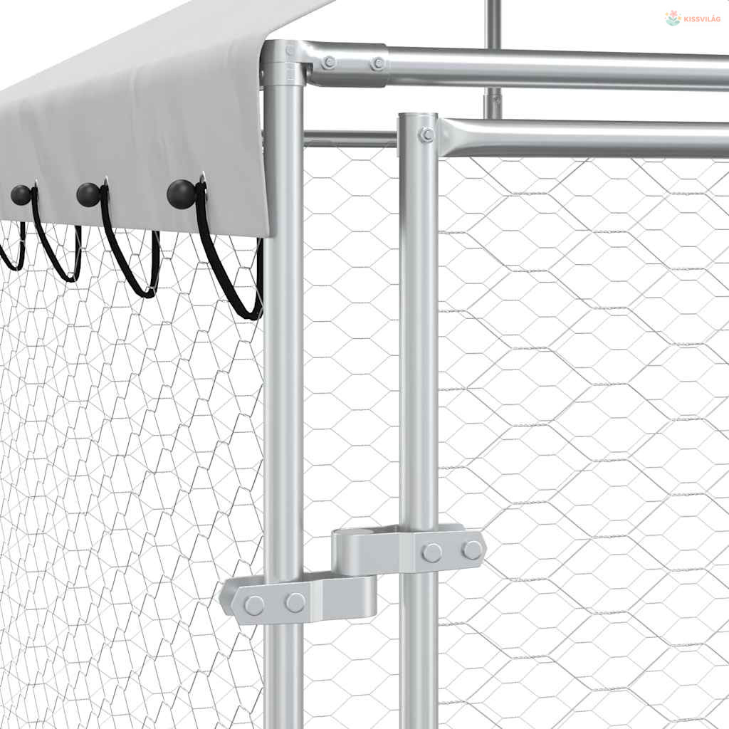 Ezüstszínű horganyzott acél kutyakennel tetővel 6x2x2,5 m