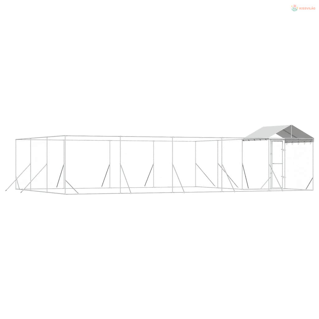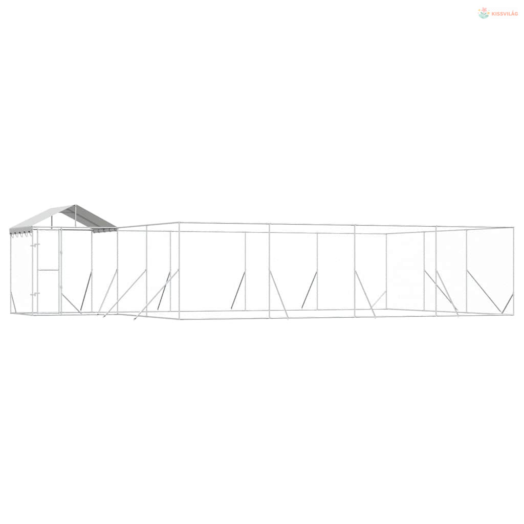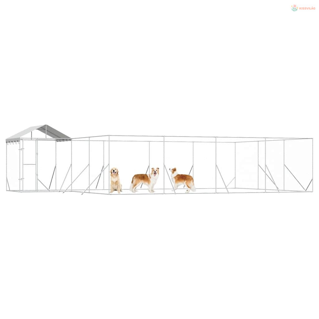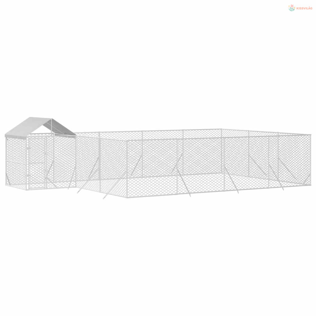 Ezüstszínű horganyzott acél kutyakennel tetővel 10x6x2,5 m