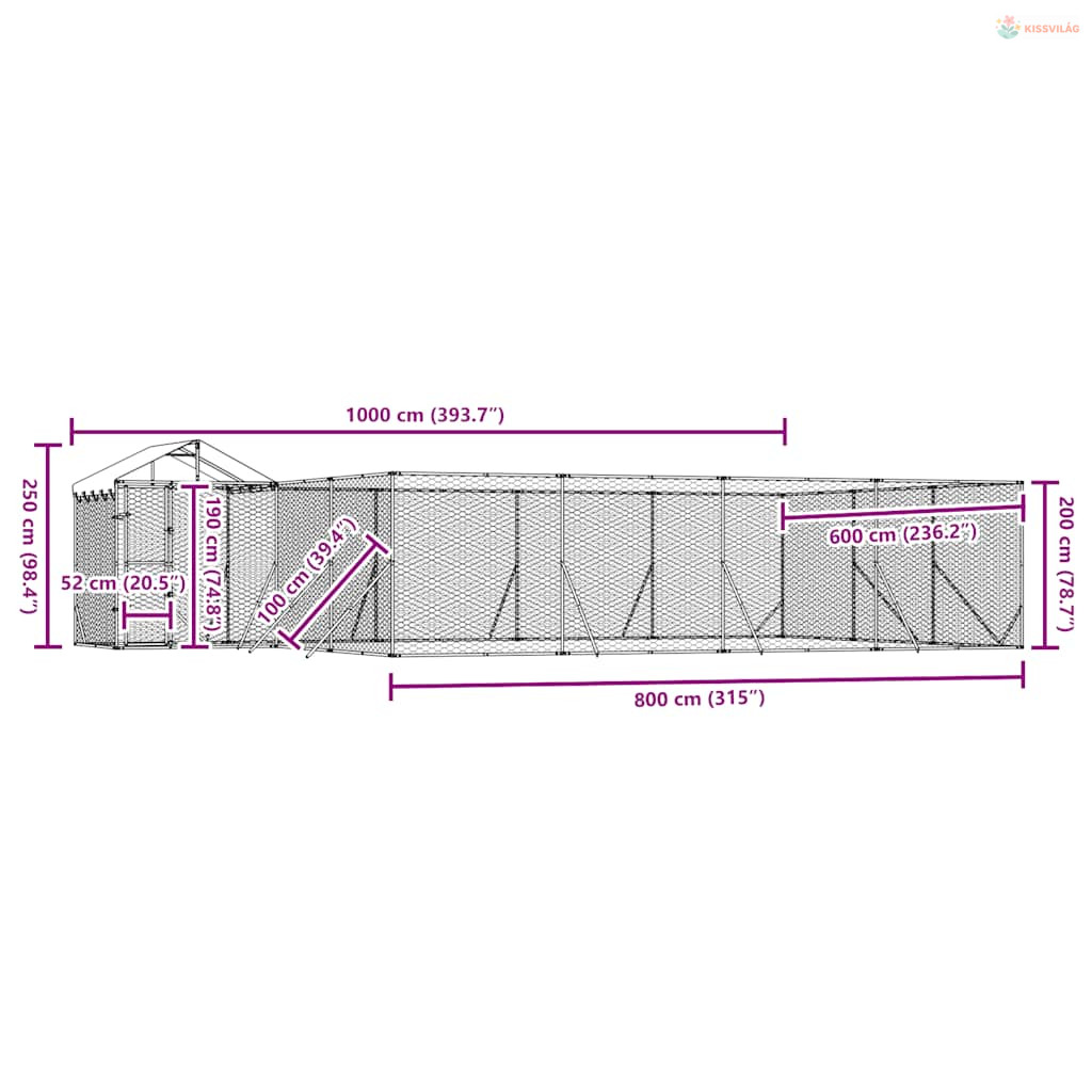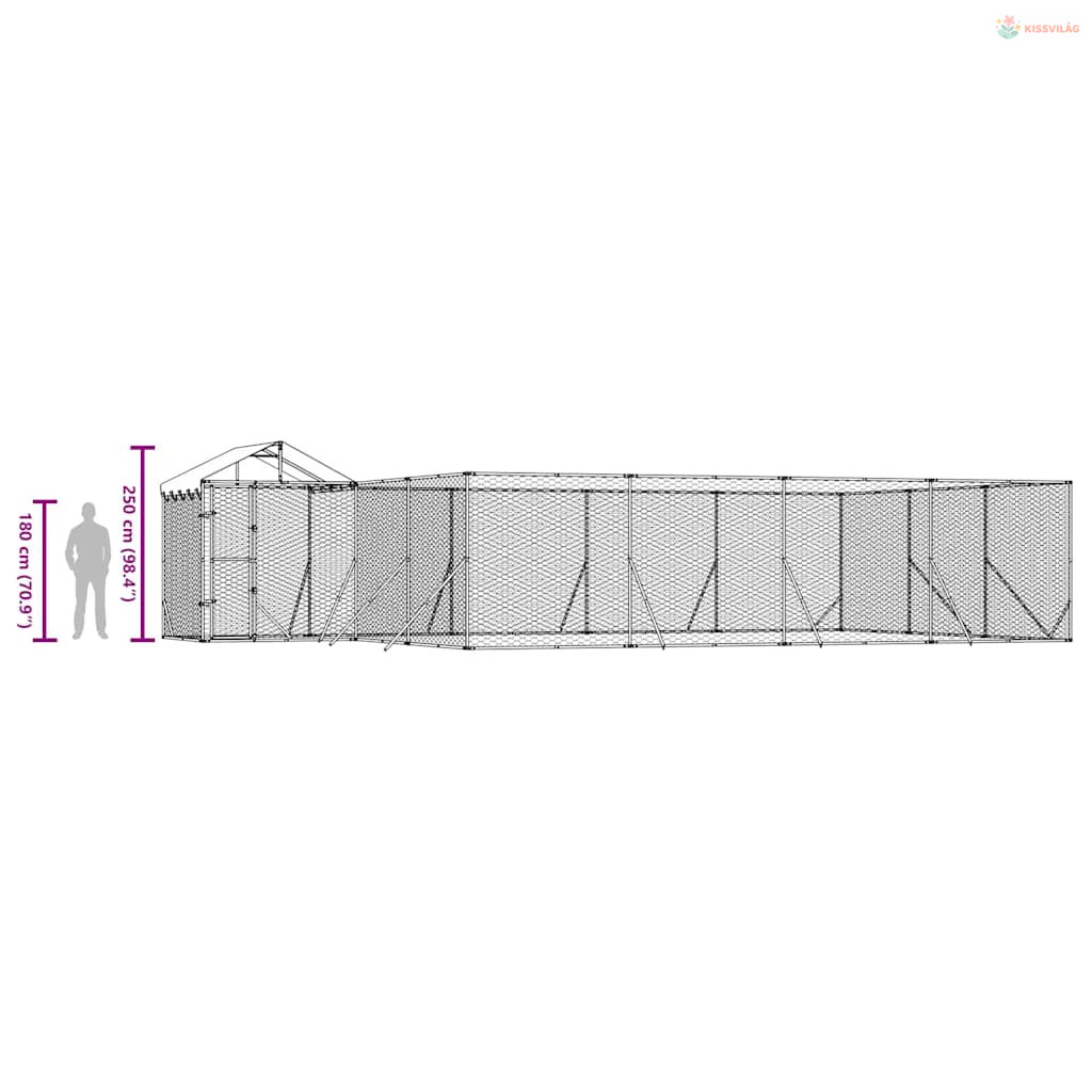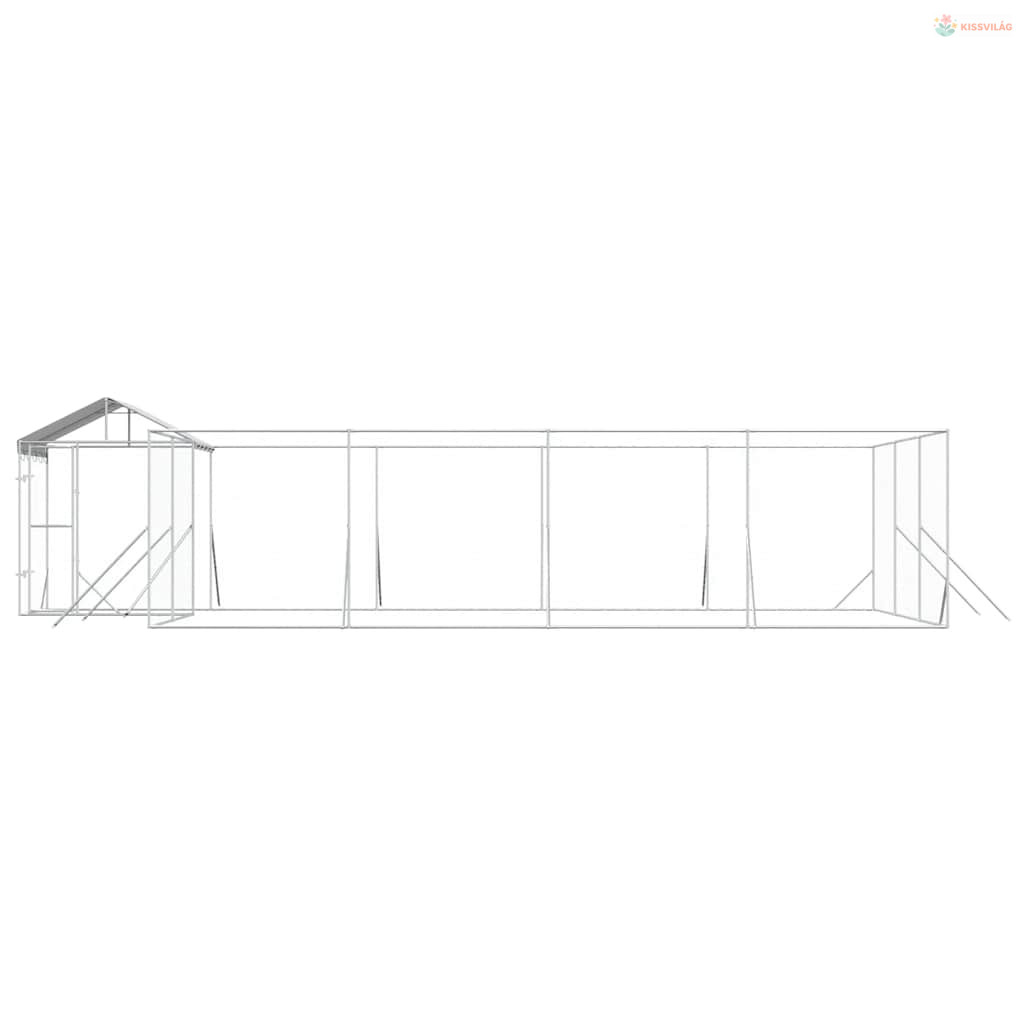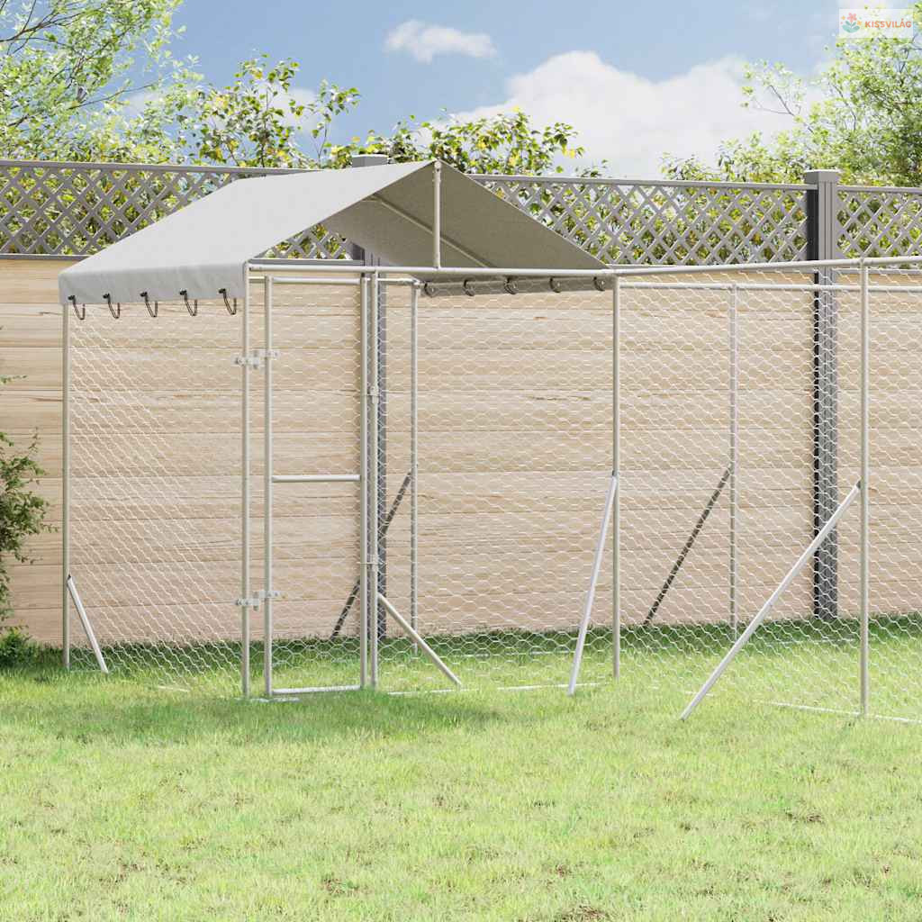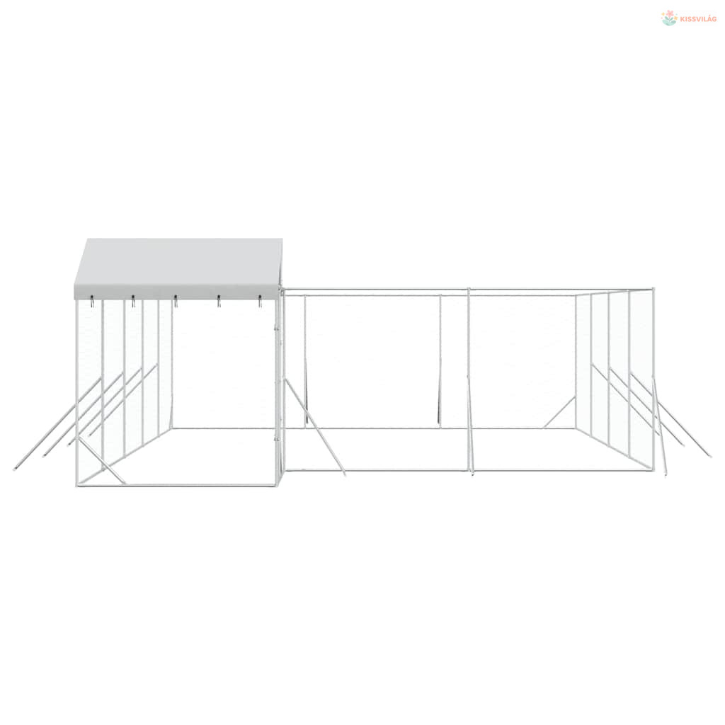 Ezüstszínű horganyzott acél kutyakennel tetővel 10x6x2,5 m