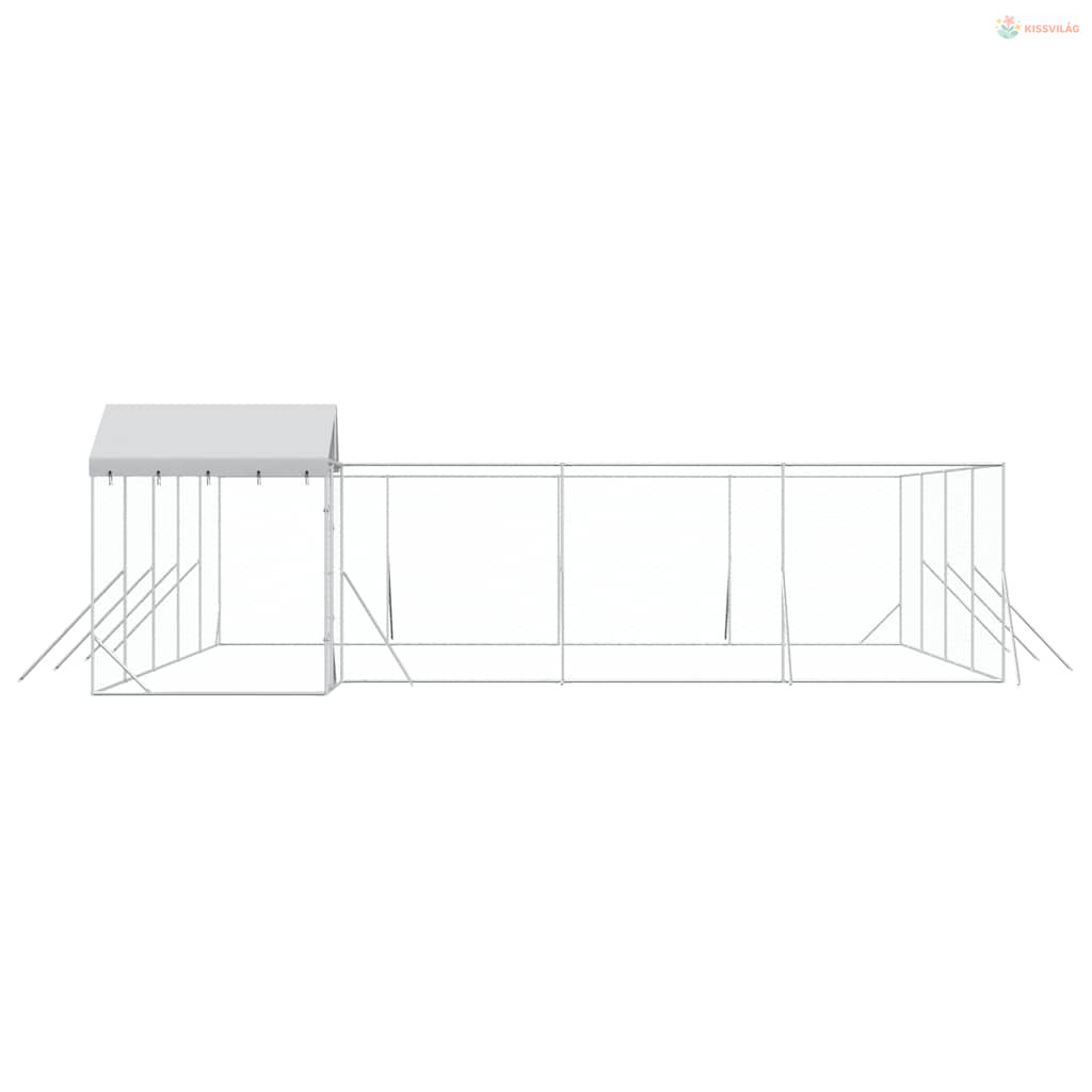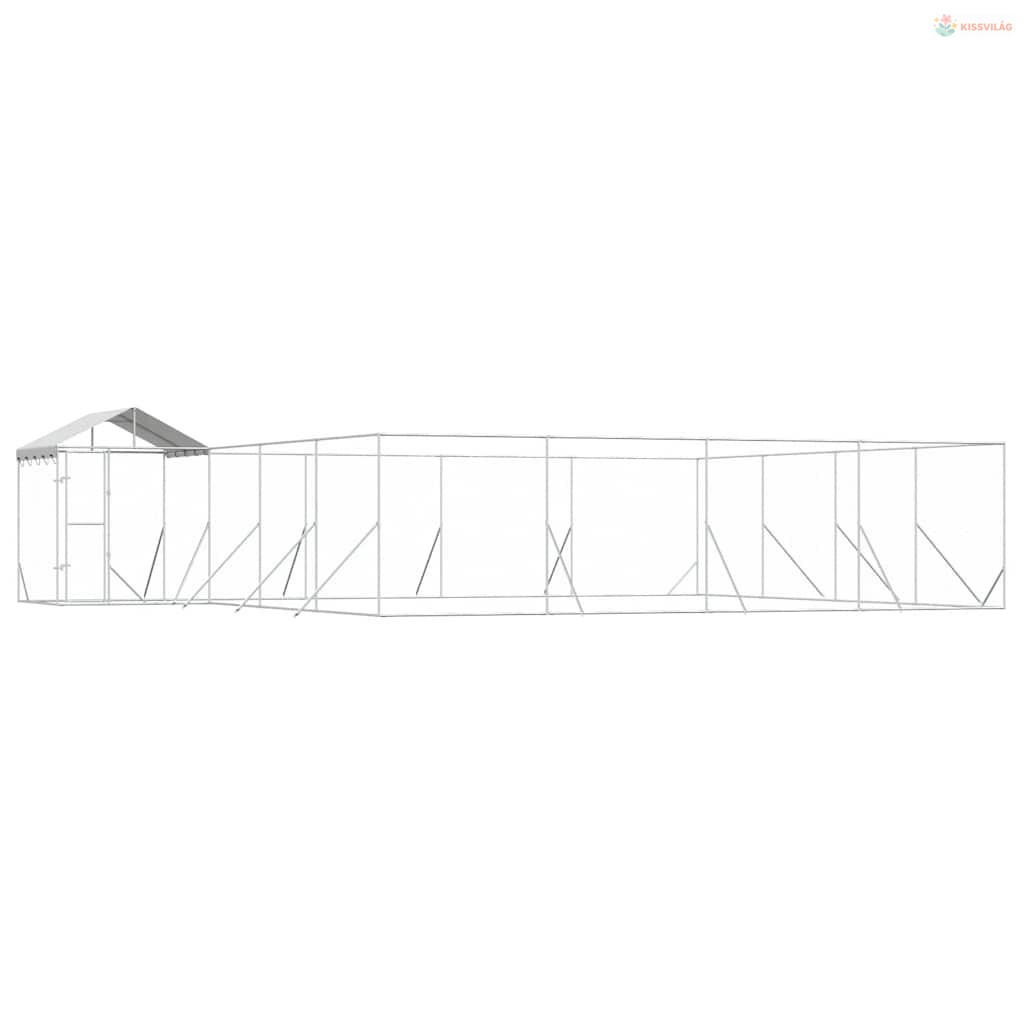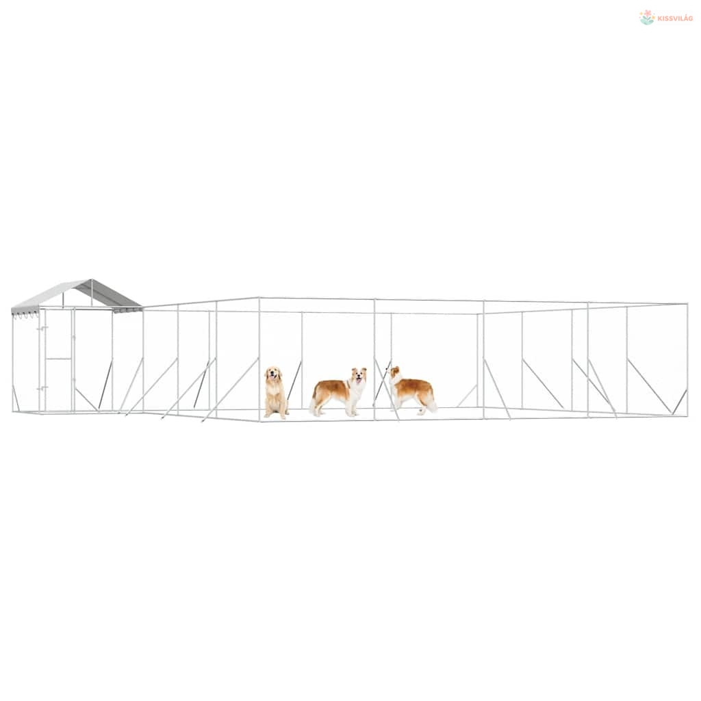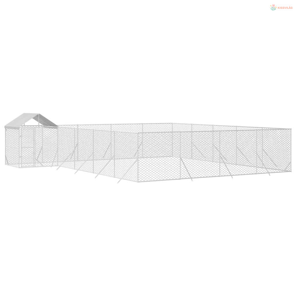 Ezüstszínű horganyzott acél kutyakennel tetővel 10x8x2,5 m