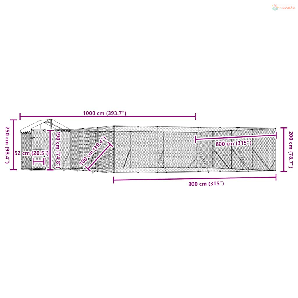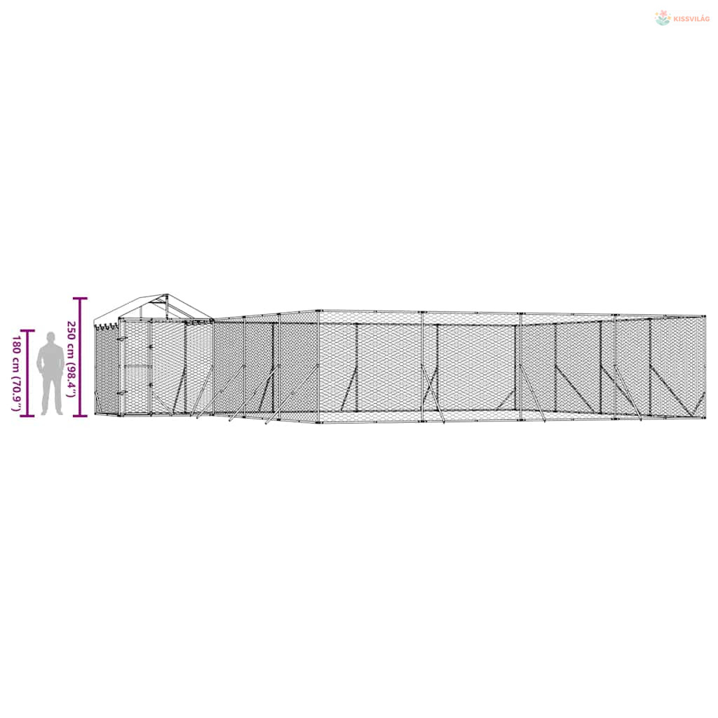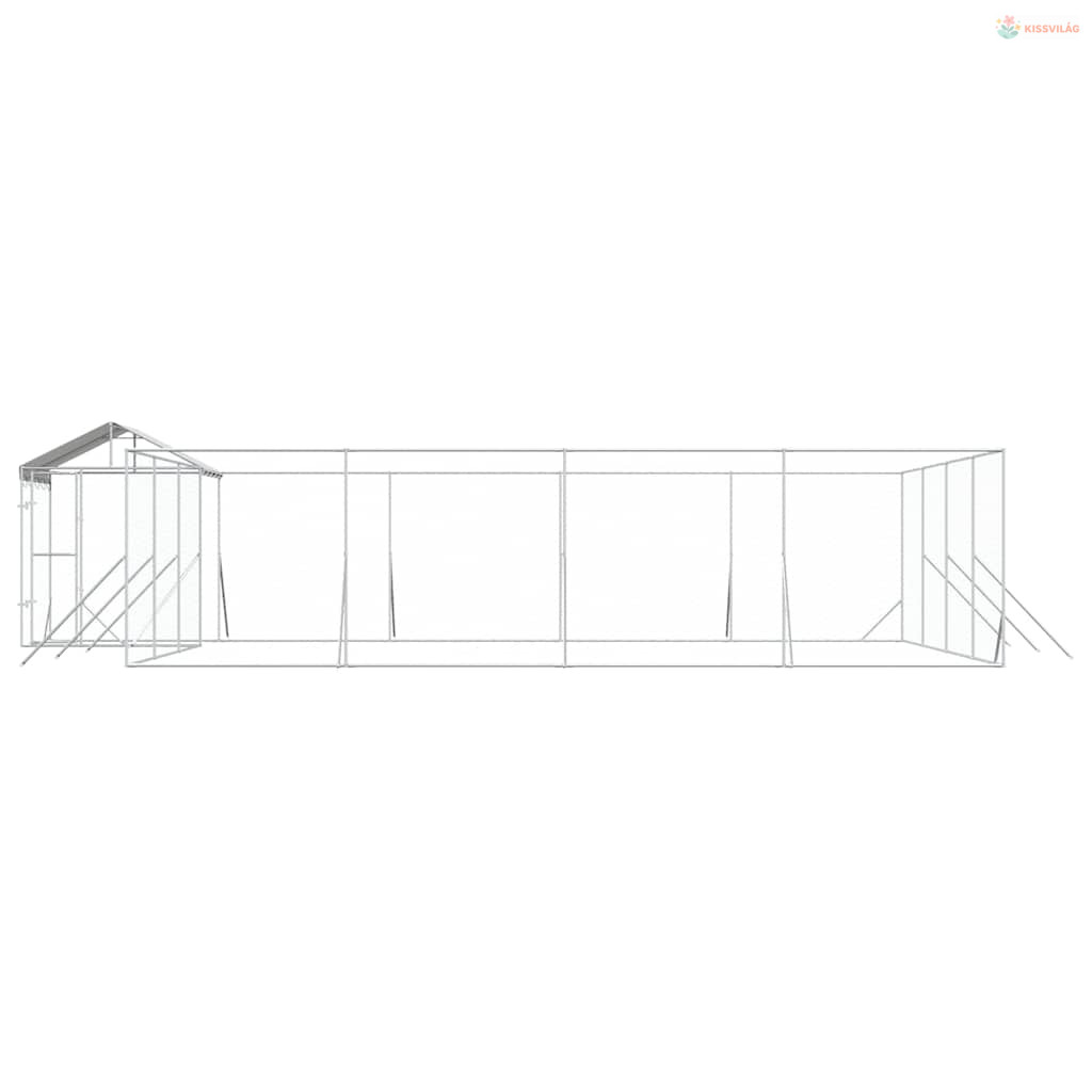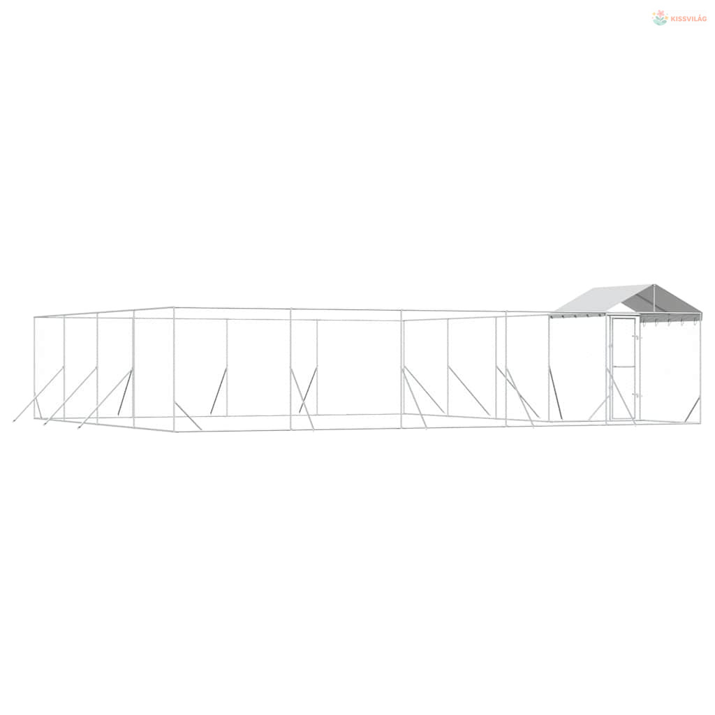 Ezüstszínű horganyzott acél kutyakennel tetővel 10x8x2,5 m