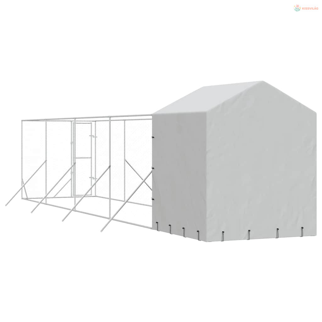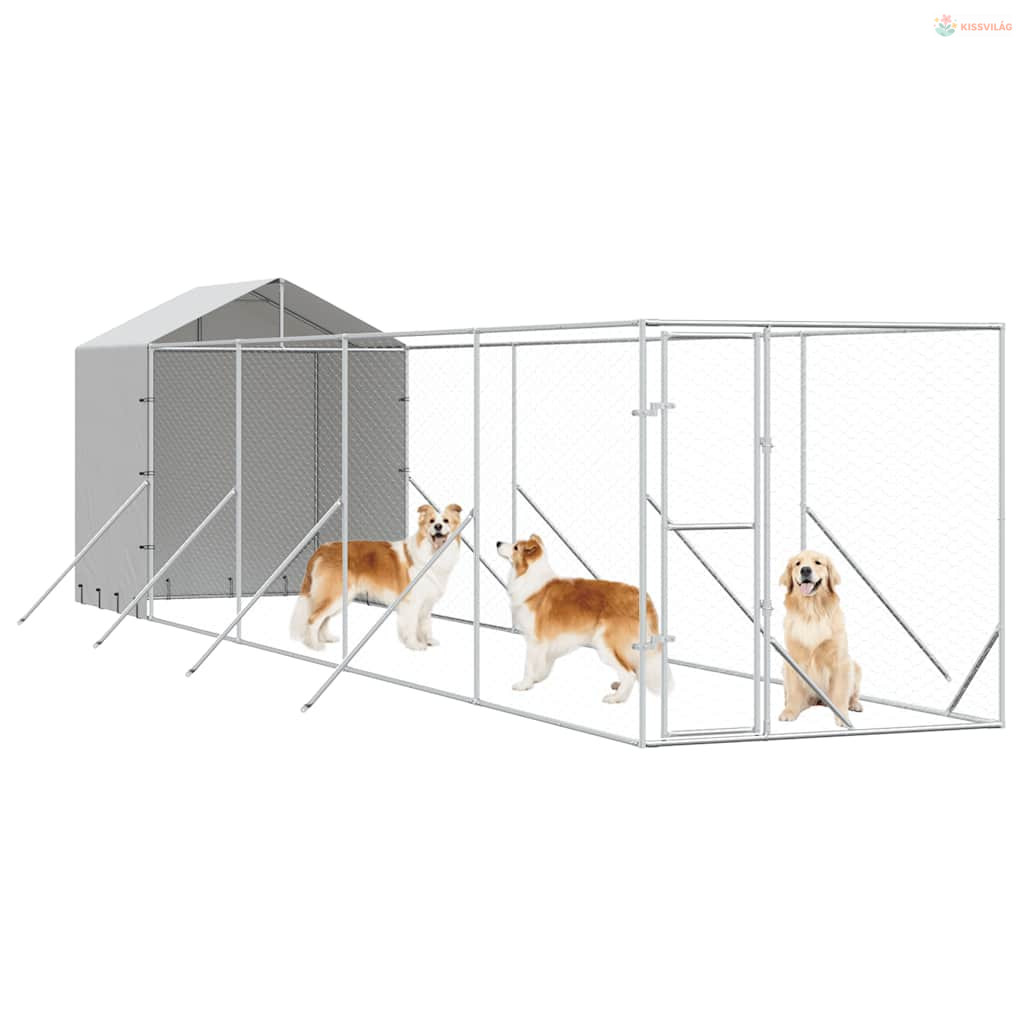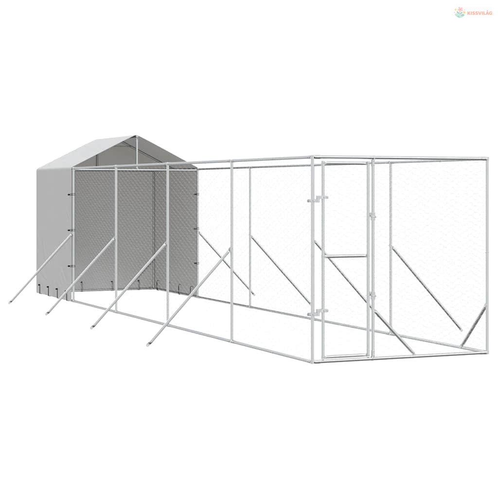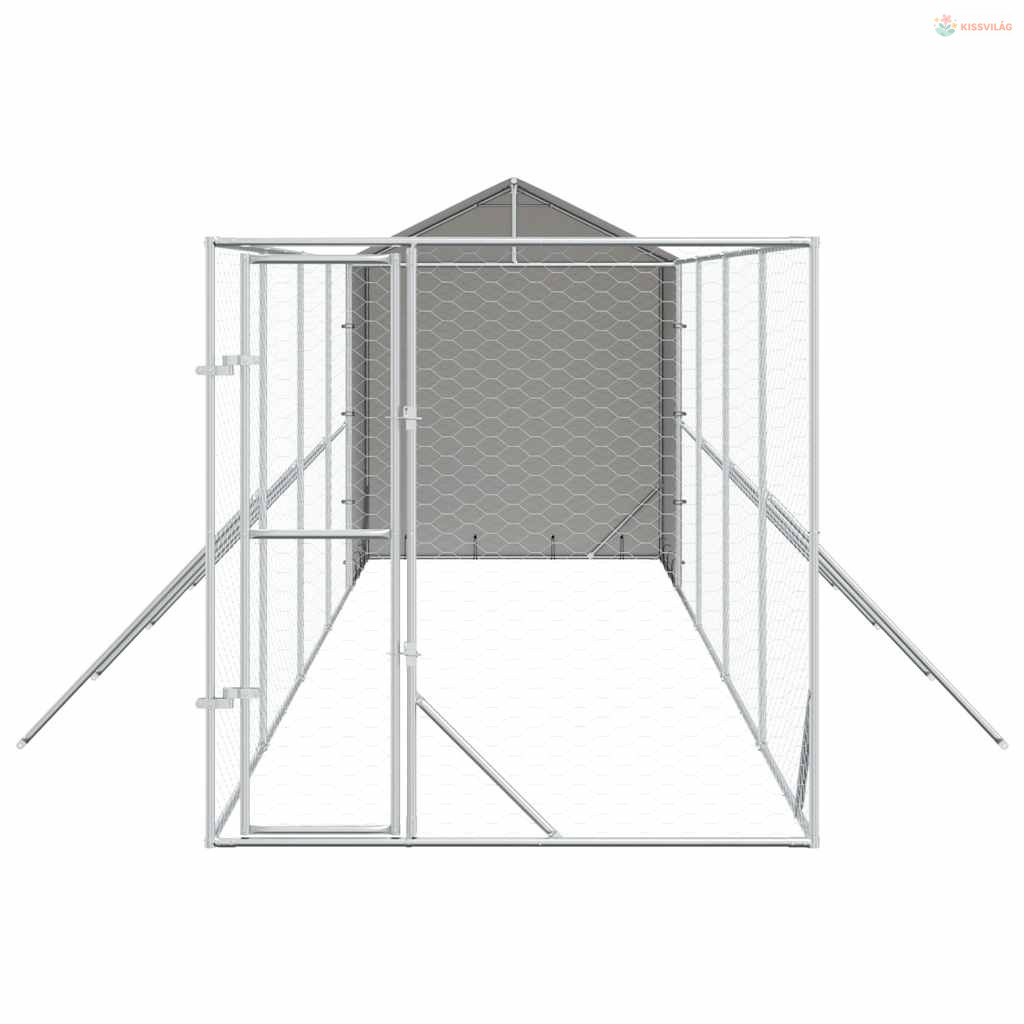Ezüstszínű horganyzott acél kutyakennel tetővel 2x10x2,5 m