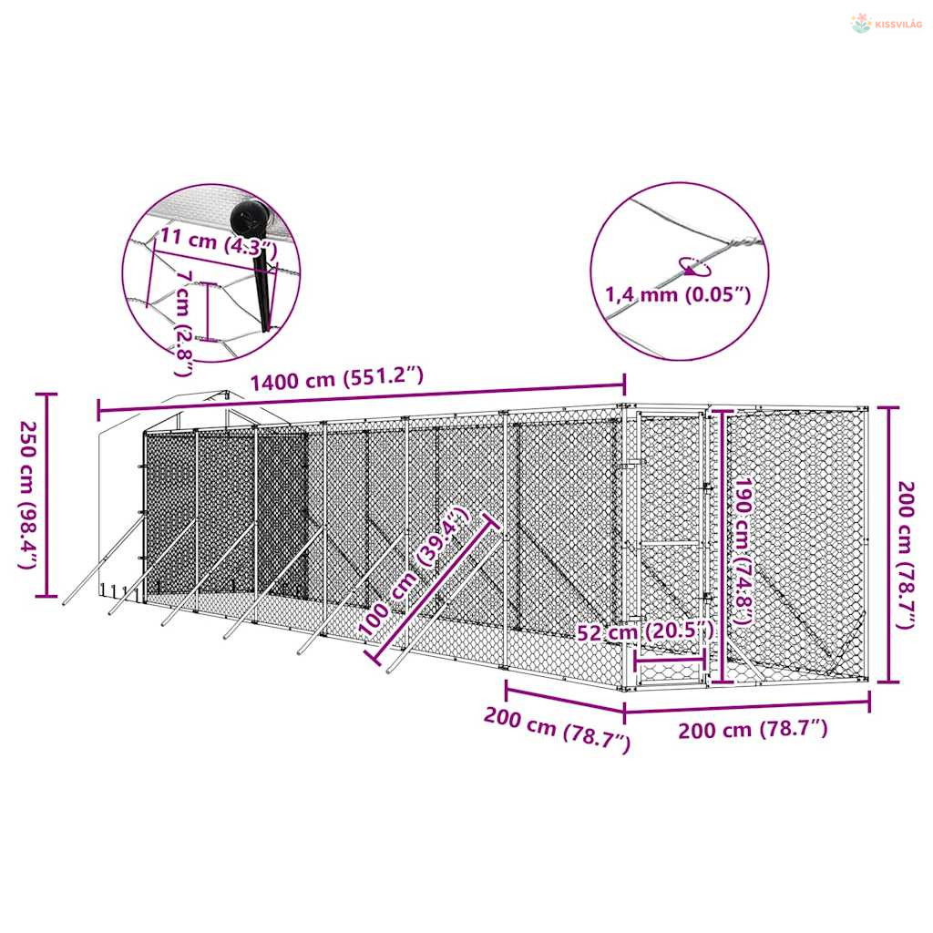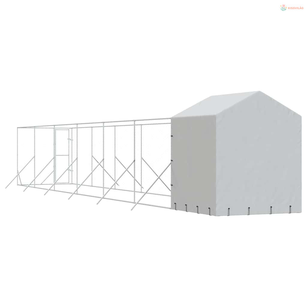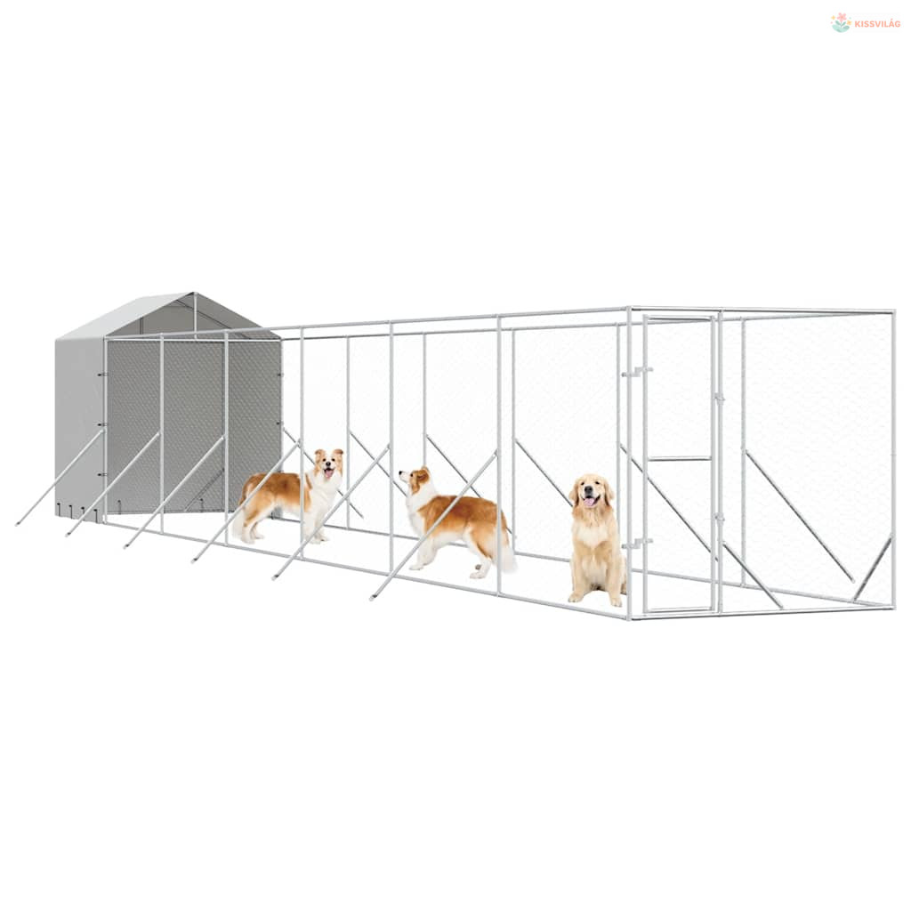 Ezüstszínű horganyzott acél kutyakennel tetővel 2x14x2,5 m