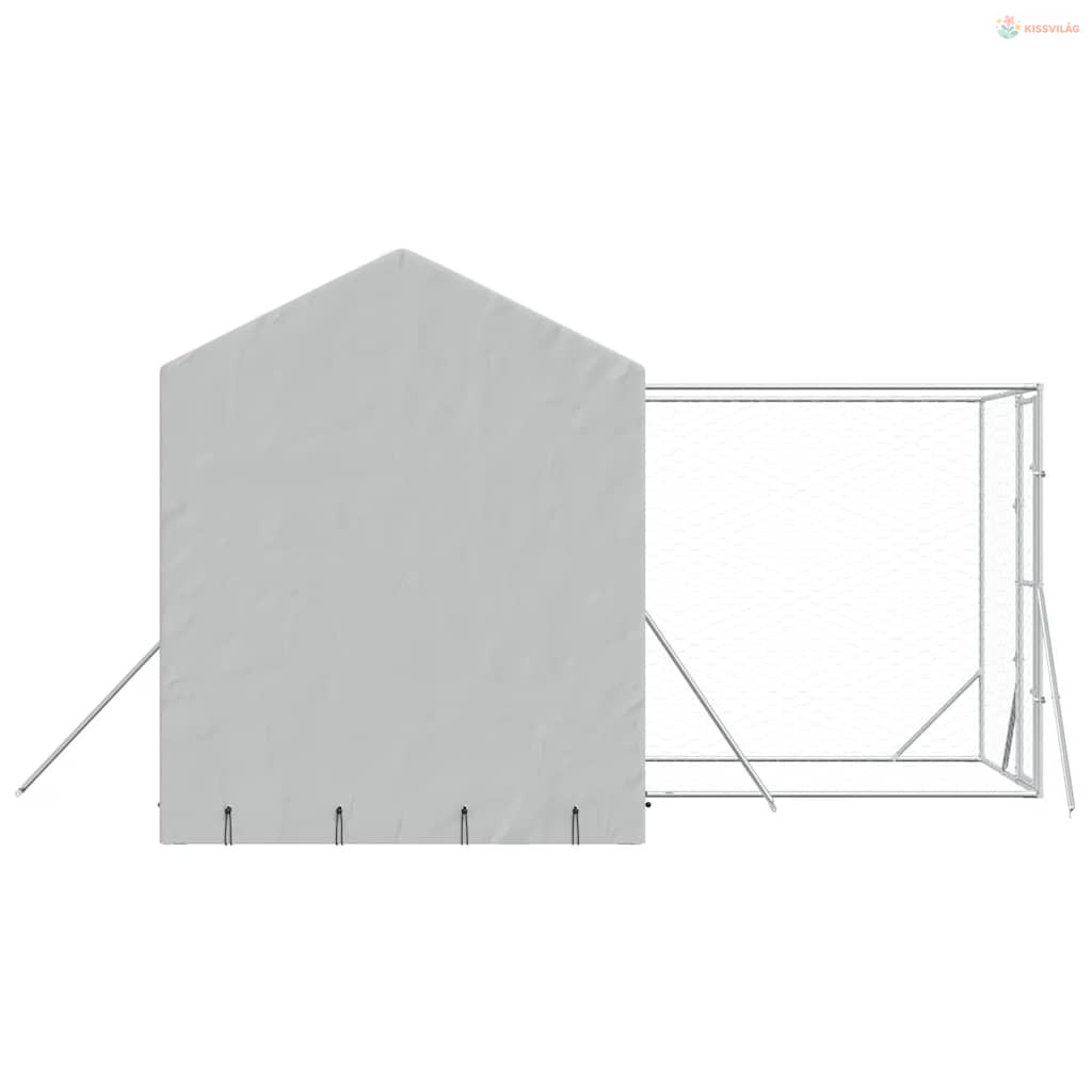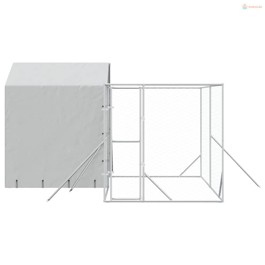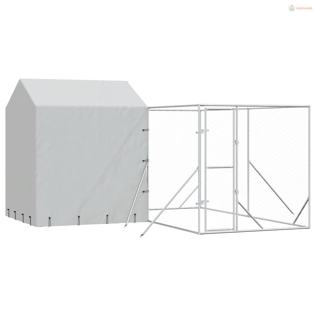 Ezüstszínű horganyzott acél kutyakennel tetővel 4x4x2,5 m