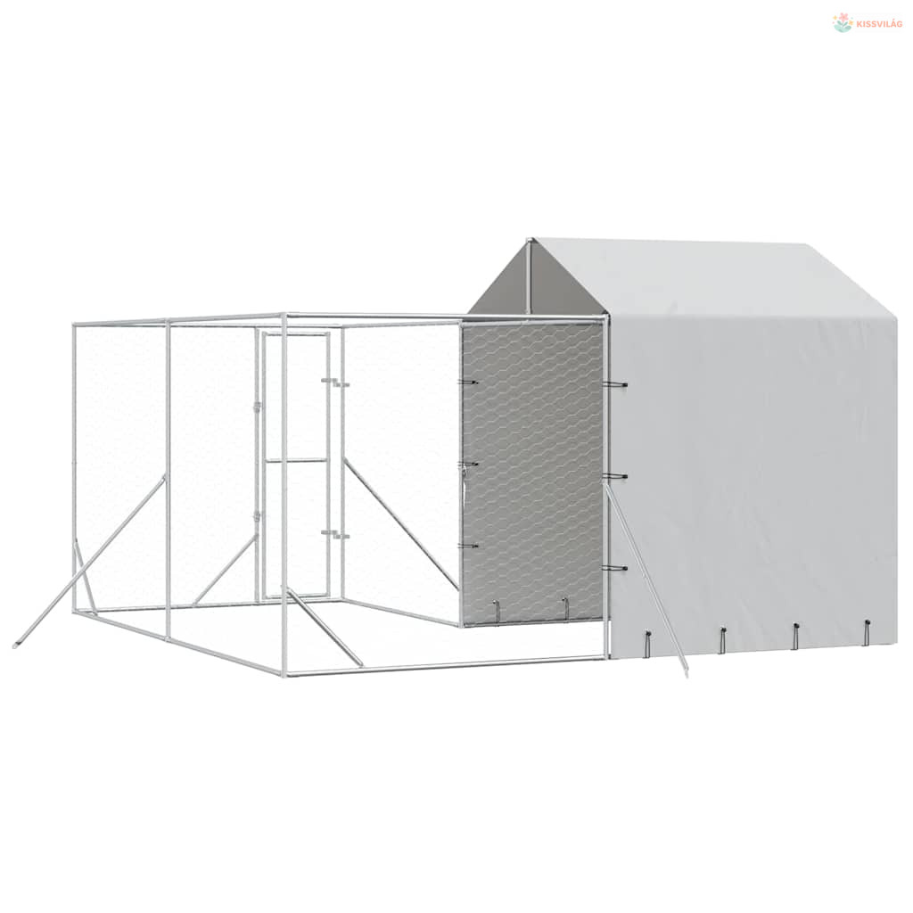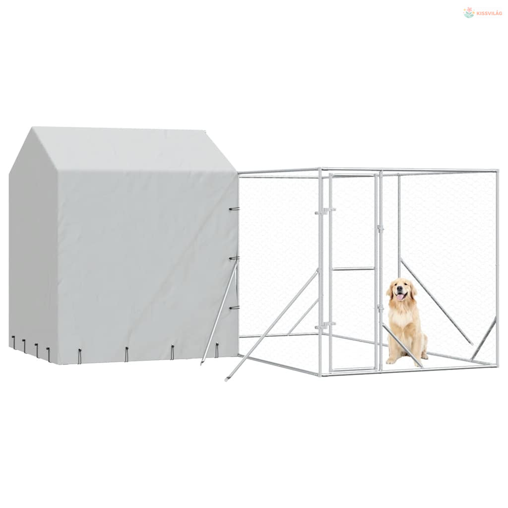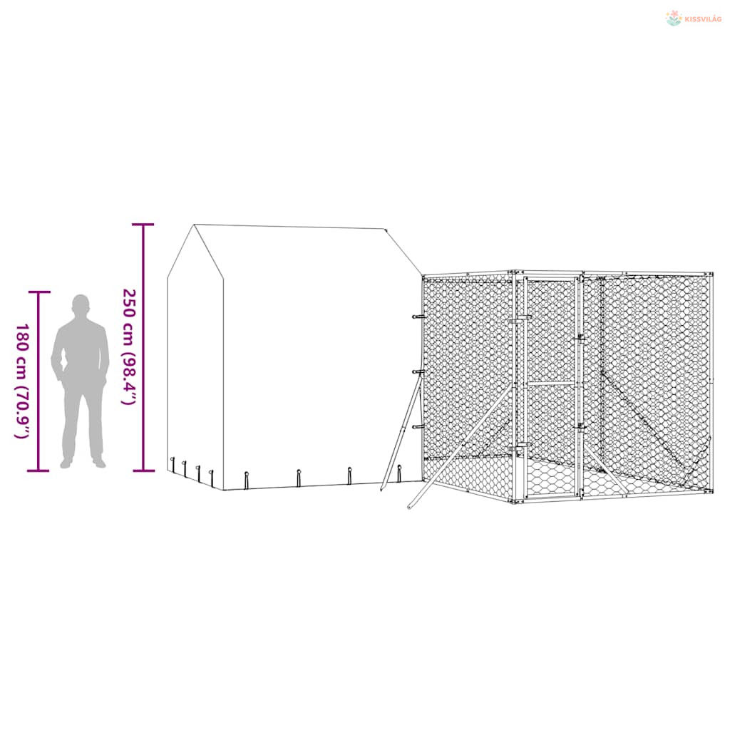 Ezüstszínű horganyzott acél kutyakennel tetővel 4x4x2,5 m