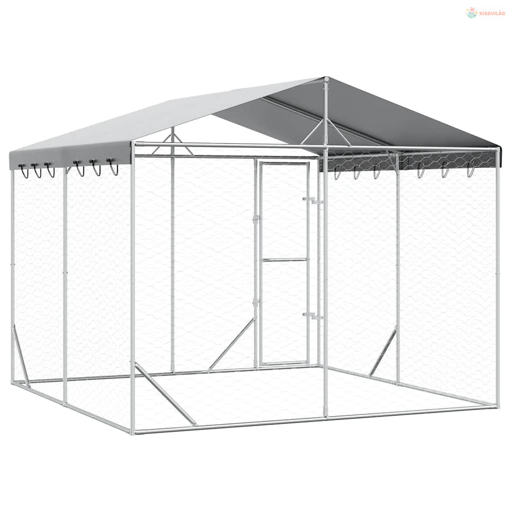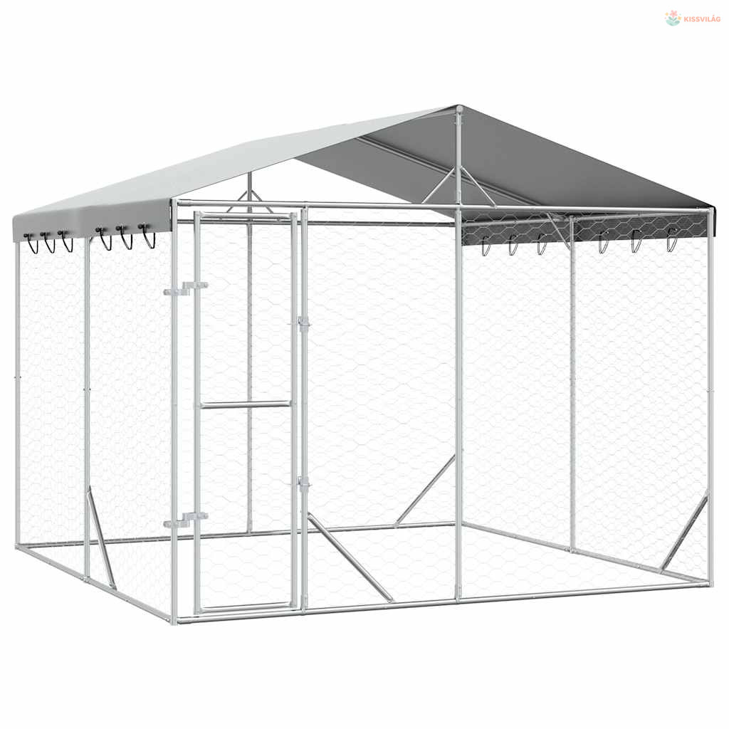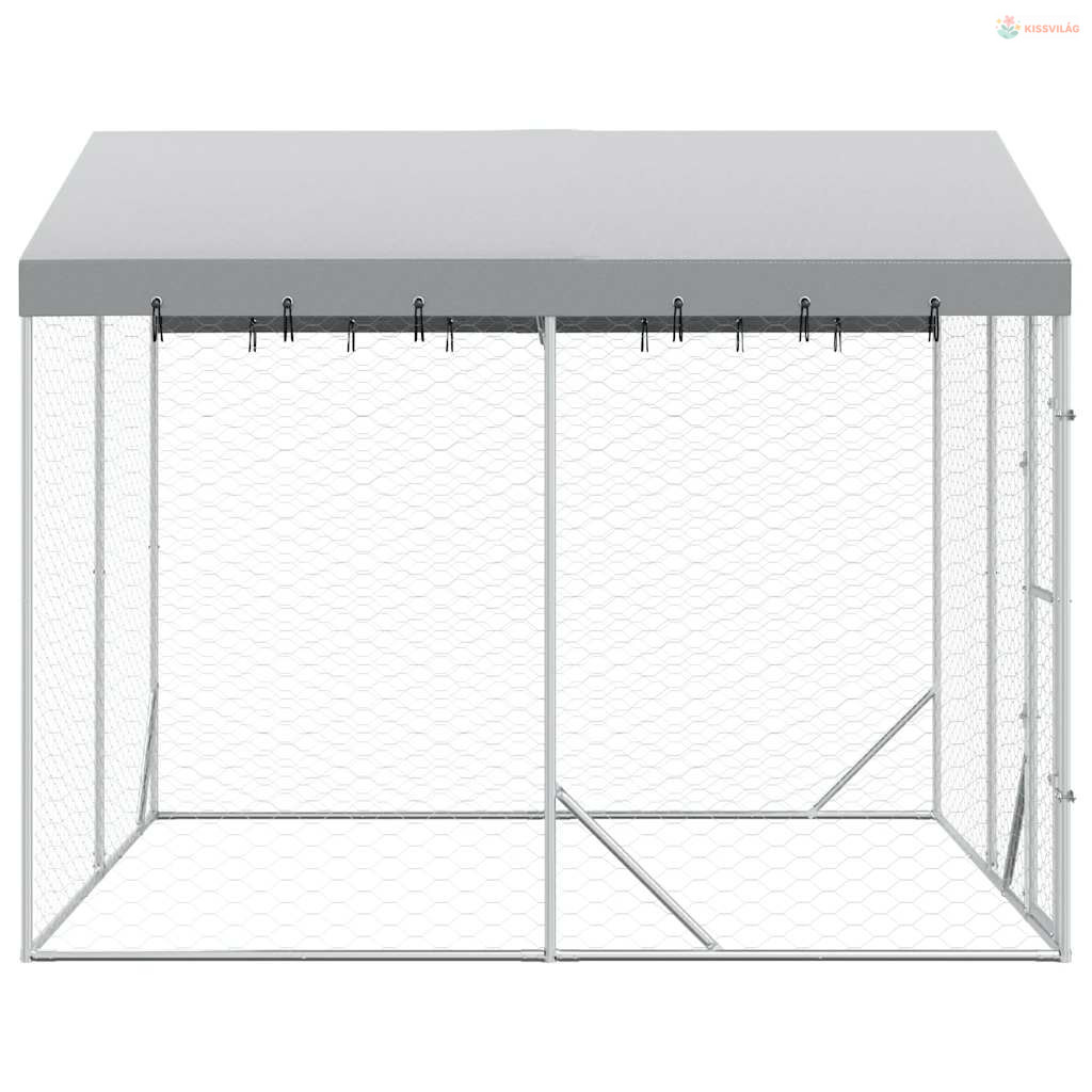 Ezüstszínű horganyzott acél kutyakennel tetővel 3x3x2,5 m