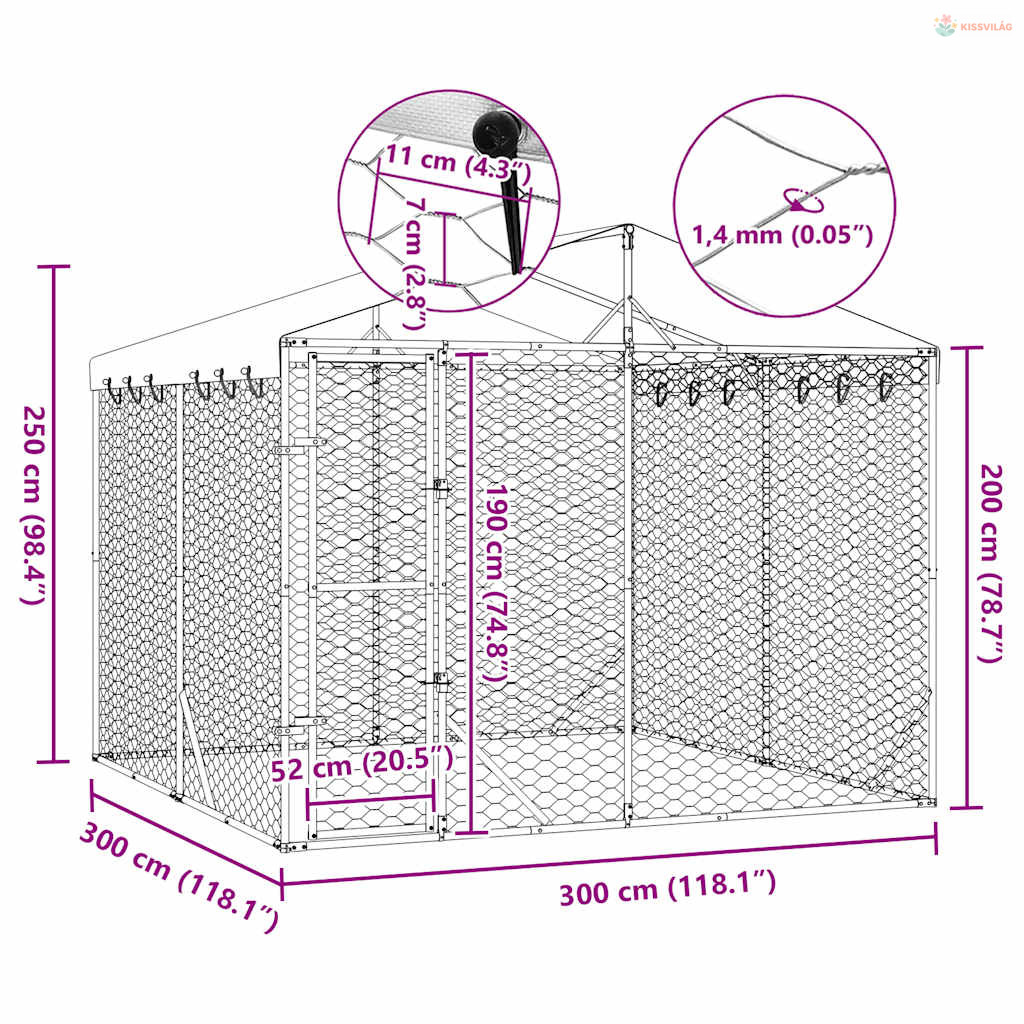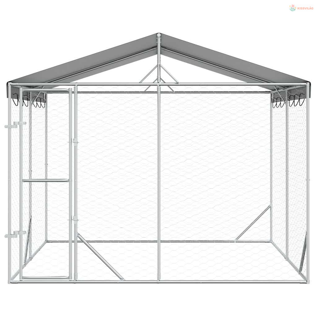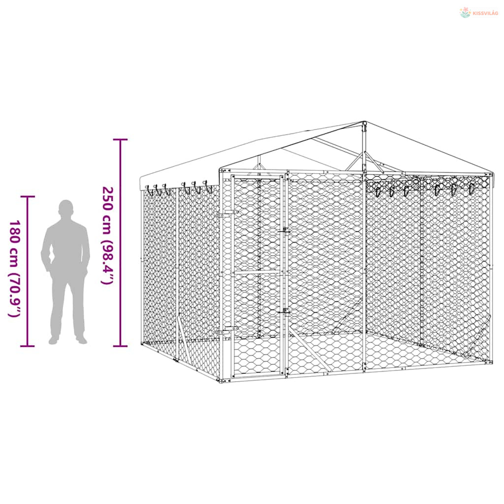 Ezüstszínű horganyzott acél kutyakennel tetővel 3x3x2,5 m
