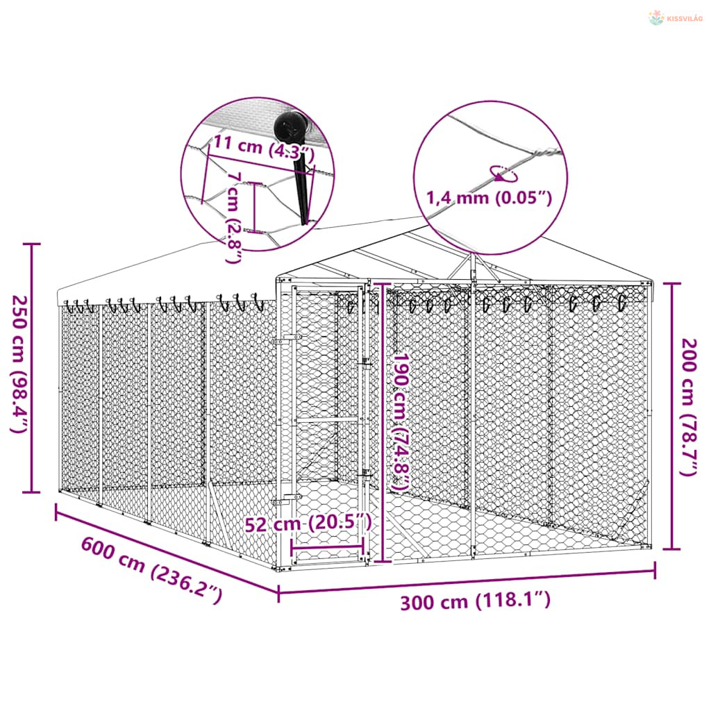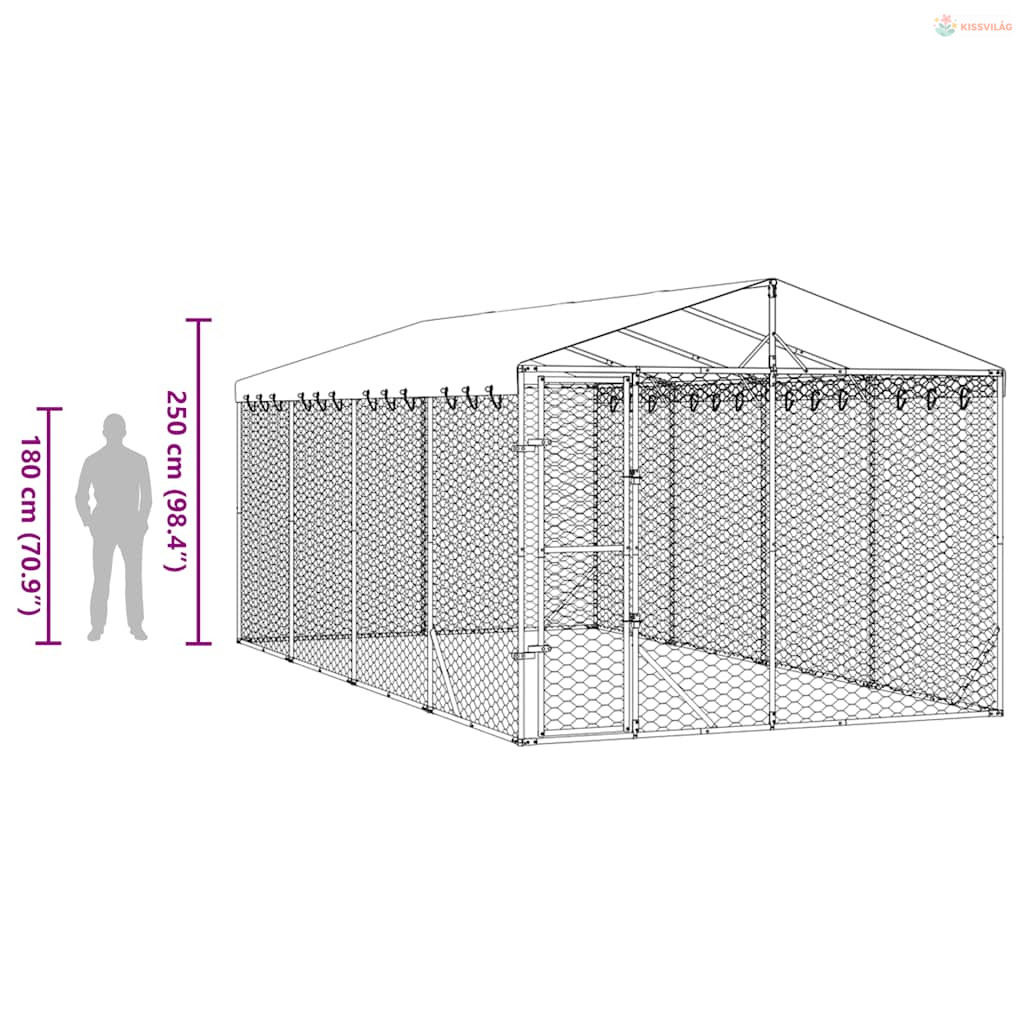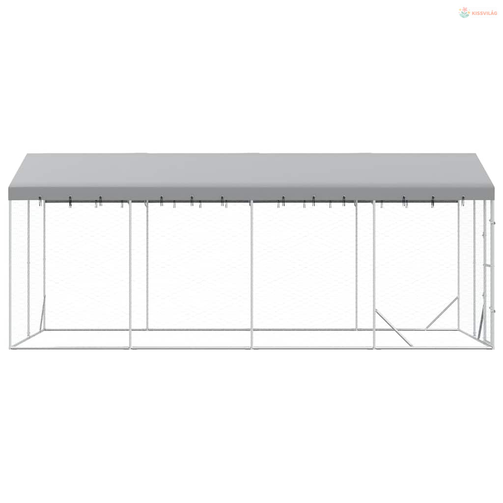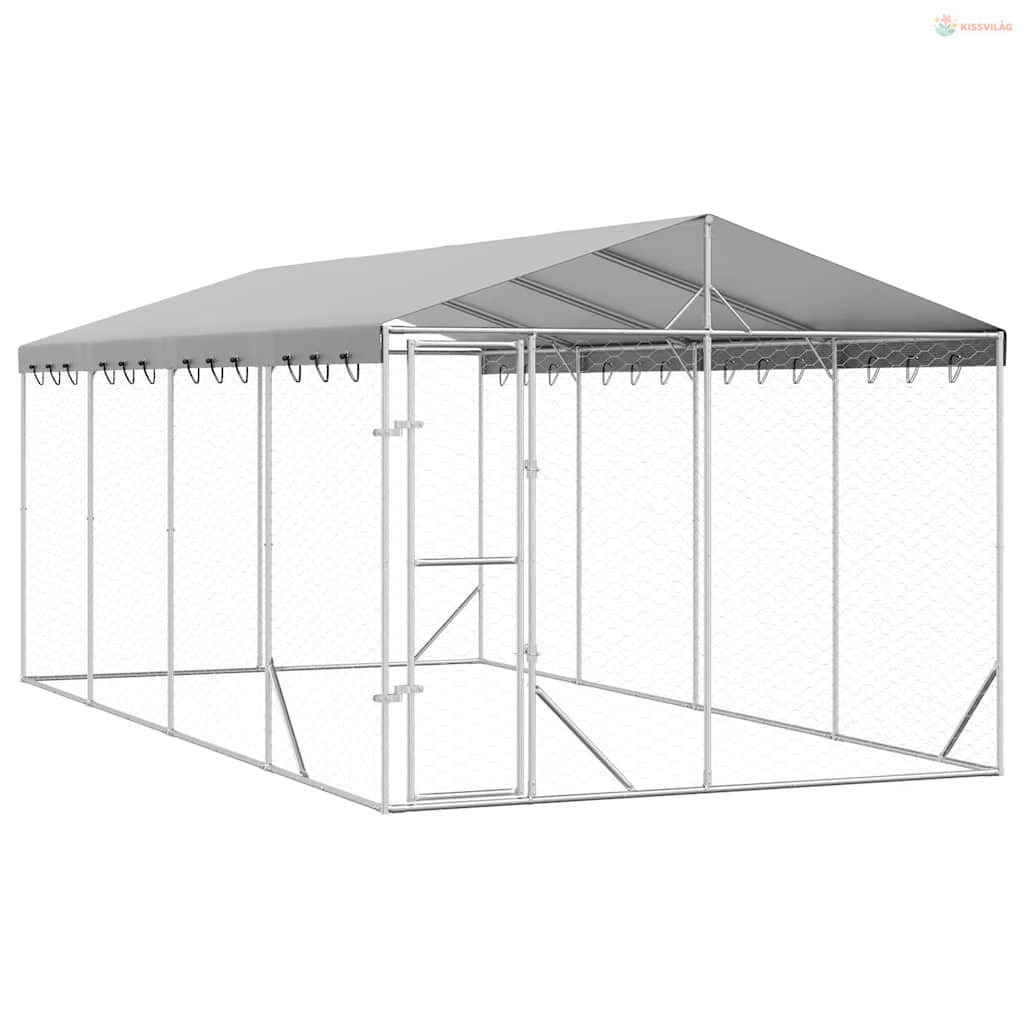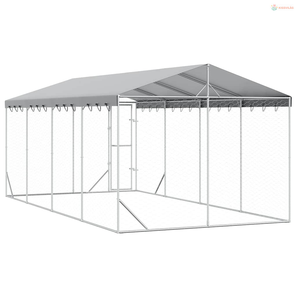 Ezüstszínű horganyzott acél kutyakennel tetővel 3x6x2,5 m