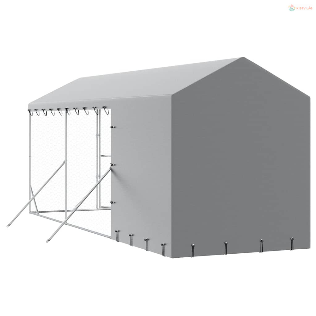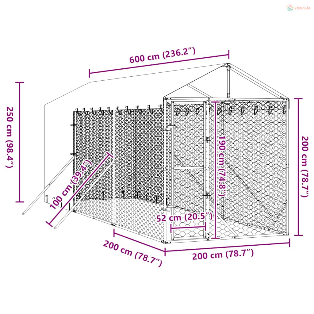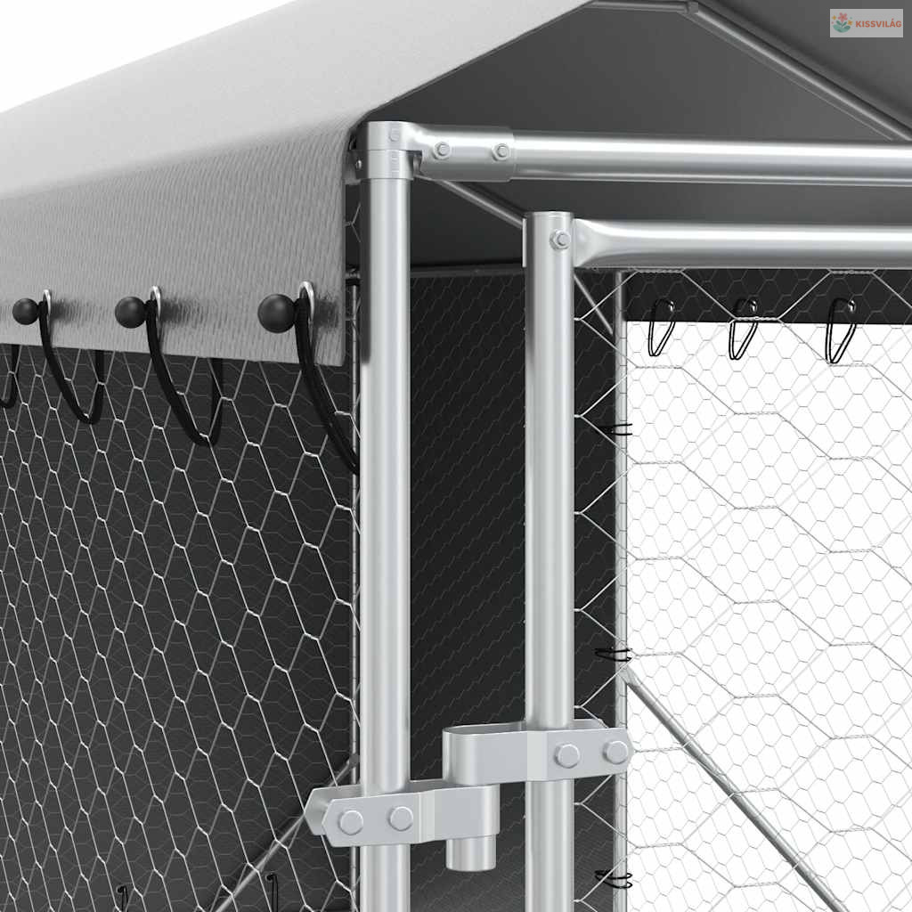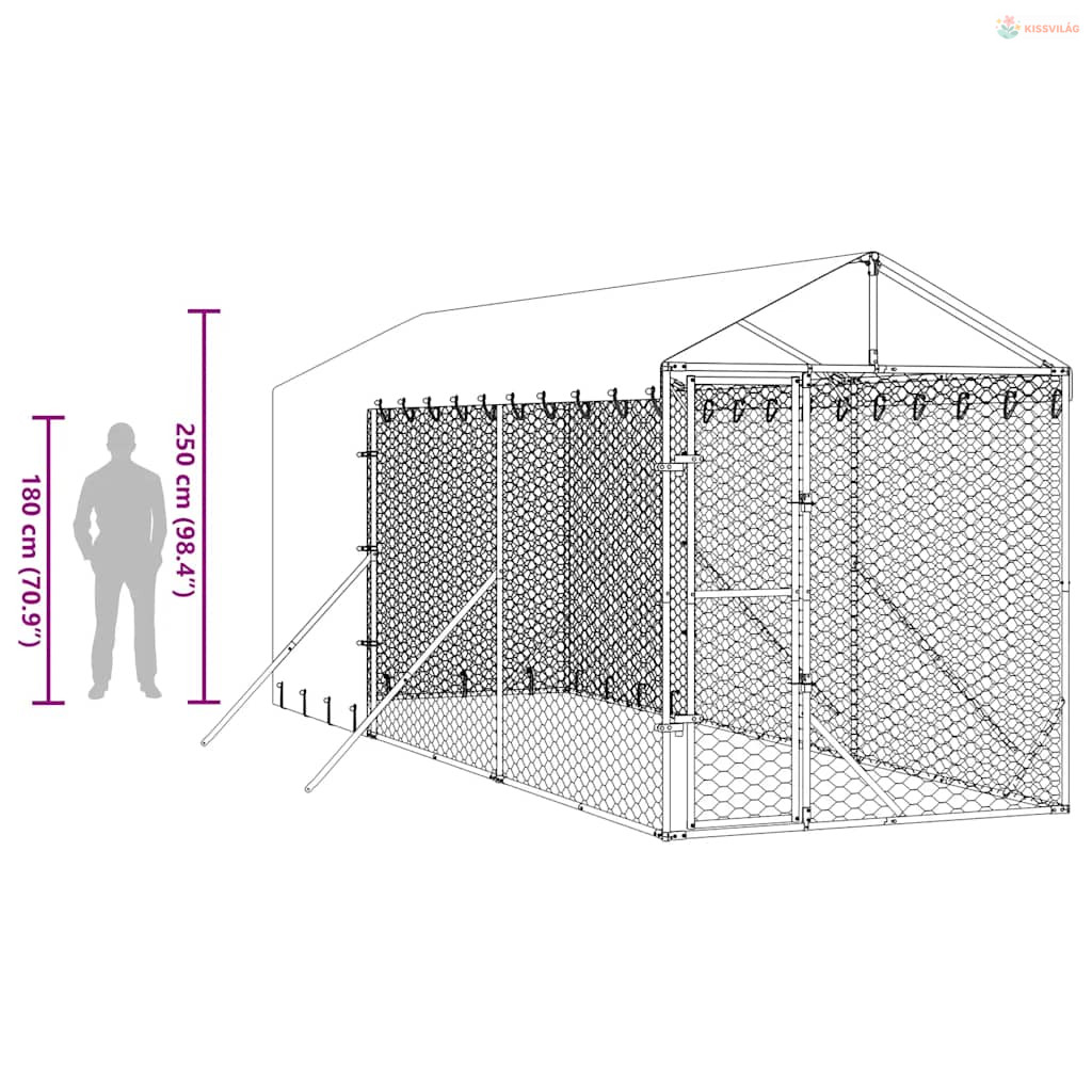 Ezüstszínű horganyzott acél kutyakennel tetővel 2x6x2,5 m