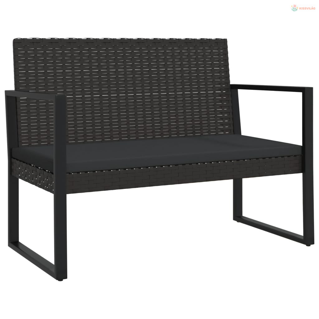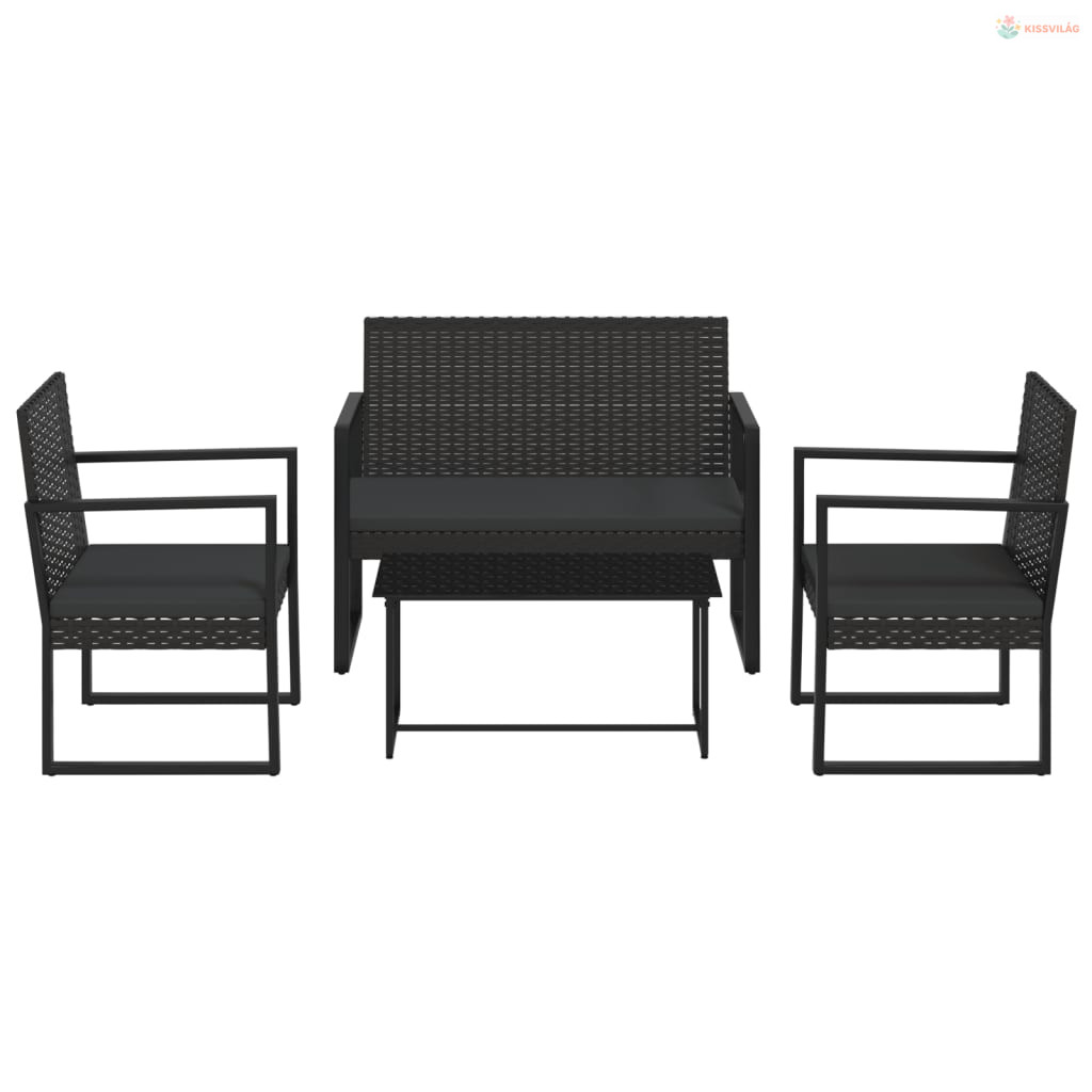 4 részes fekete polyrattan kerti ülőgarnitúra párnákkal