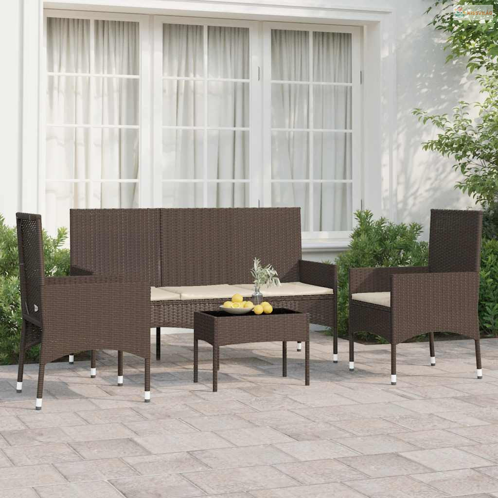 4 részes barna polyrattan kerti ülőgarnitúra párnákkal
