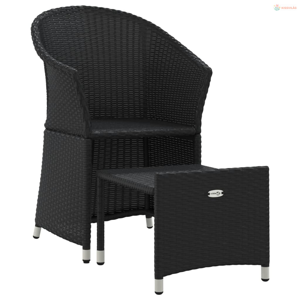 2 részes fekete polyrattan kerti ülőgarnitúra párnákkal
