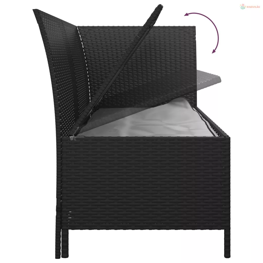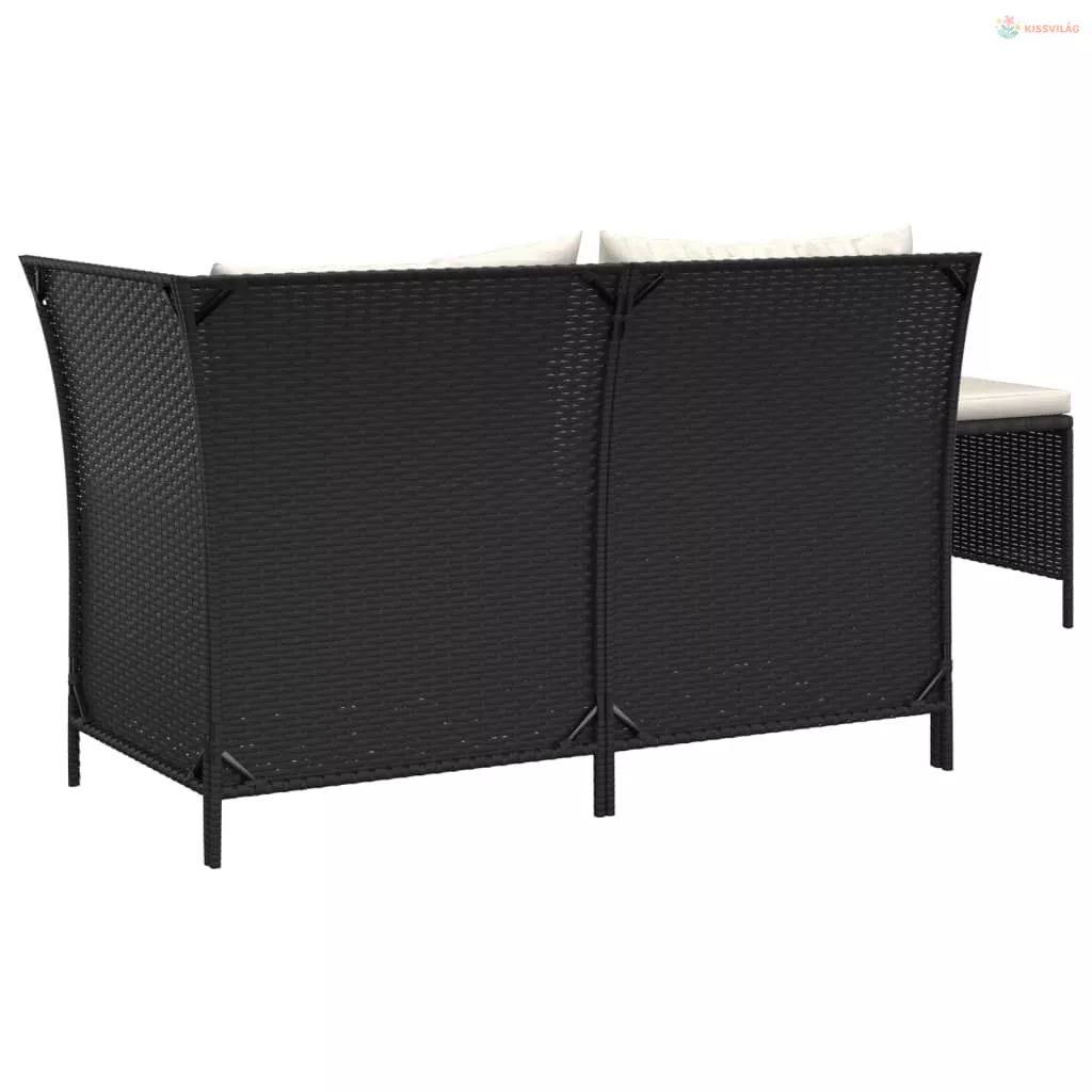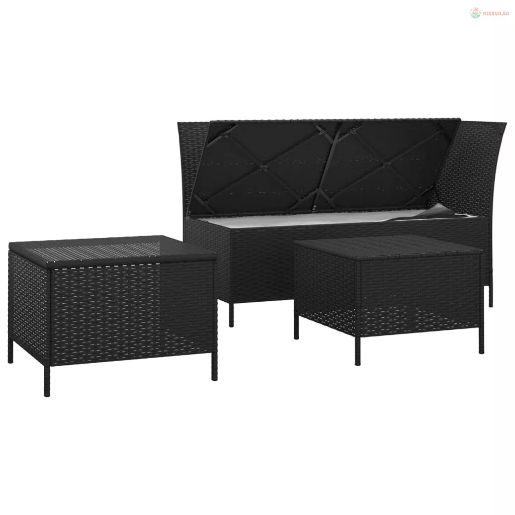 3 részes fekete polyrattan kerti ülőgarnitúra párnákkal
