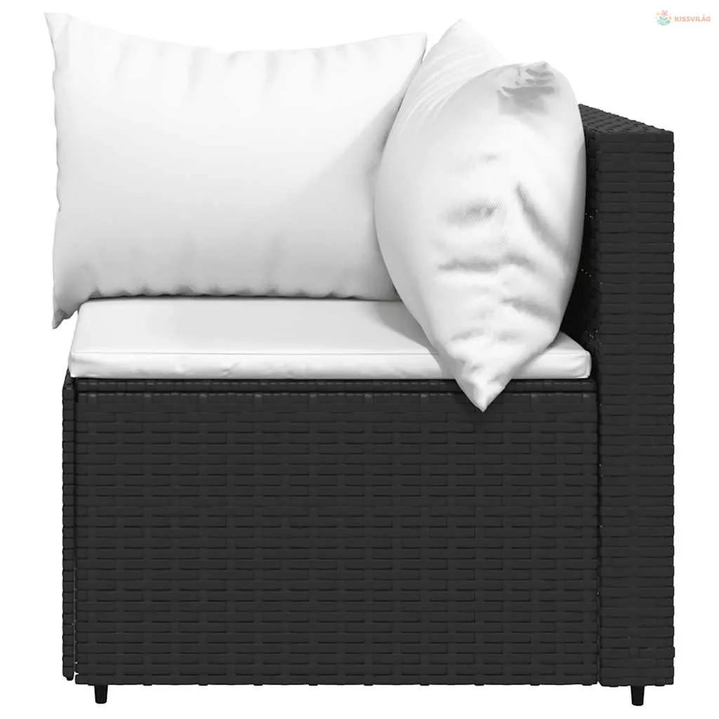 3 részes fekete polyrattan kerti ülőgarnitúra párnákkal