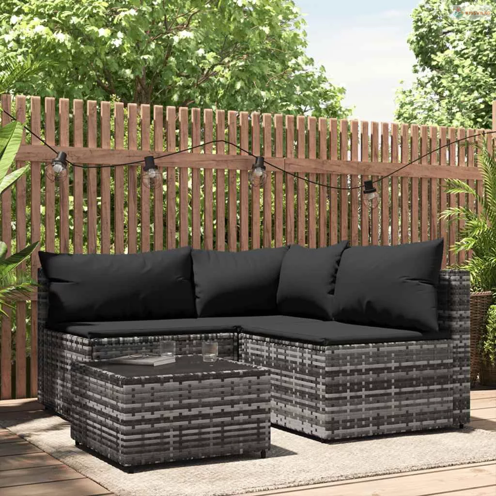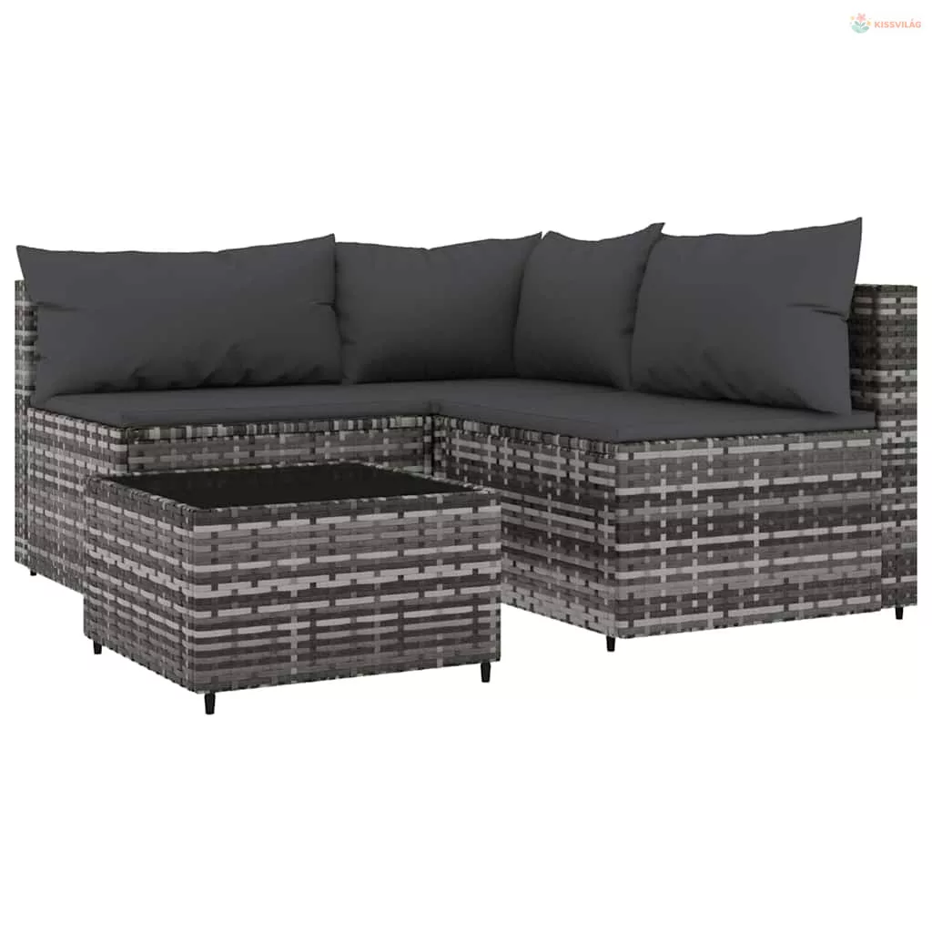4 részes szürke polyrattan kerti ülőgarnitúra párnákkal