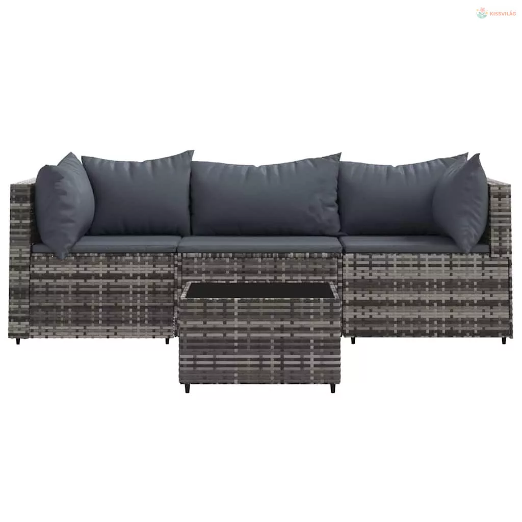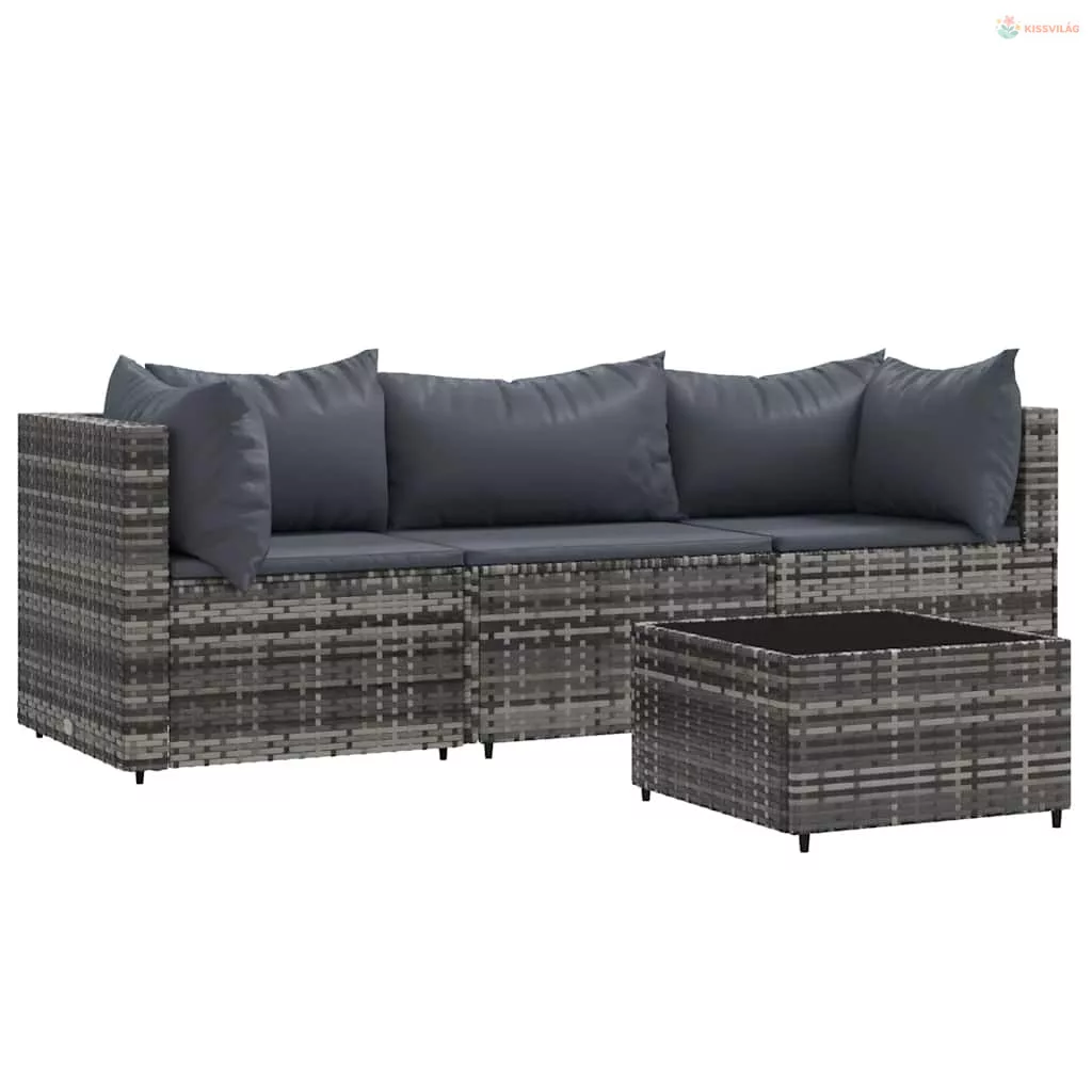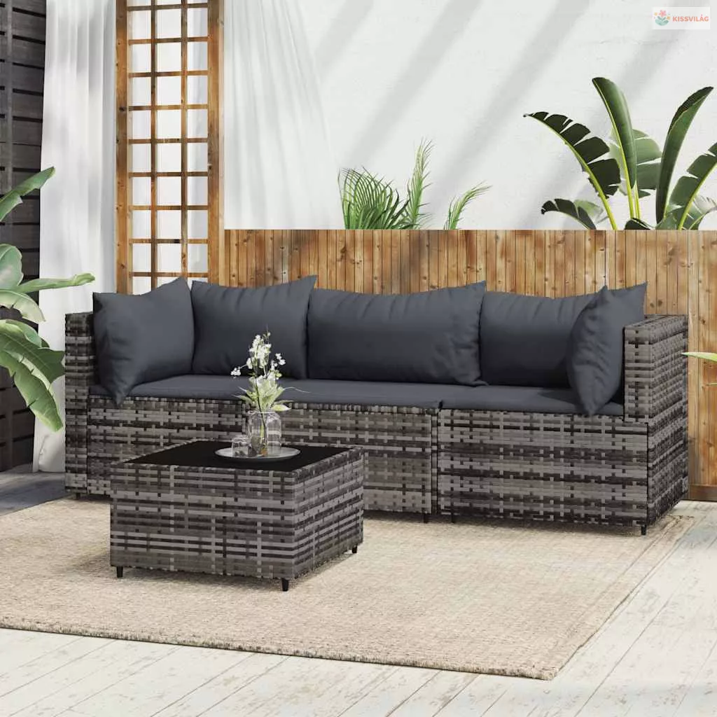 4 részes szürke polyrattan kerti ülőgarnitúra párnákkal