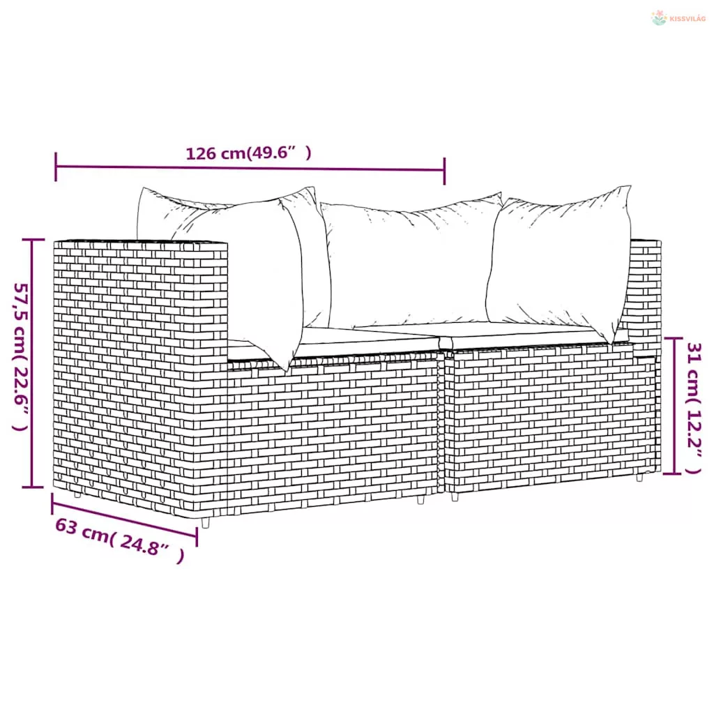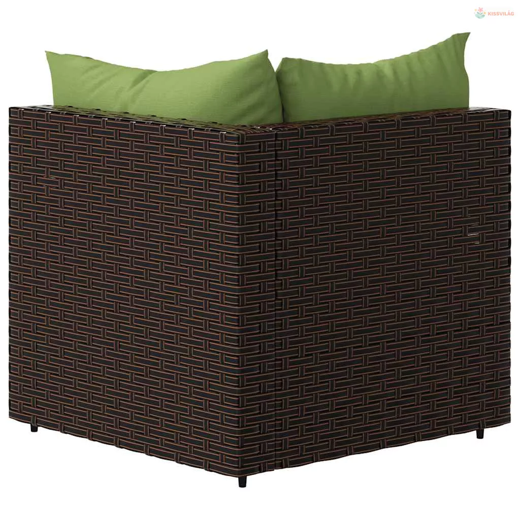 2 db barna polyrattan kerti sarokkanapé párnákkal