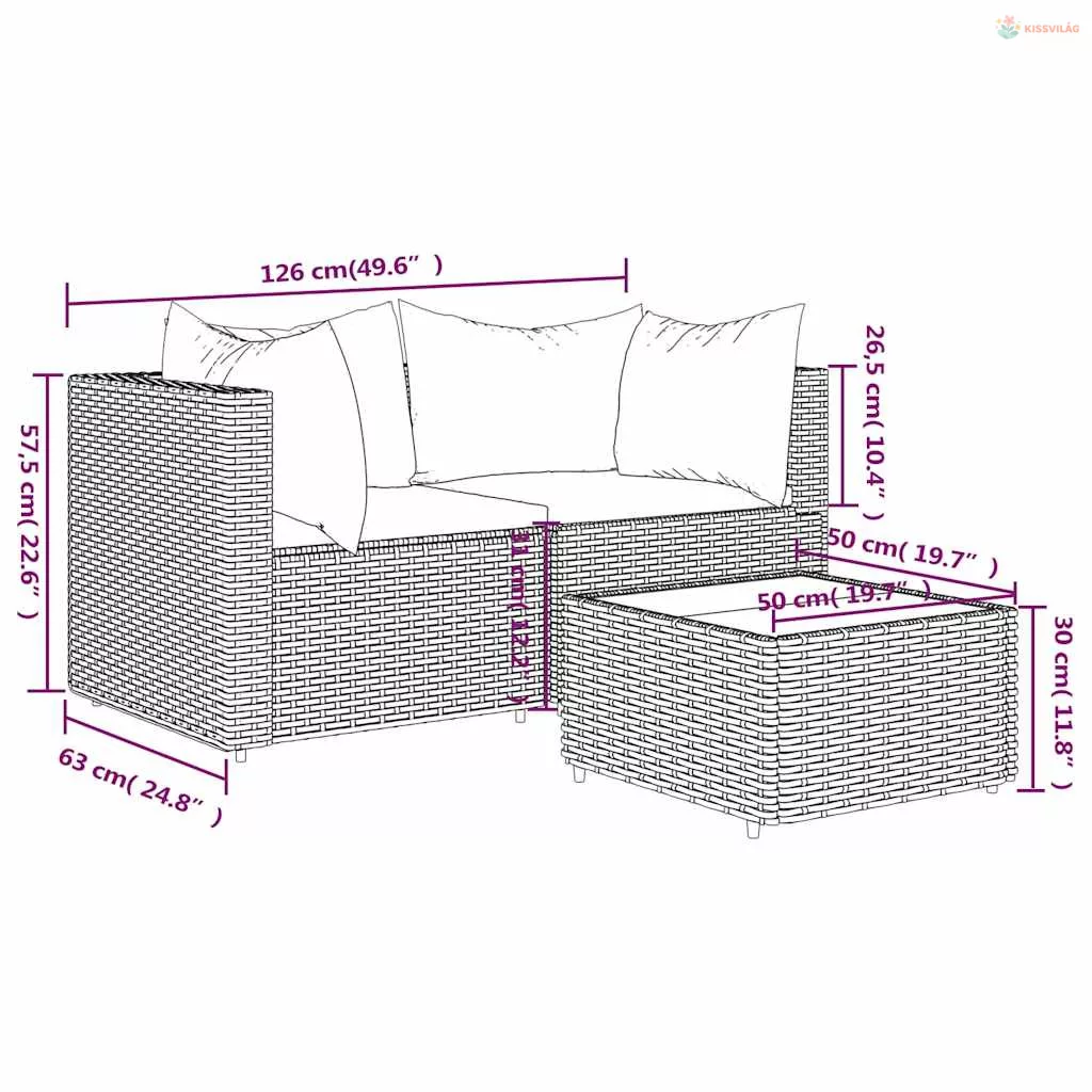 3 részes barna polyrattan kerti ülőgarnitúra párnával