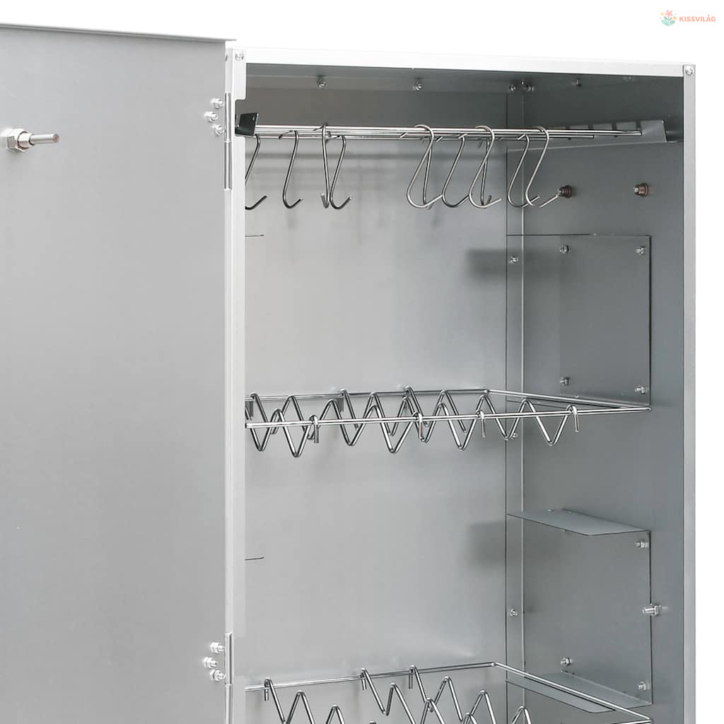 • Bőséges hely a füstöléshez: A kültéri füstölő bőséges helyet biztosít a húsok, halak, kolbászok stb. füstöléséhez. A mellékelt S-alakú kampók és rácsok kényelmesebbé teszik a grillezést.