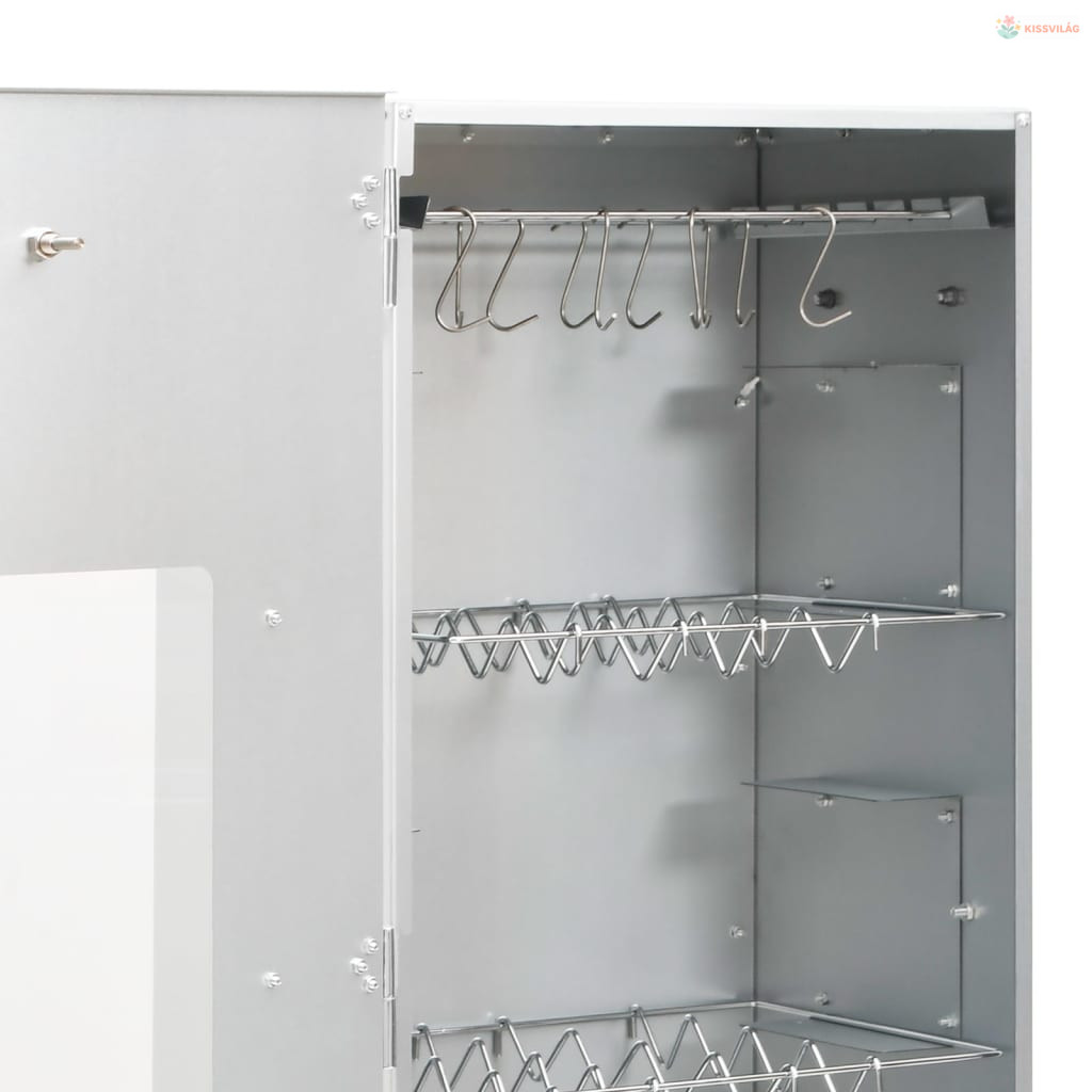 • Bőséges hely a füstöléshez: A kültéri füstölő bőséges helyet biztosít a húsok, halak, kolbászok stb. füstöléséhez. A mellékelt S-alakú kampók és rácsok kényelmesebbé teszik a grillezést.