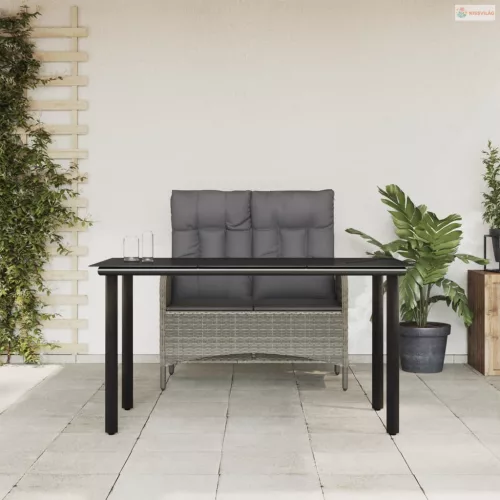 2 részes szürke polyrattan kerti étkezőgarnitúra párnákkal