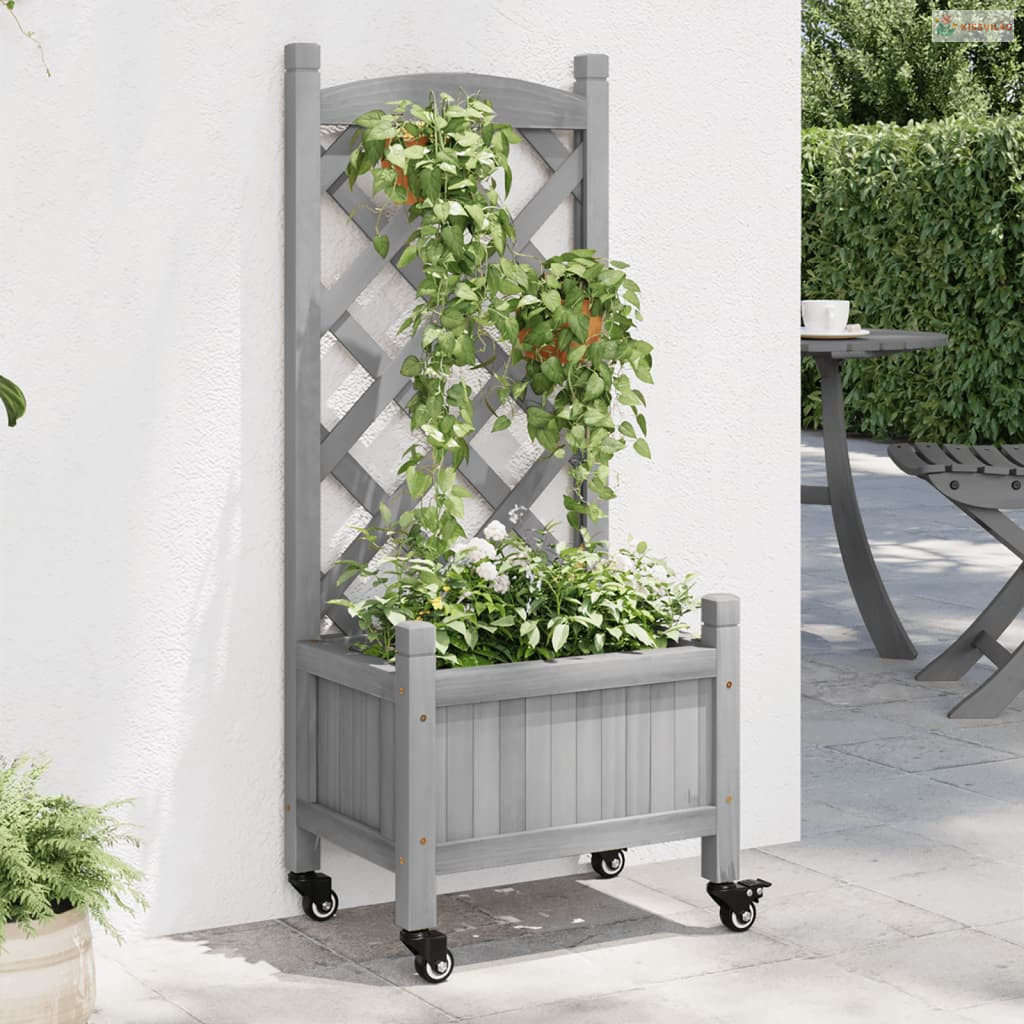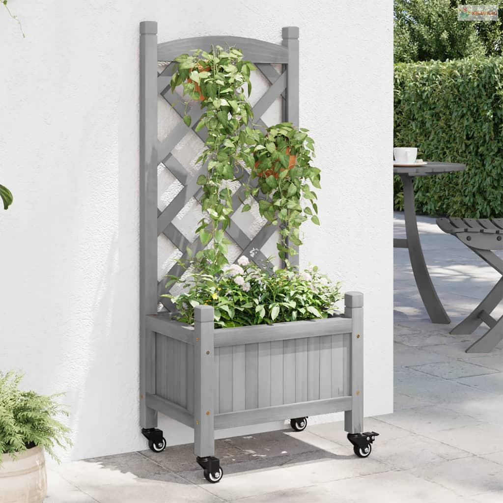 Ez a rácsos és kerekes fa ültetőláda kiváló választás a kertben, az udvaron és a teraszon a növények futtatásához.