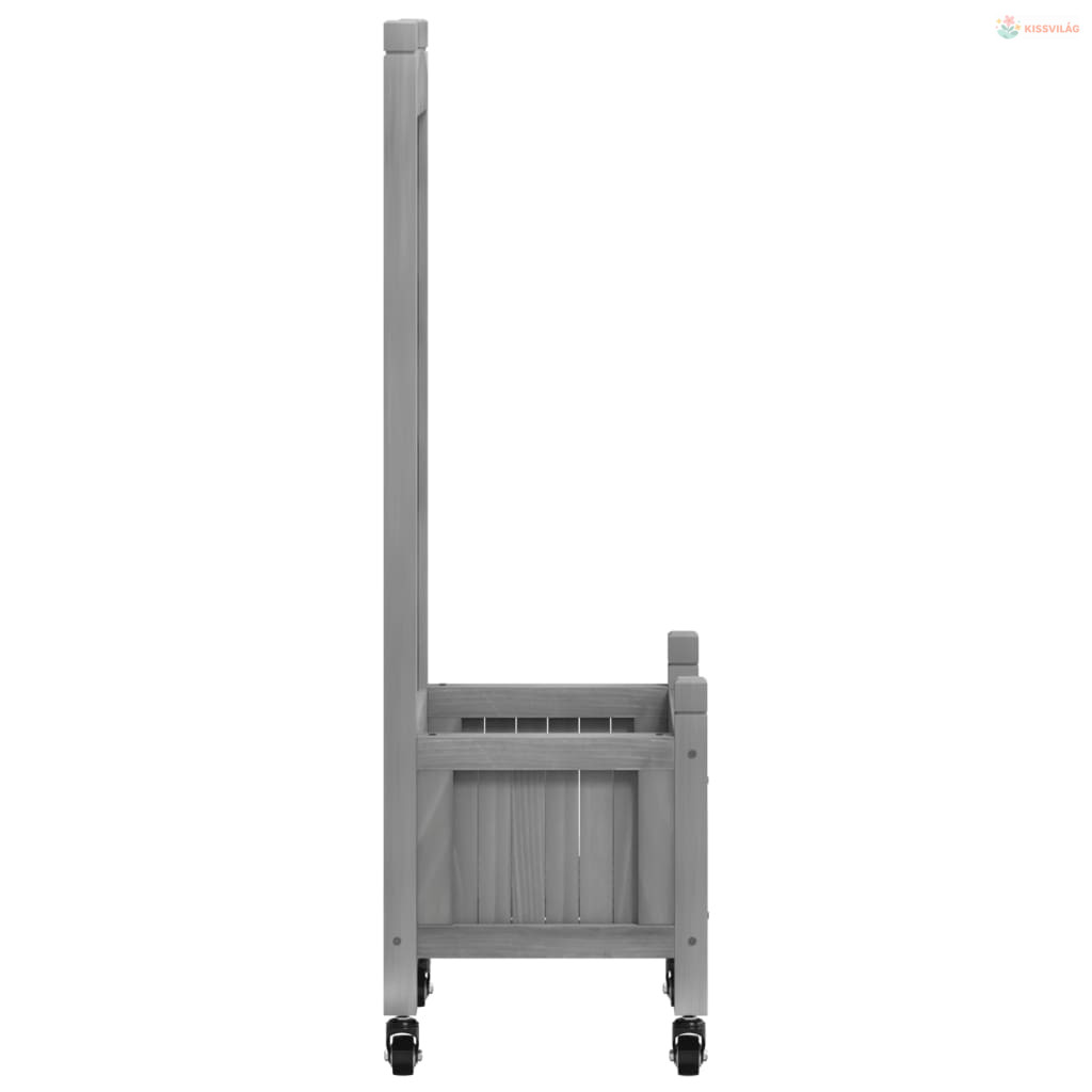Szürke tömör fenyőfa rácsos virágláda kerekekkel