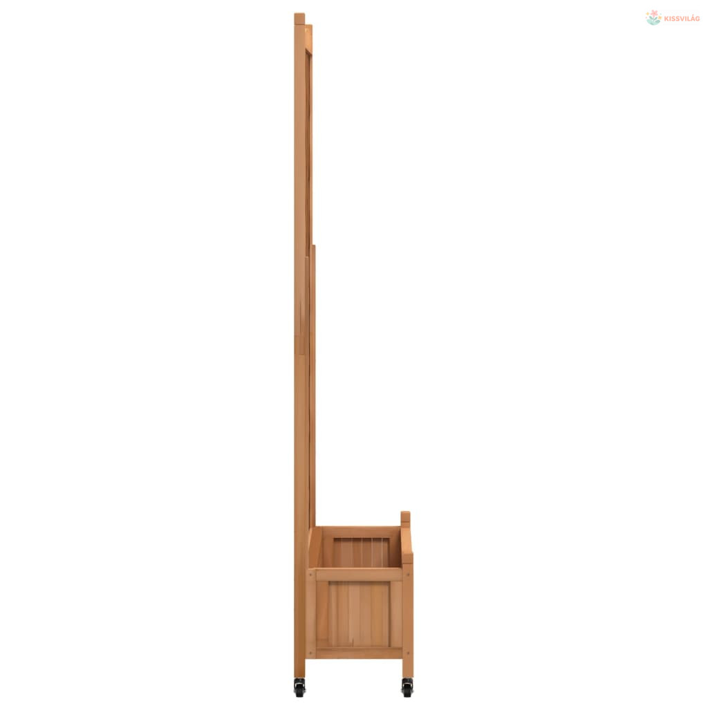 Barna tömör fenyőfa rácsos virágláda kerekekkel