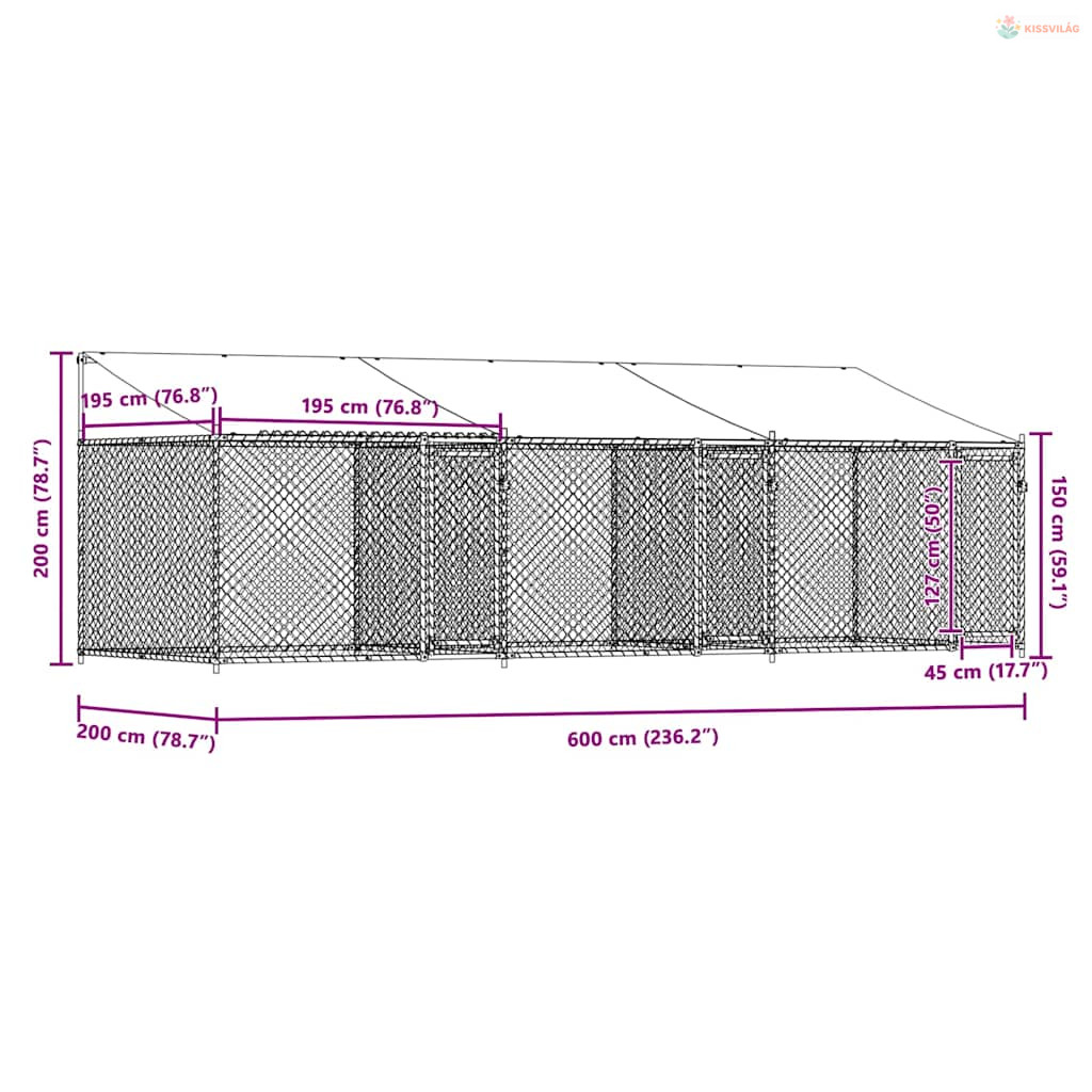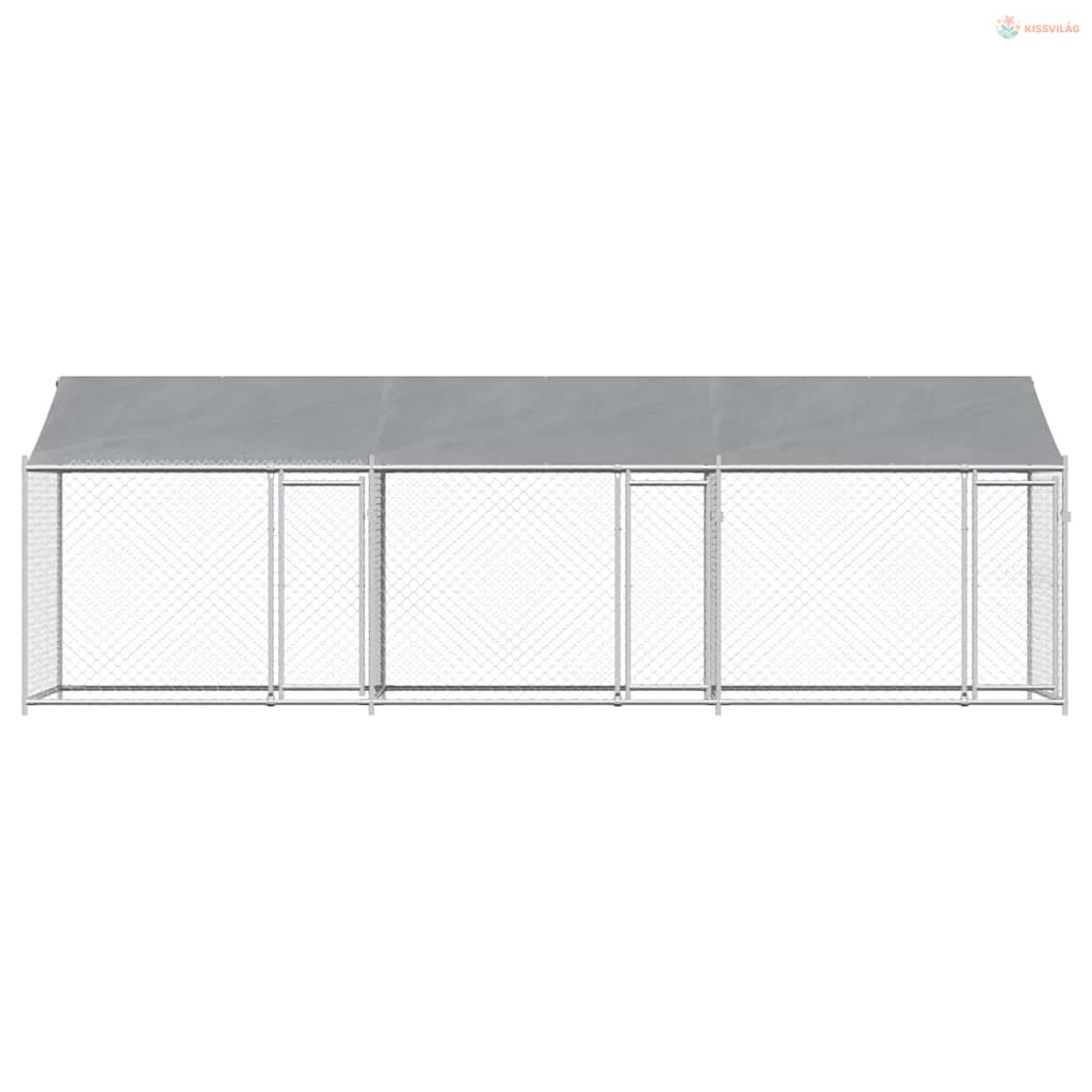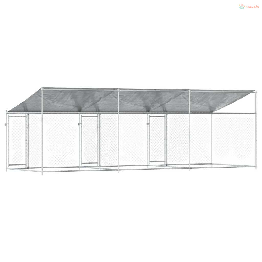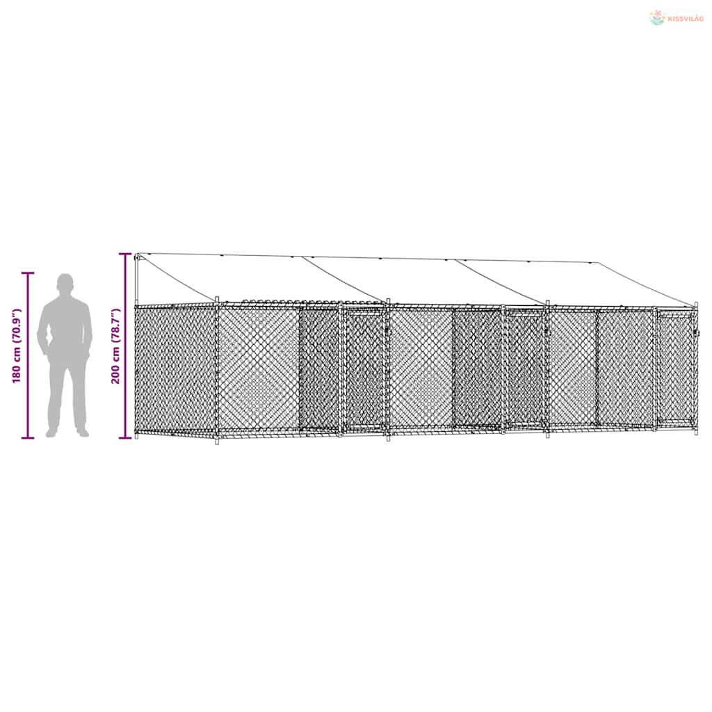 Szürke horganyzott acél kutyaketrec tetővel és ajtókkal 6x2x2 m