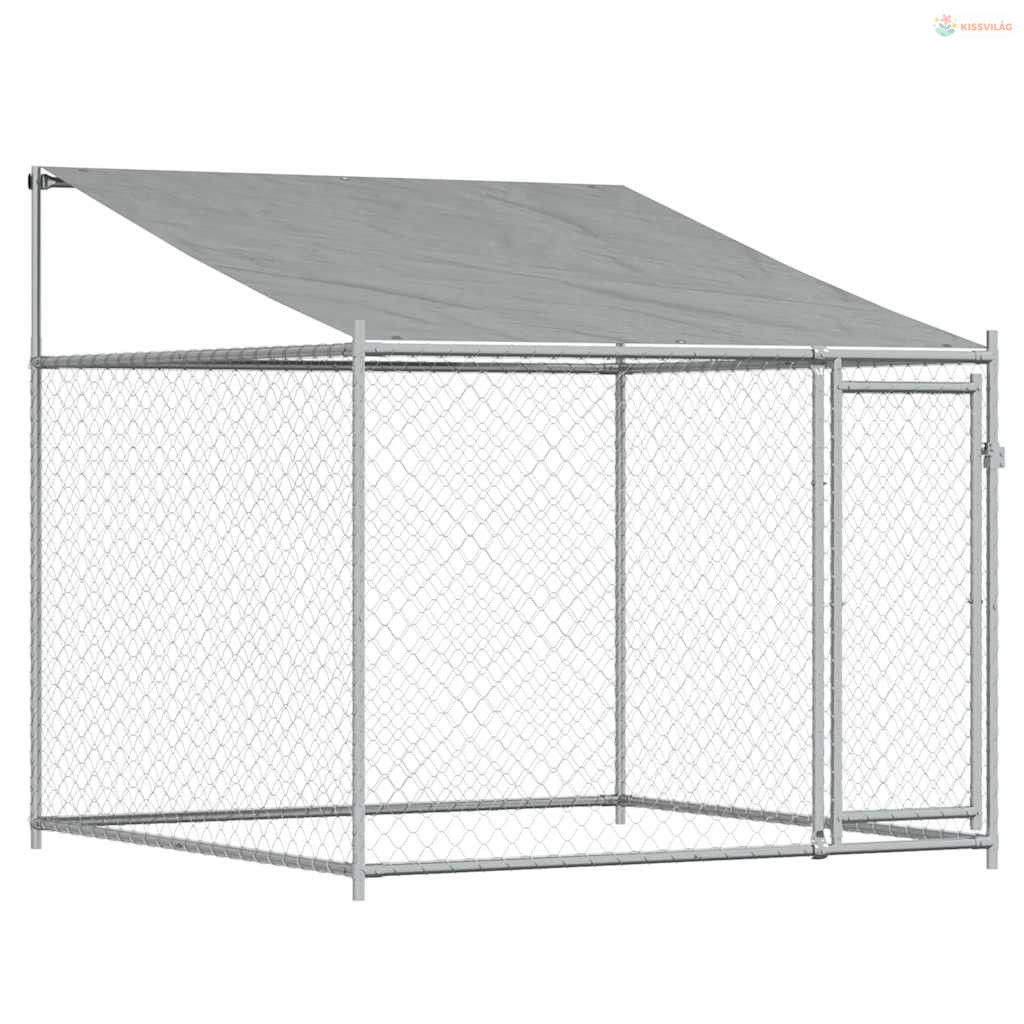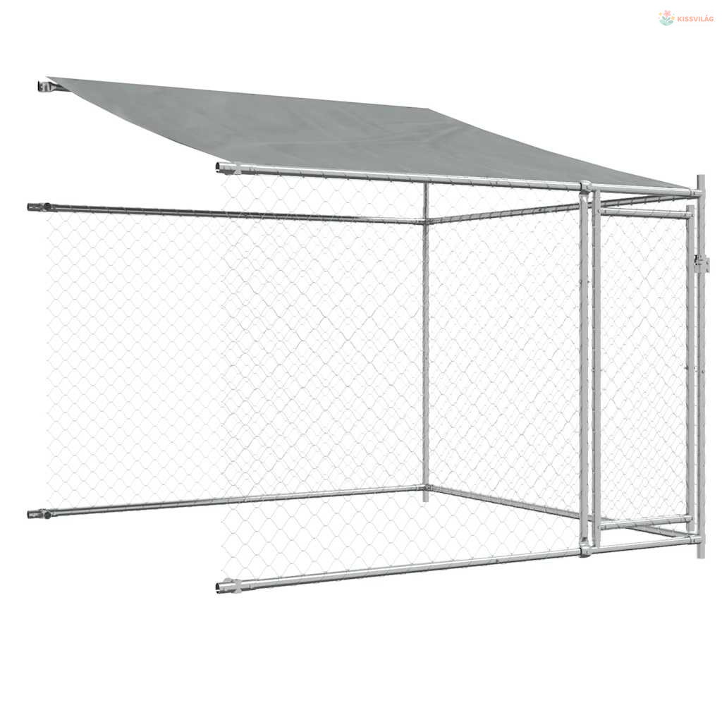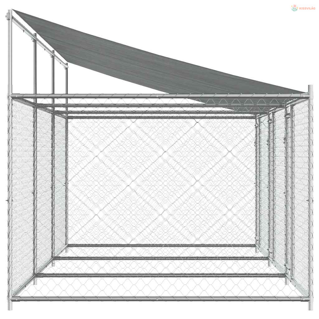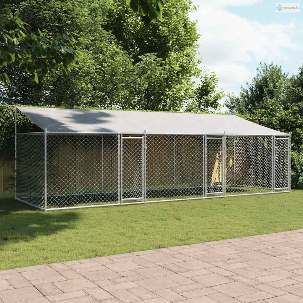 Szürke horganyzott acél kutyaketrec tetővel és ajtókkal 6x2x2 m